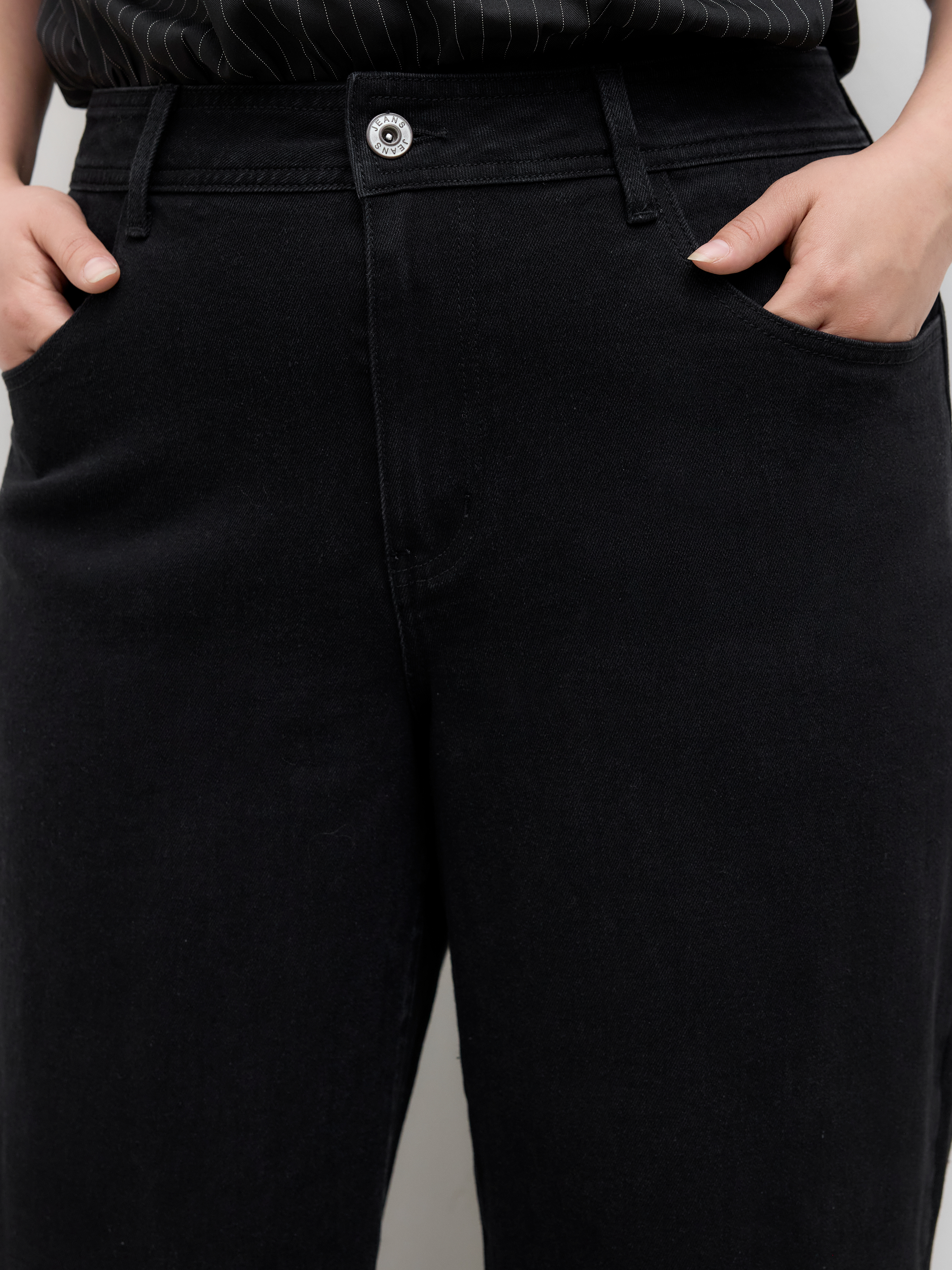 Jeans dritti a vita media con zip in denim super elasticizzato Curve & Plus