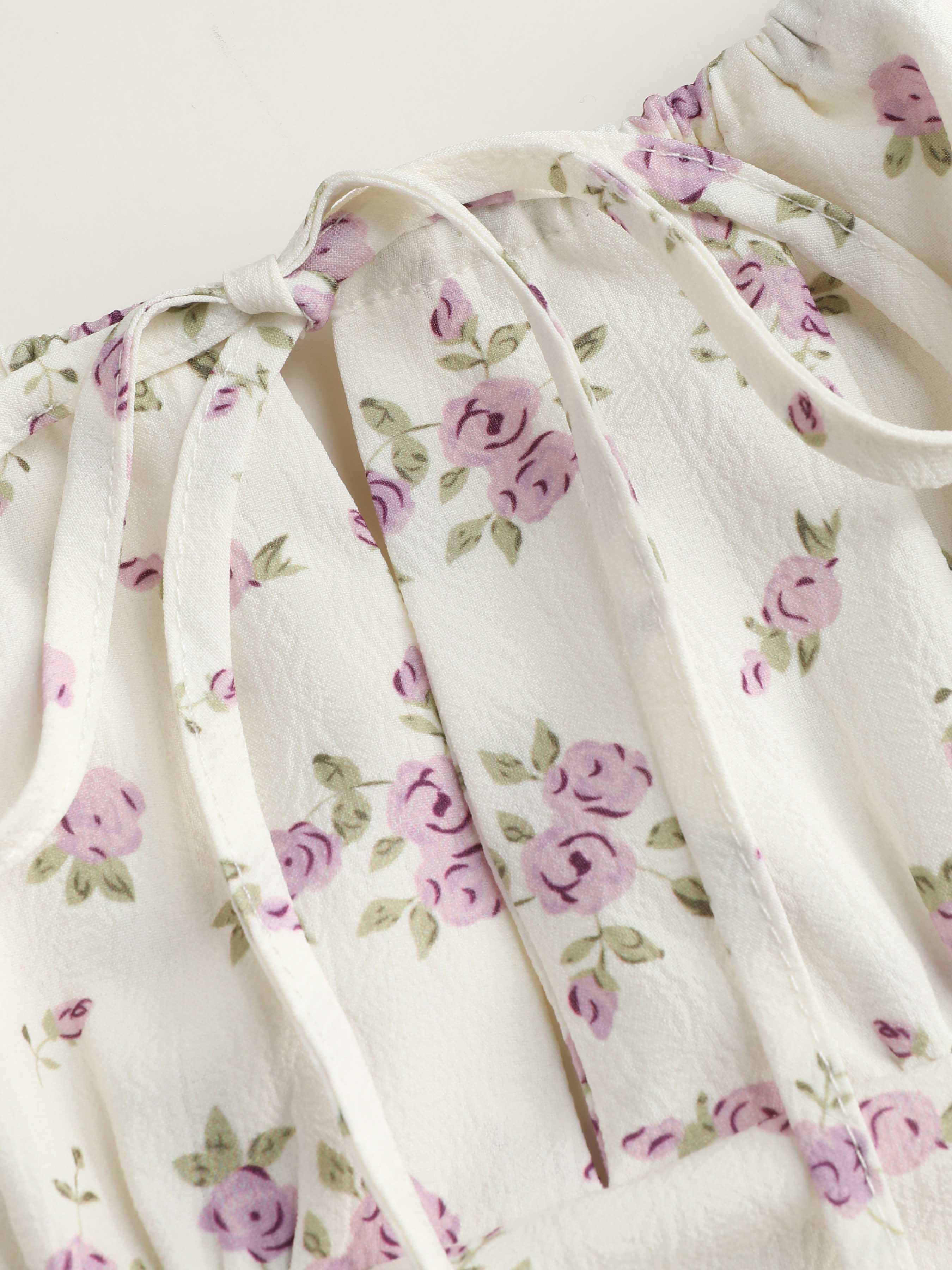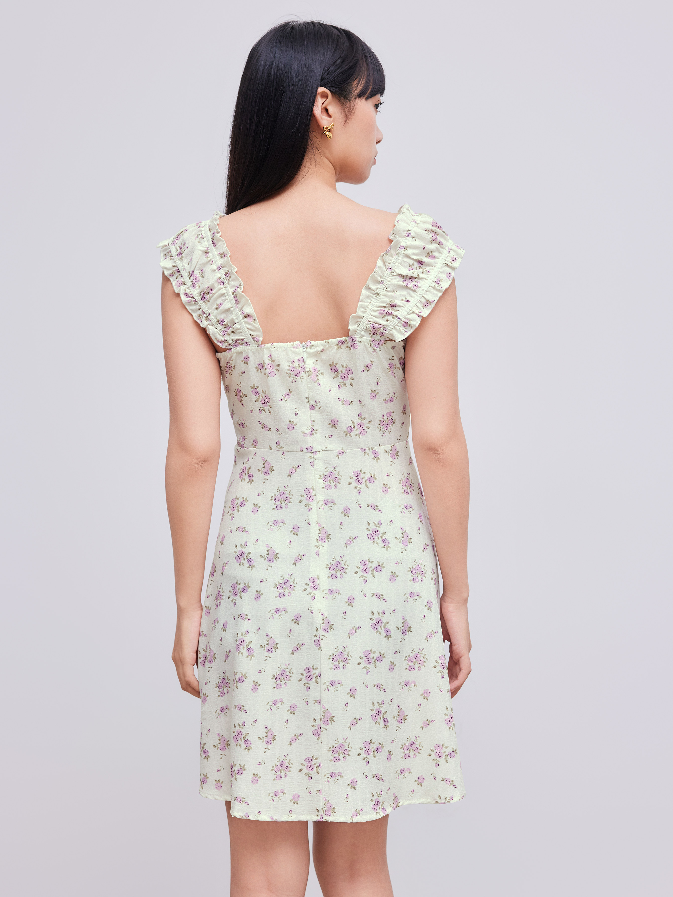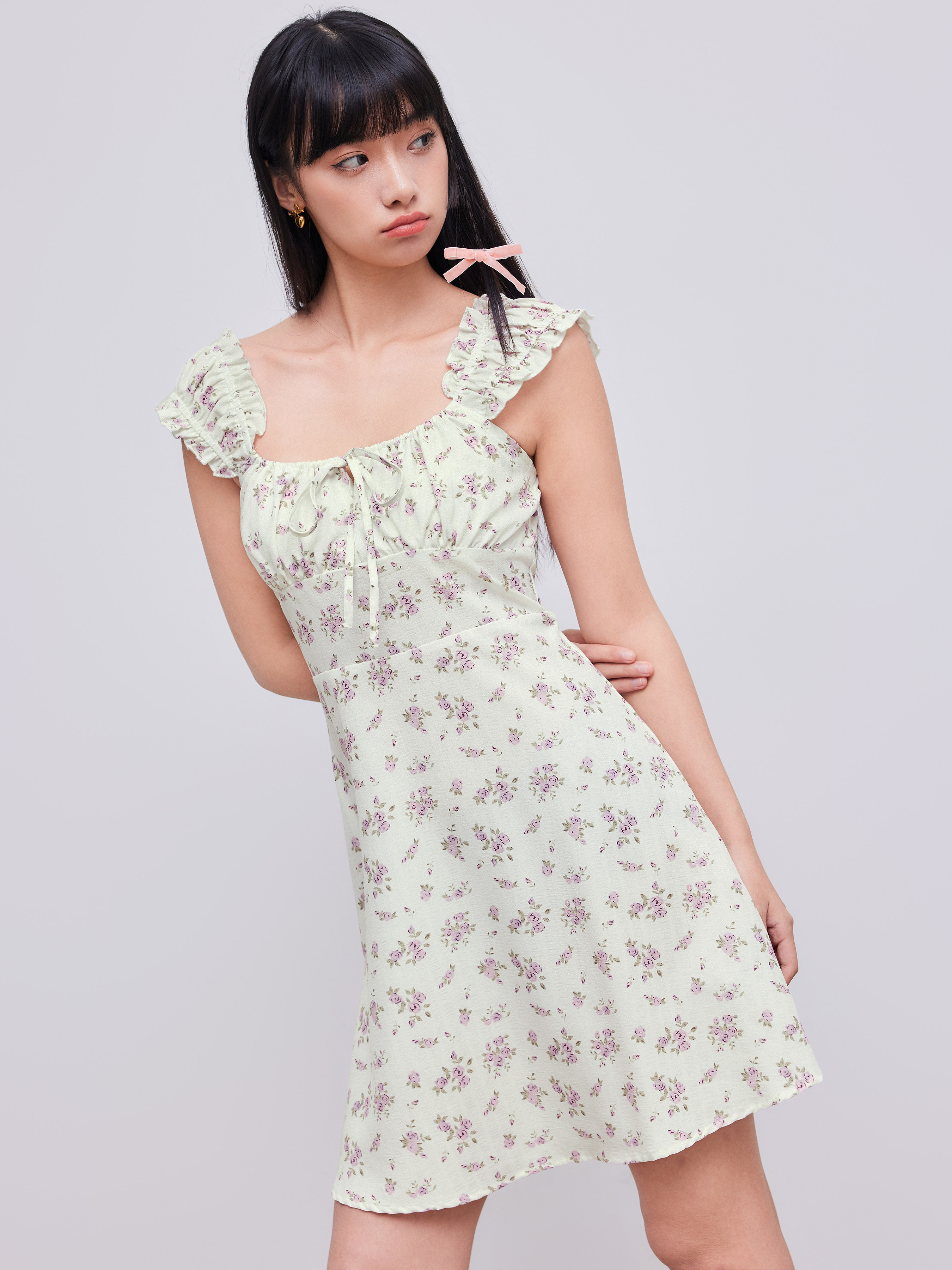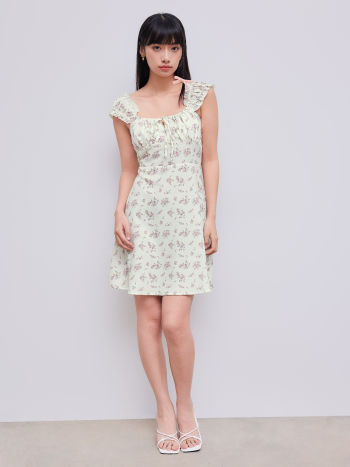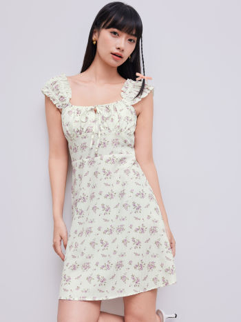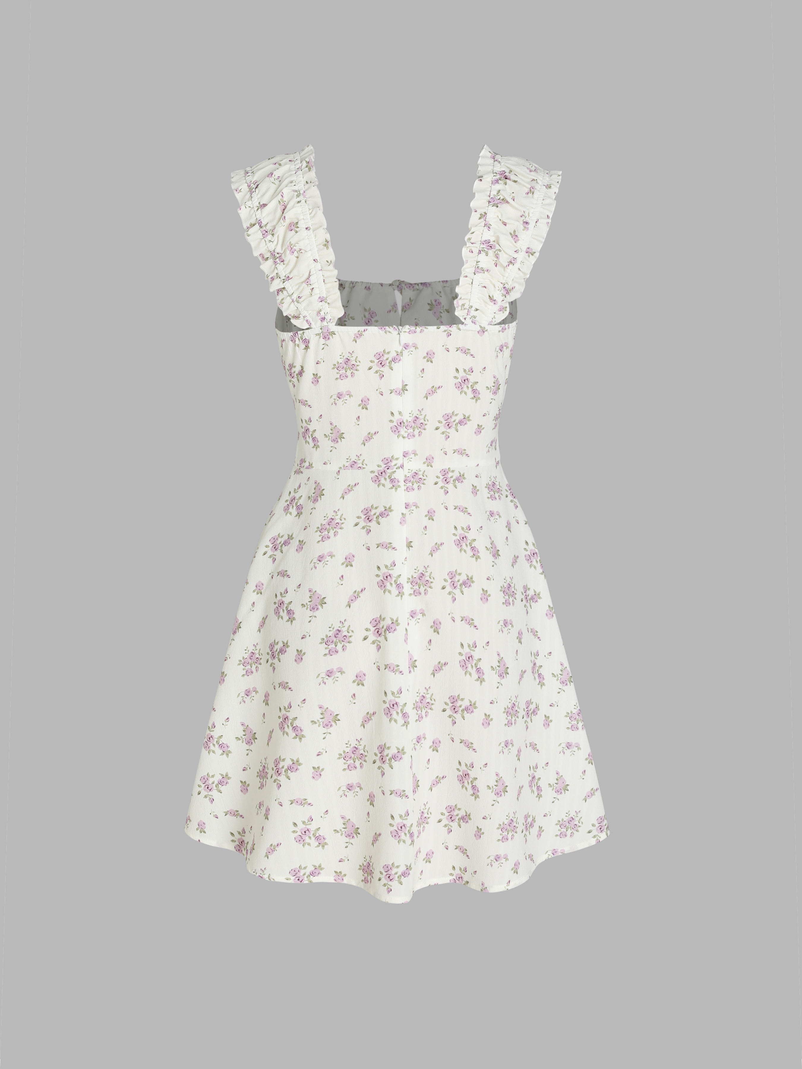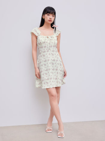 Mini abito con coulisse e scollo quadrato in stile ditsy floreale