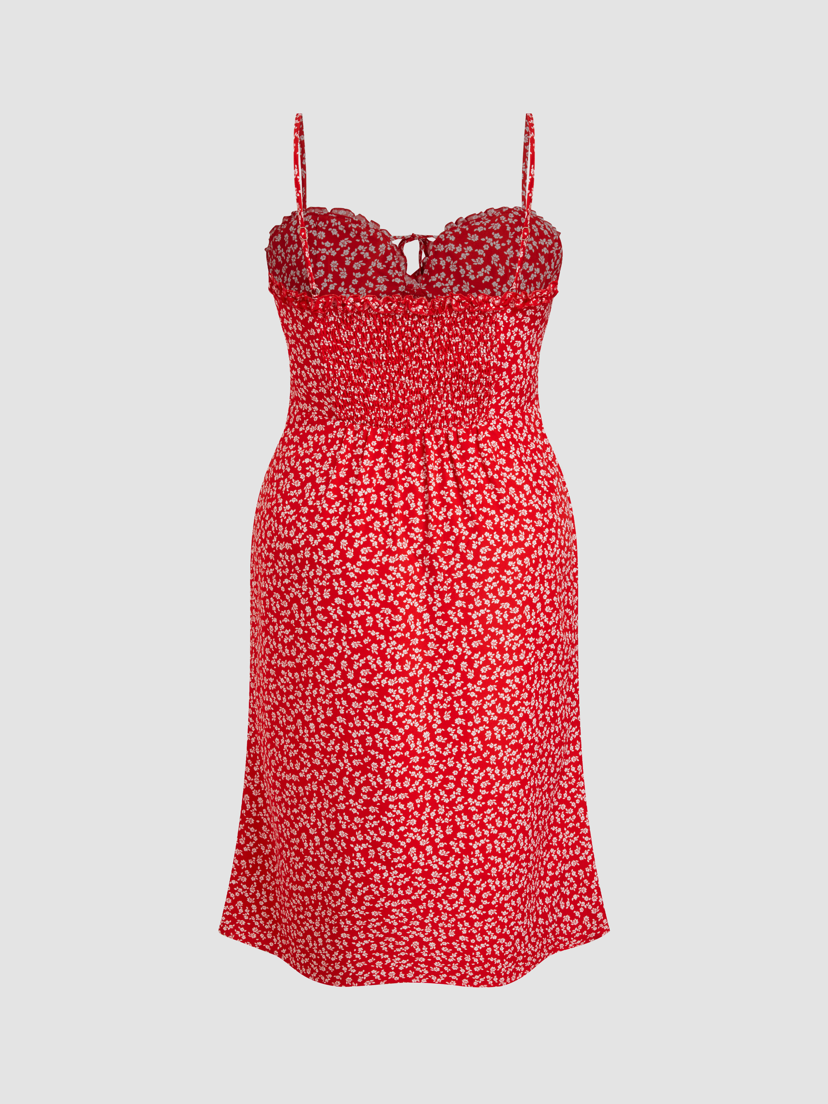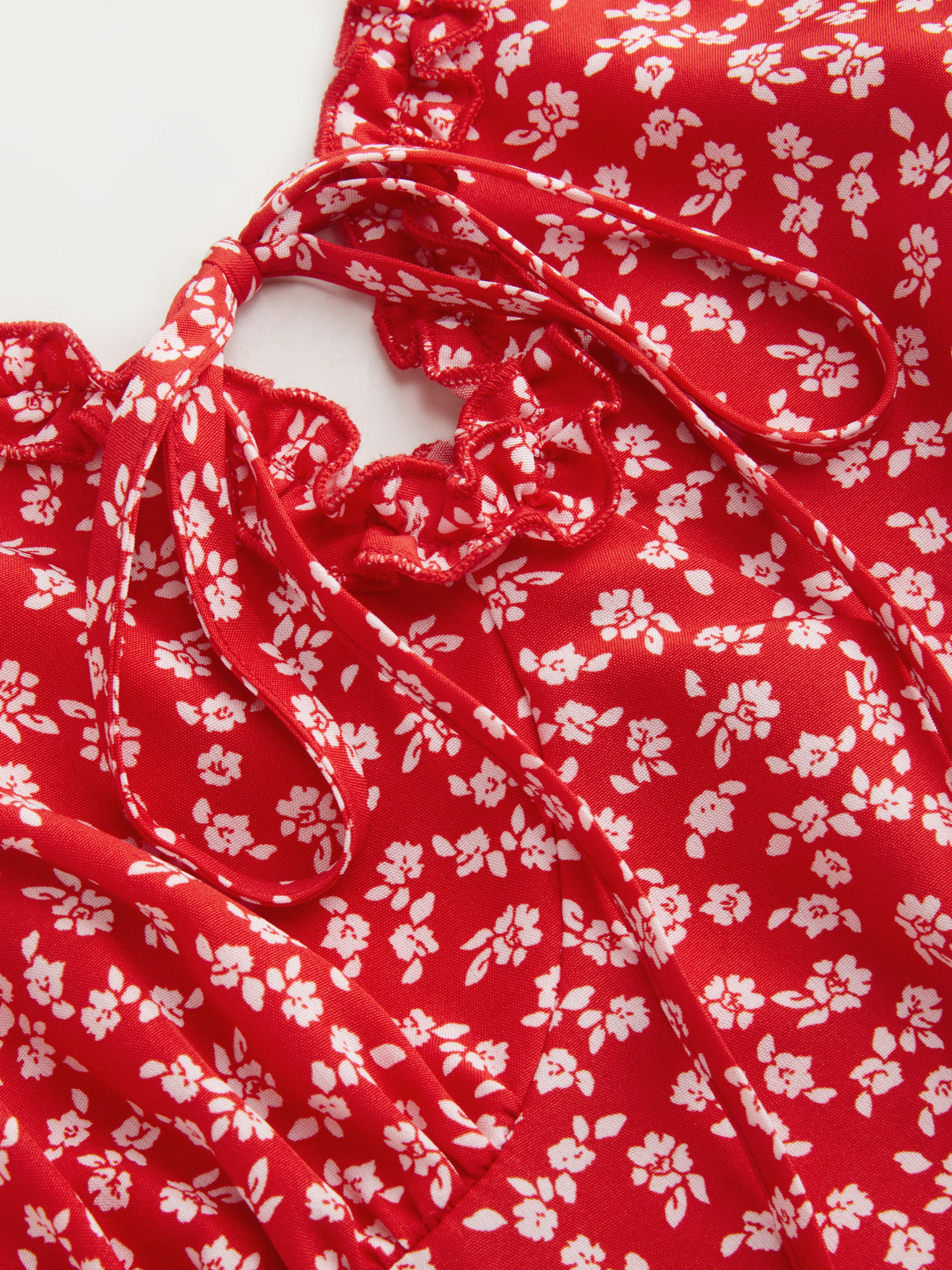 Abito Midi con Orlo a Lattuga Annodato con Stampa Floreale Ditsy Sweetheart Taglie Comode e Curve