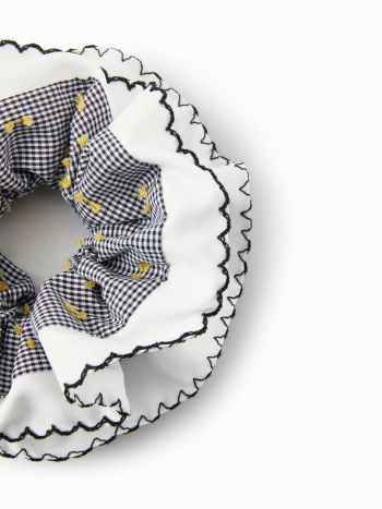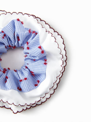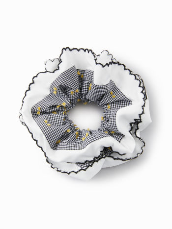 2 PEZZI SCRUNCHIE PER CAPELLI A DOPPIO STRATO A QUADRI E RICAMATI