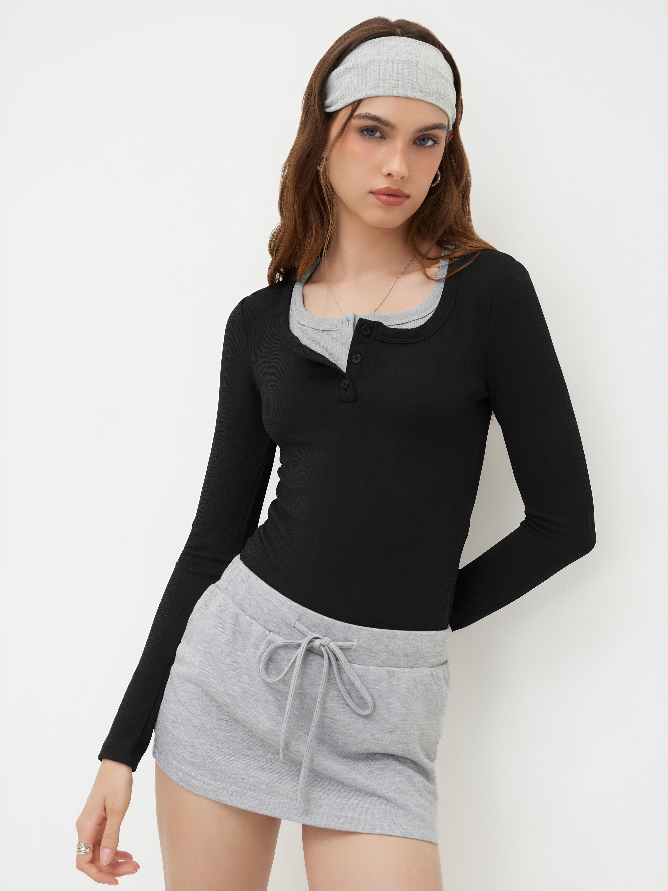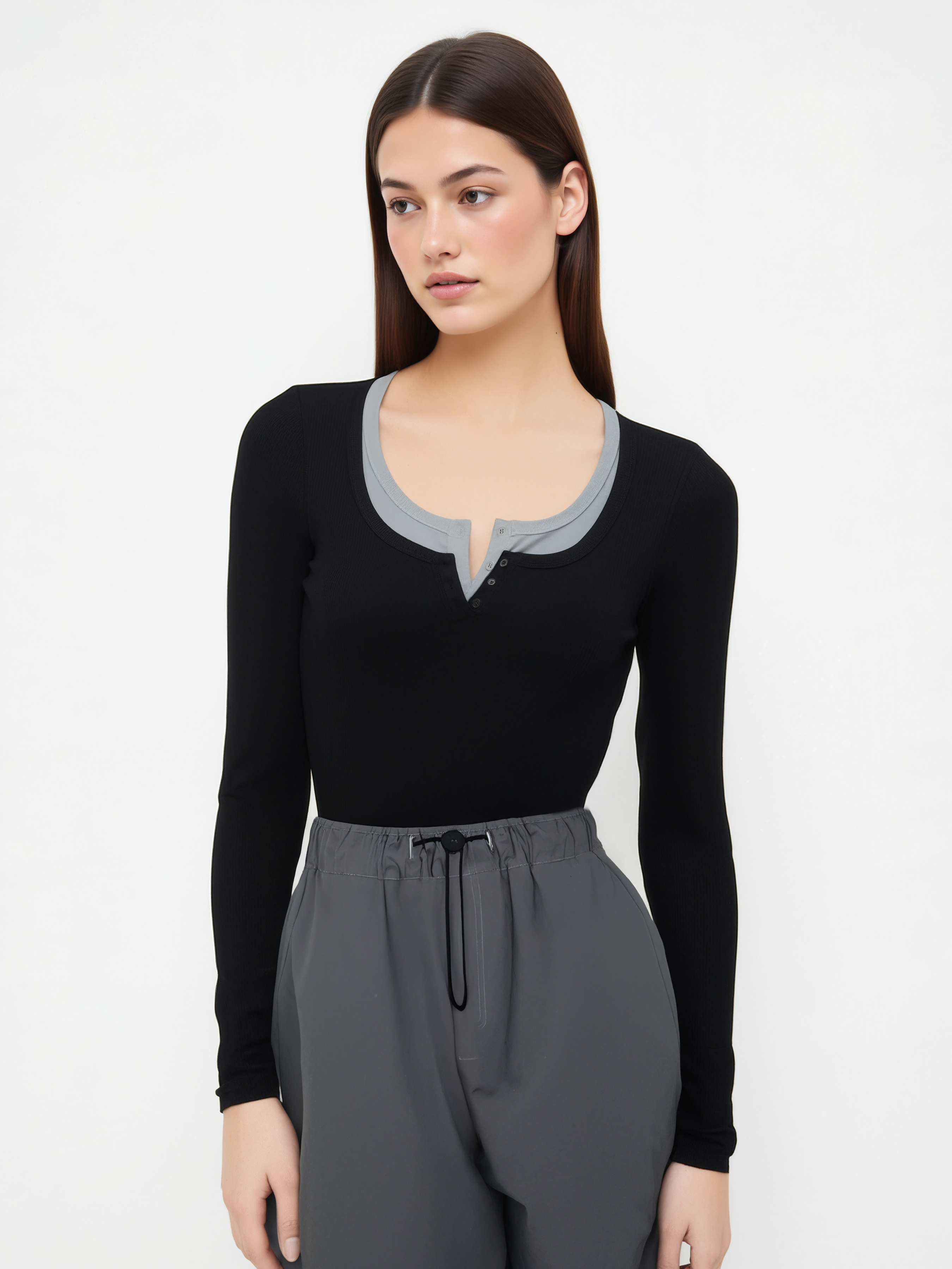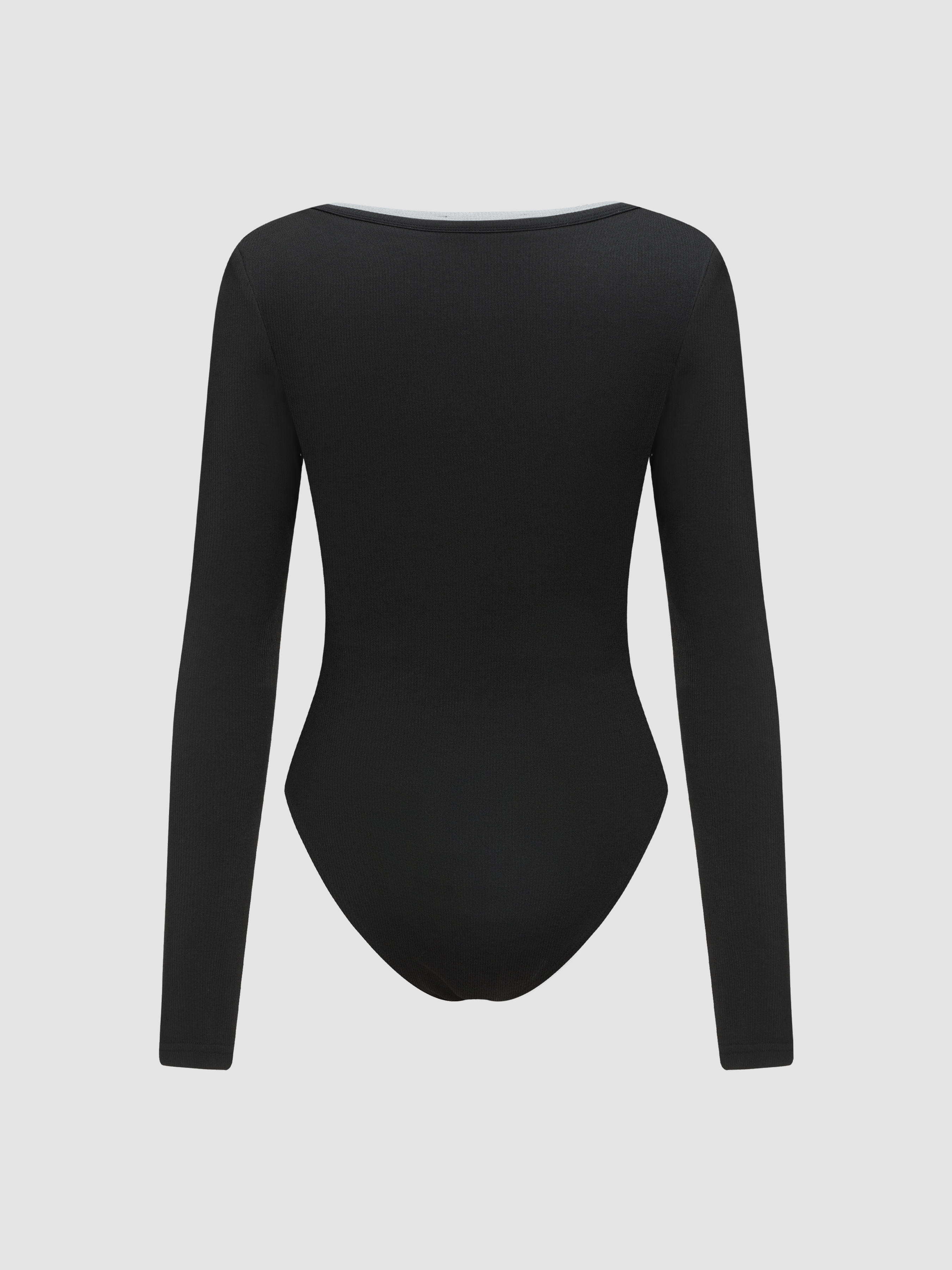 Body lavorato a maglia con scollo quadrato e bordatura a contrasto