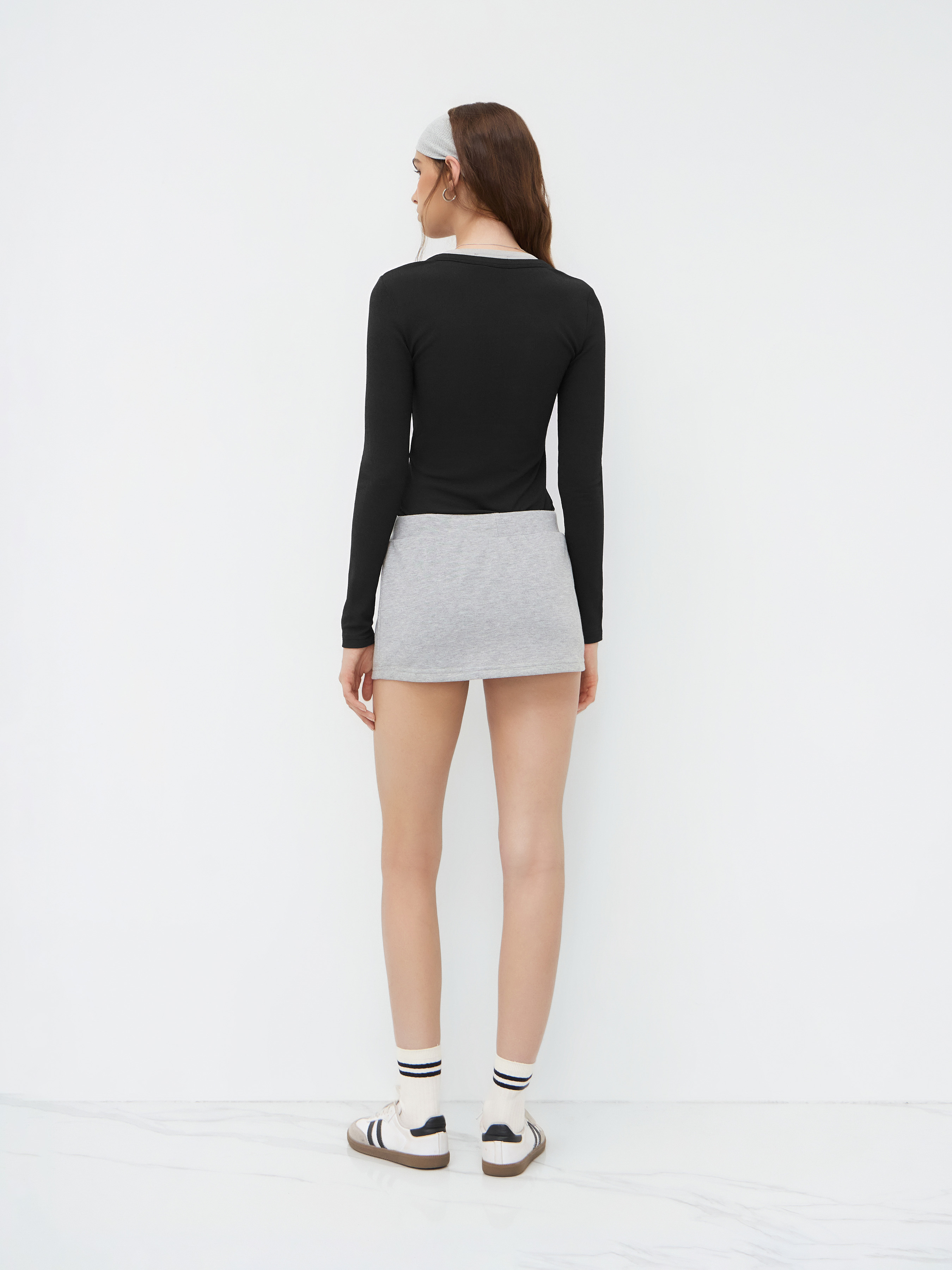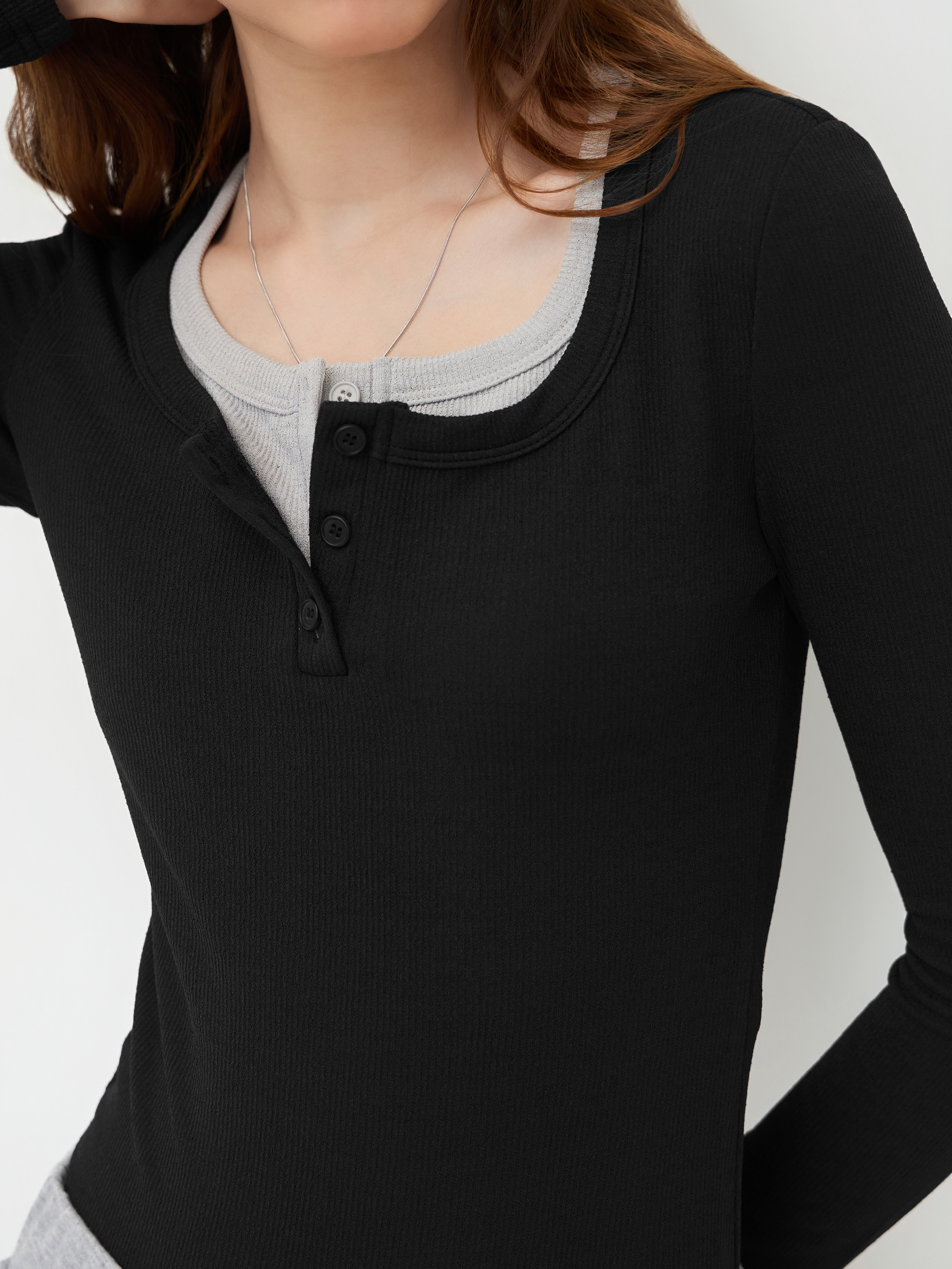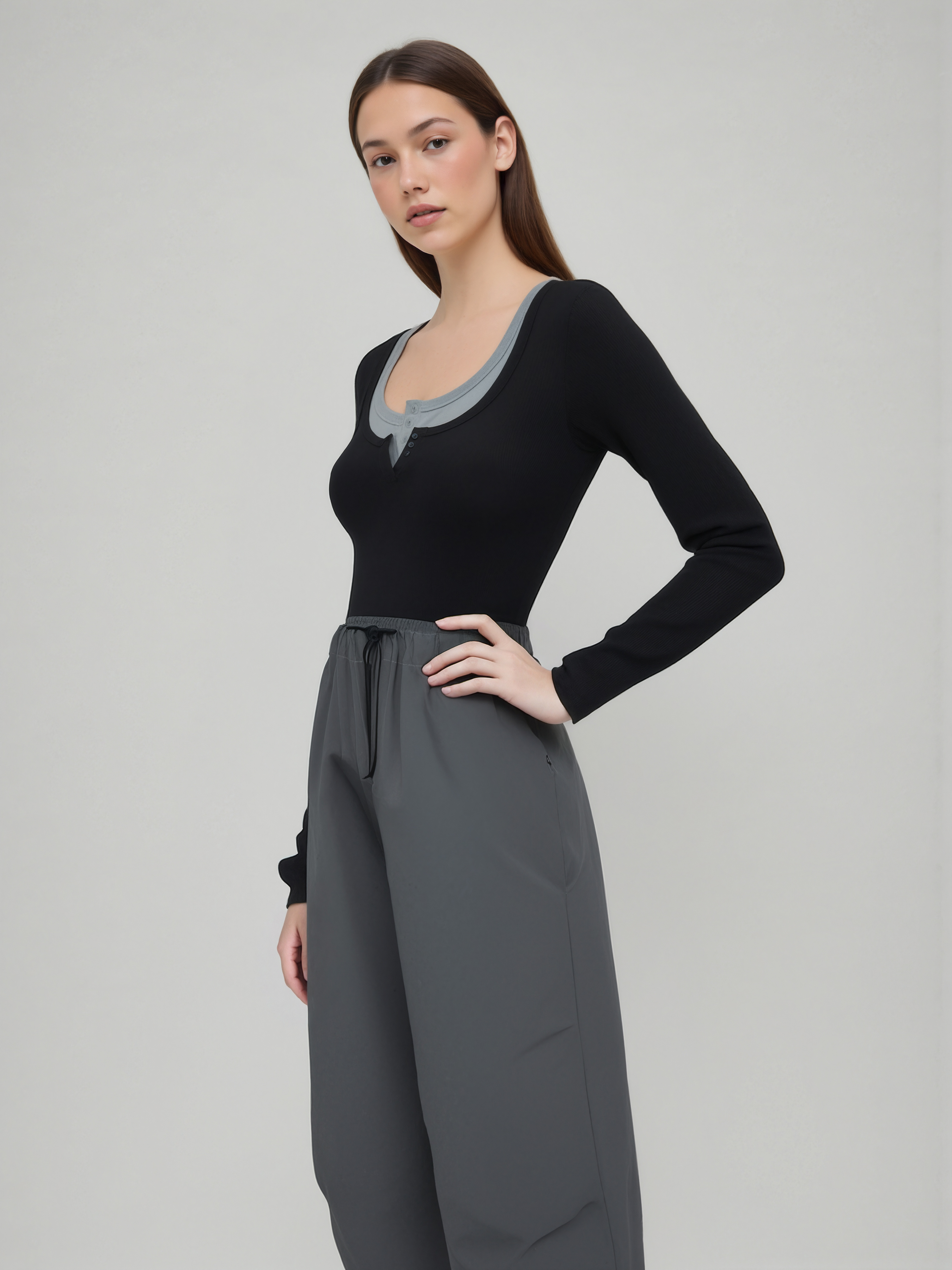 Body lavorato a maglia con scollo quadrato e bordatura a contrasto