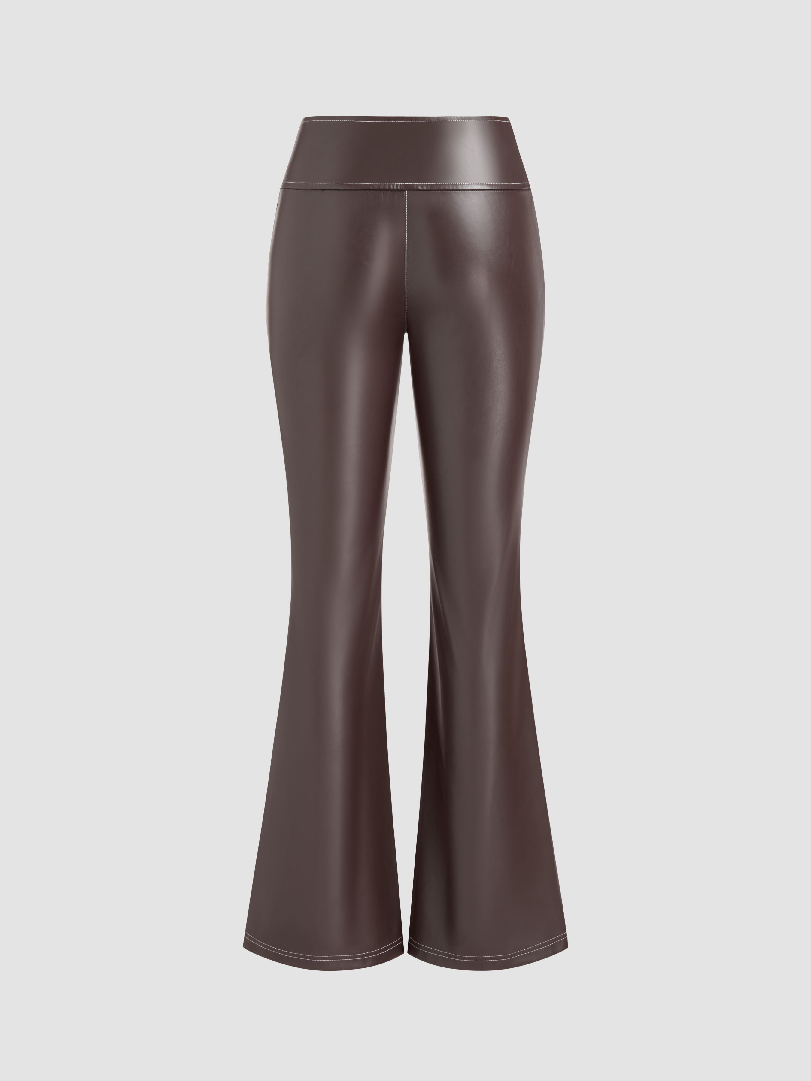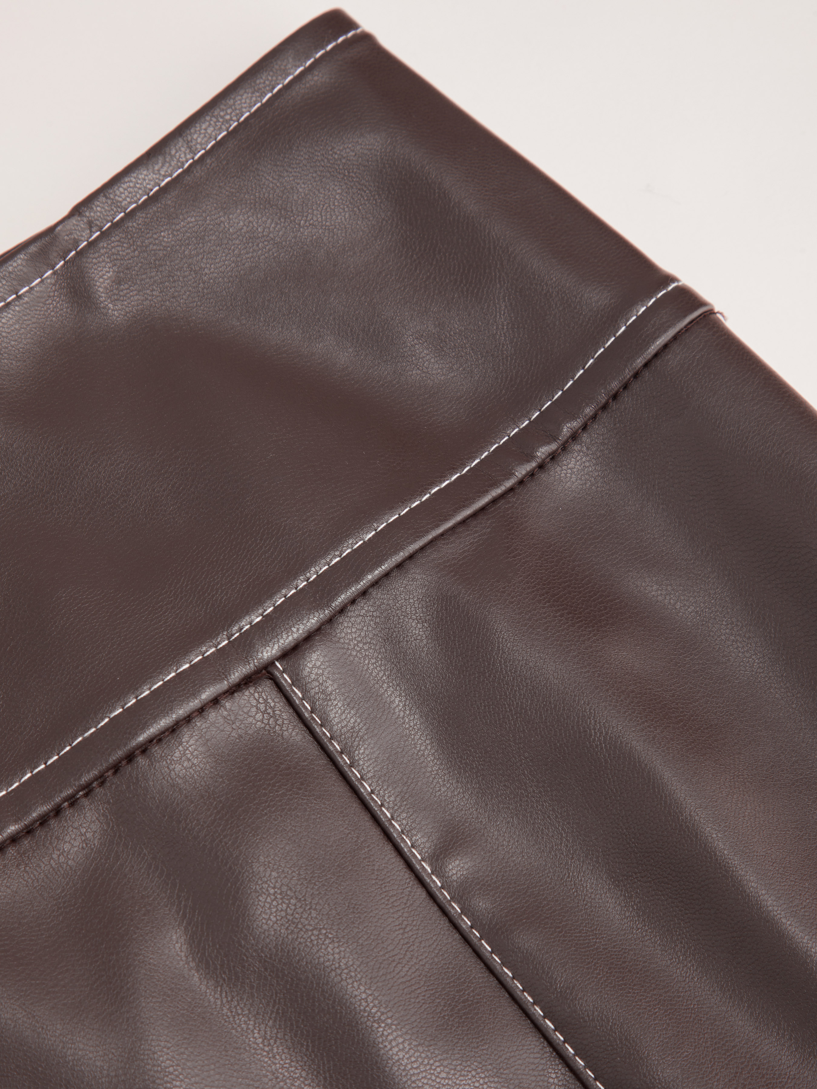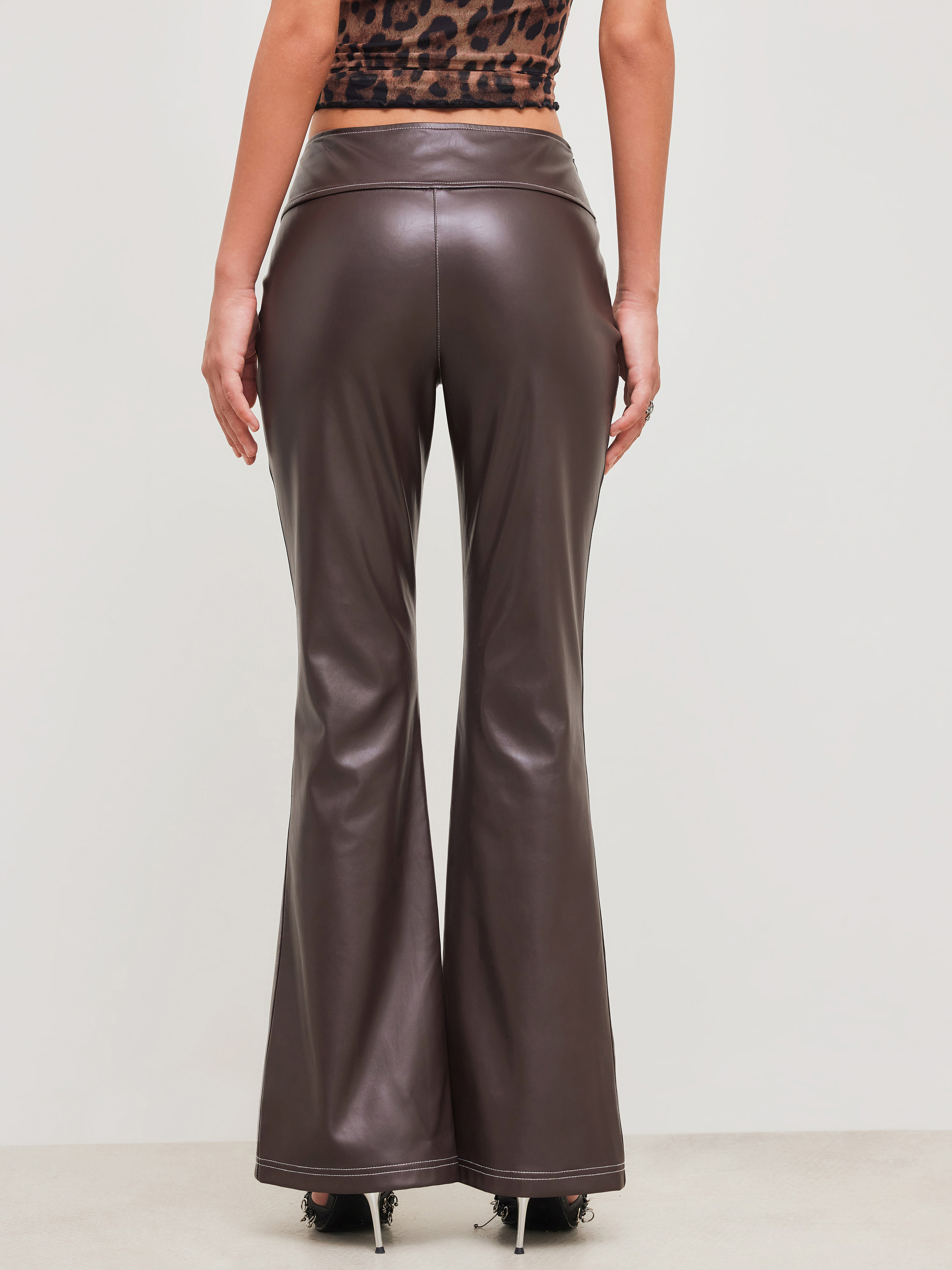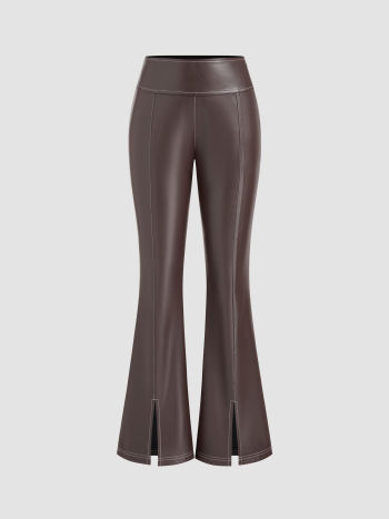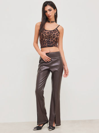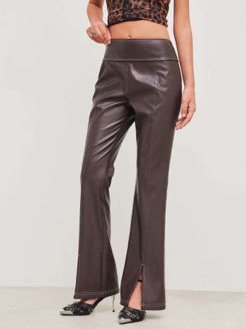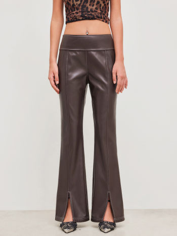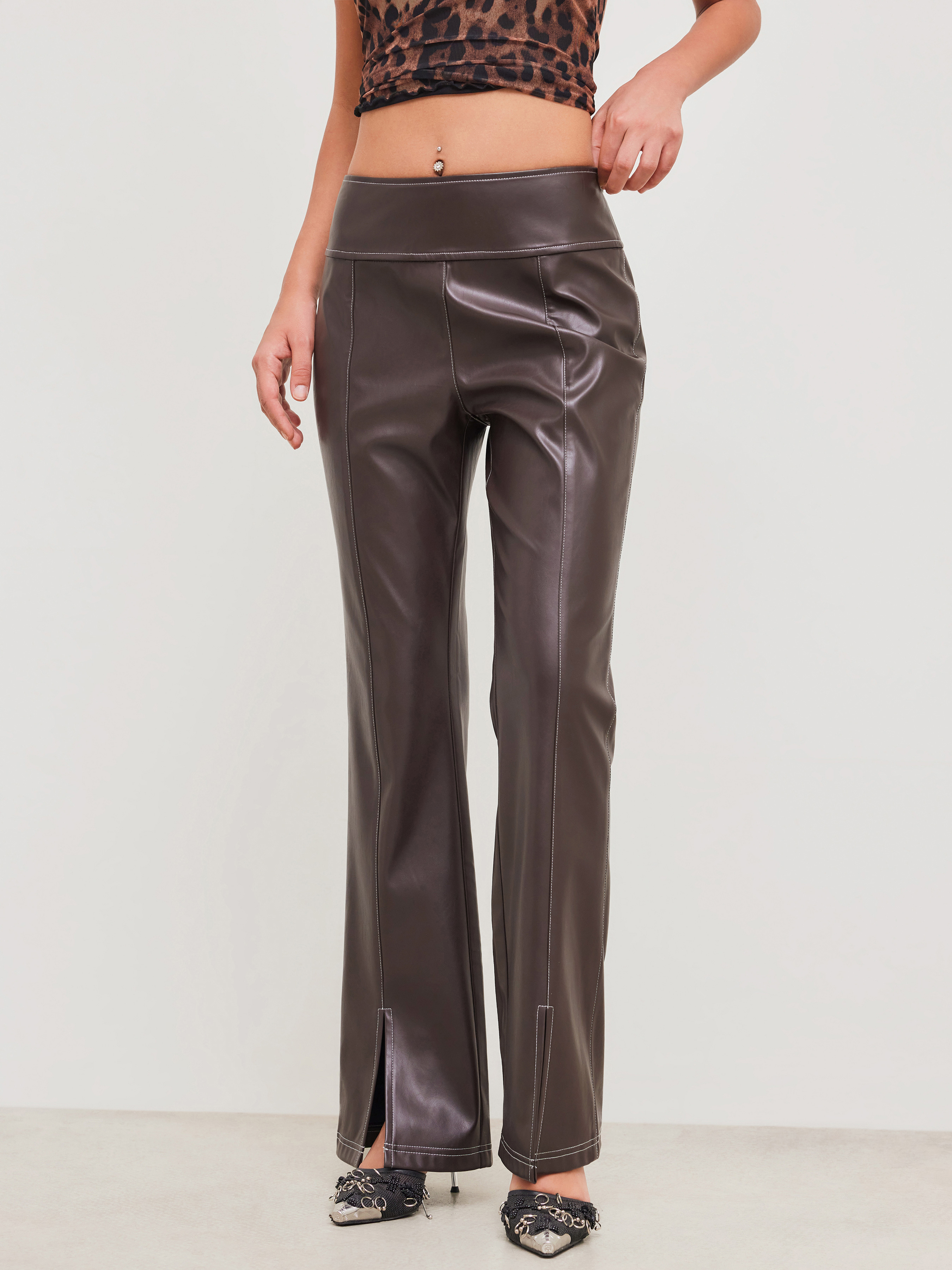 Pantaloni svasati in ecopelle a vita bassa con spacchetti solidi
