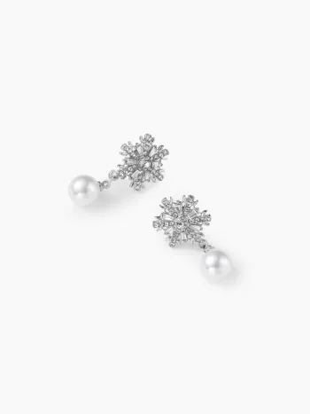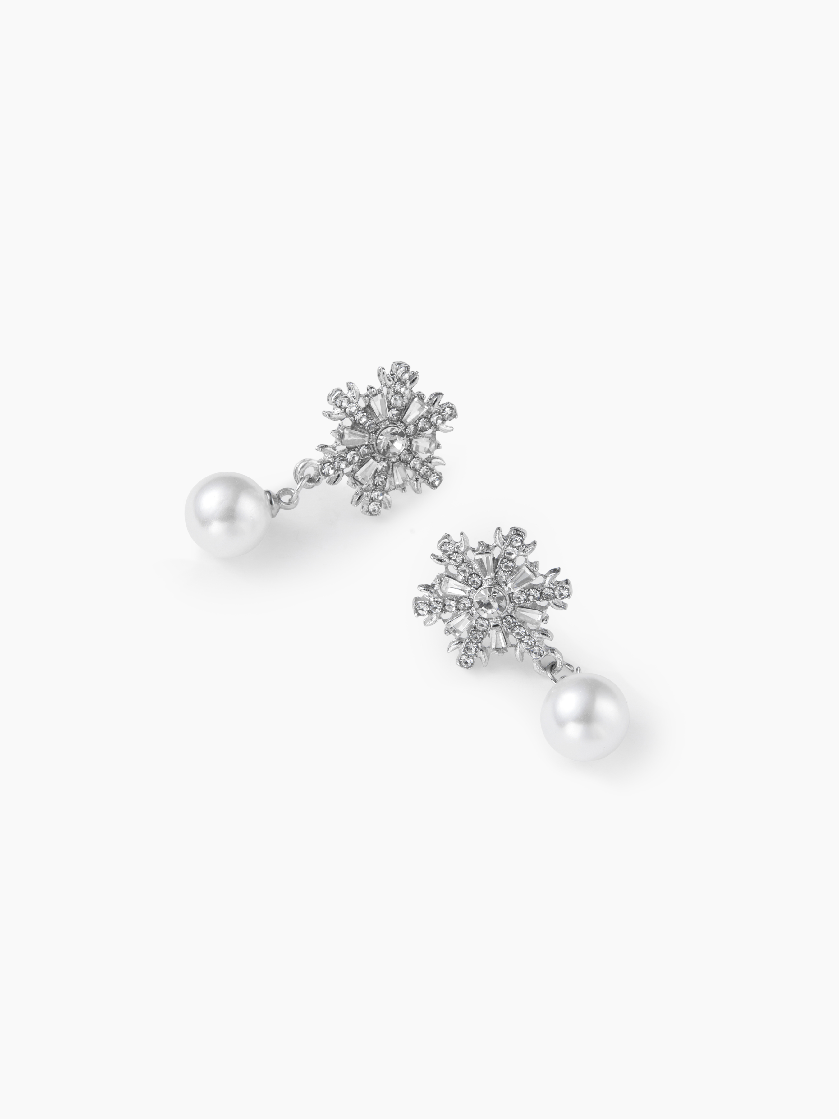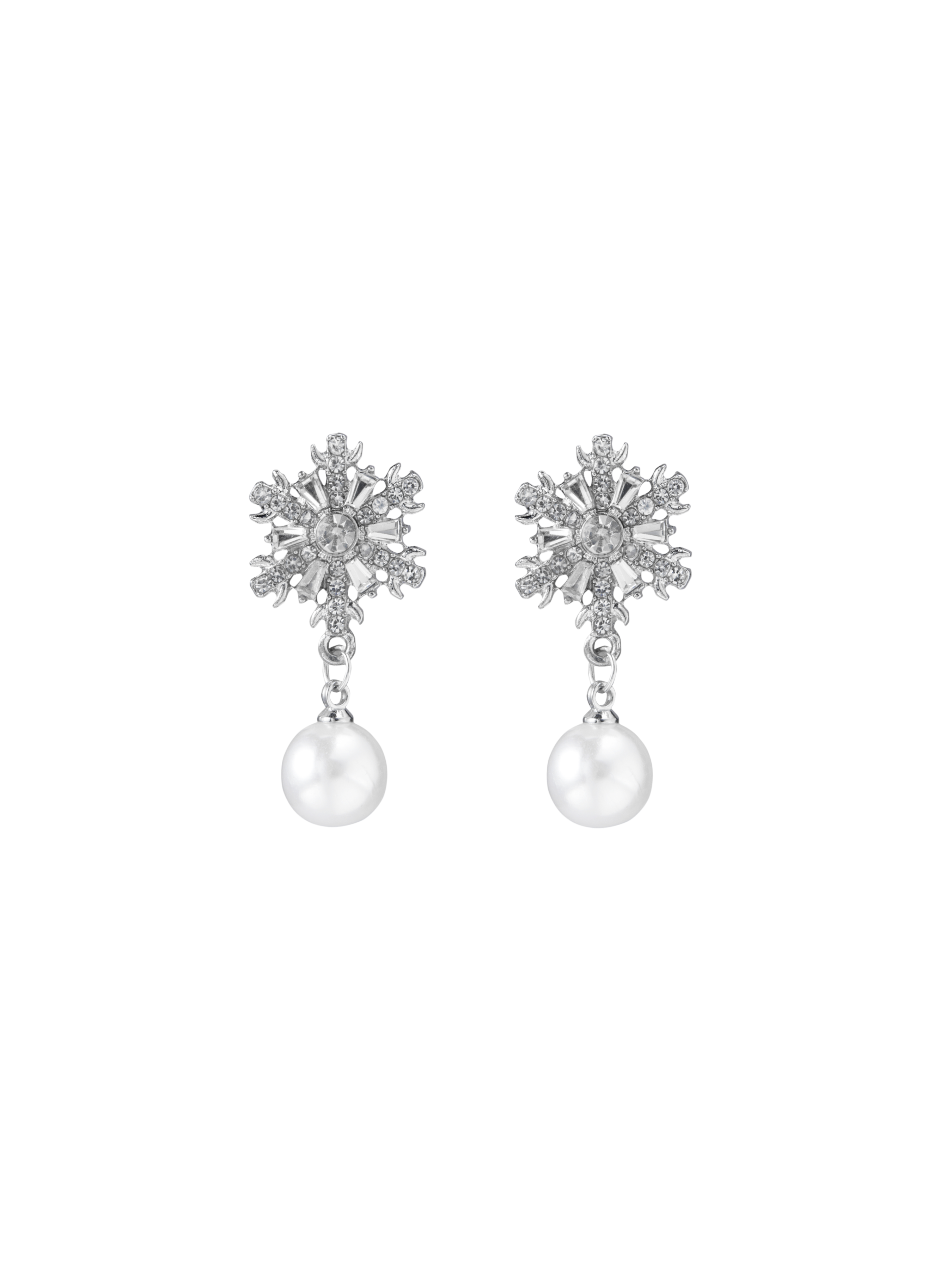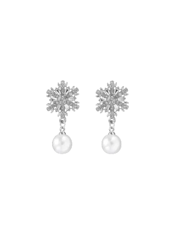 ORECCHINI A GOCCIA CON FIOCCO DI NEVE DECORATO CON FINTE PERLE E STRASS