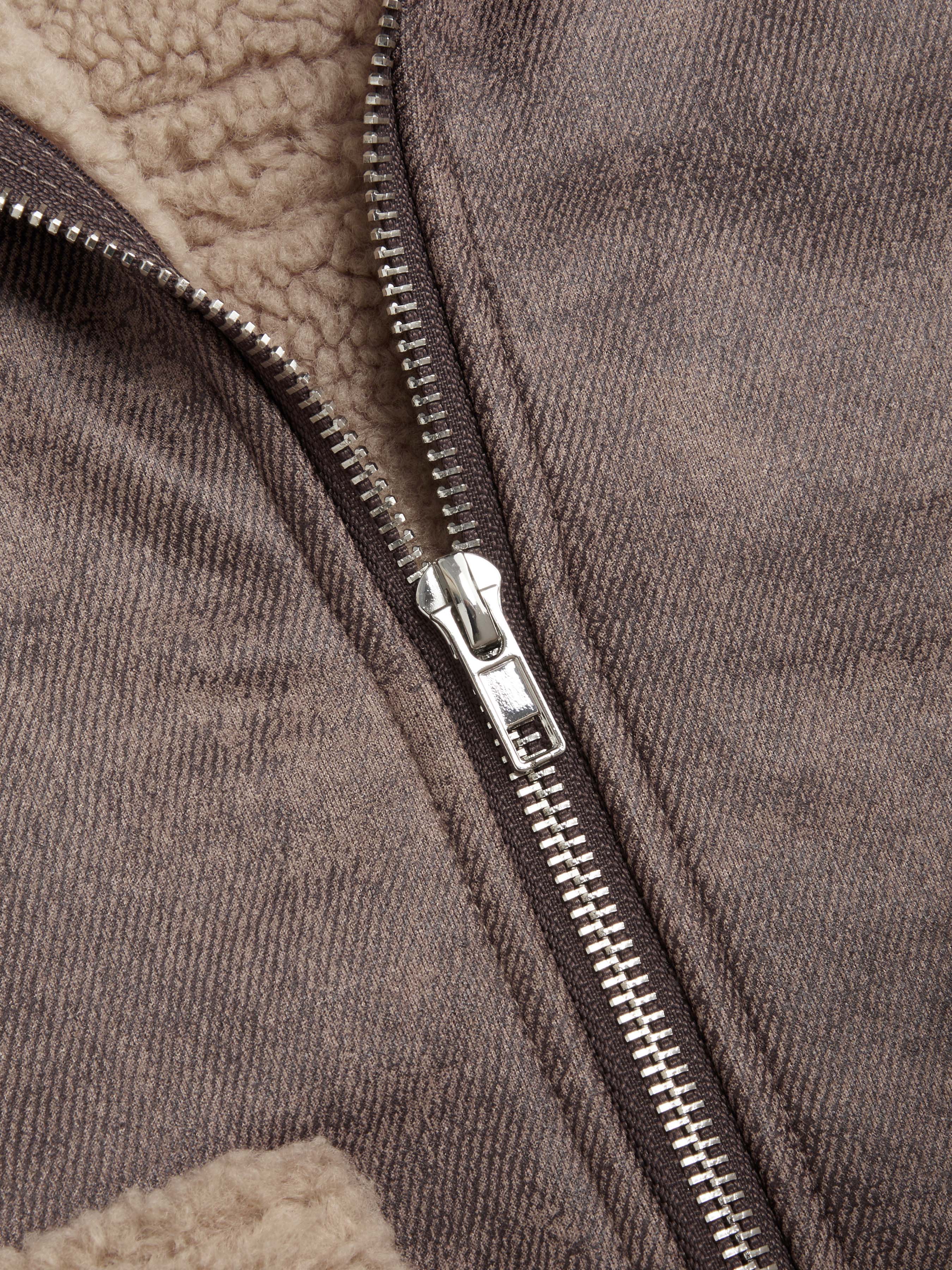 Giacca in finto shearling con colletto e tasche solide