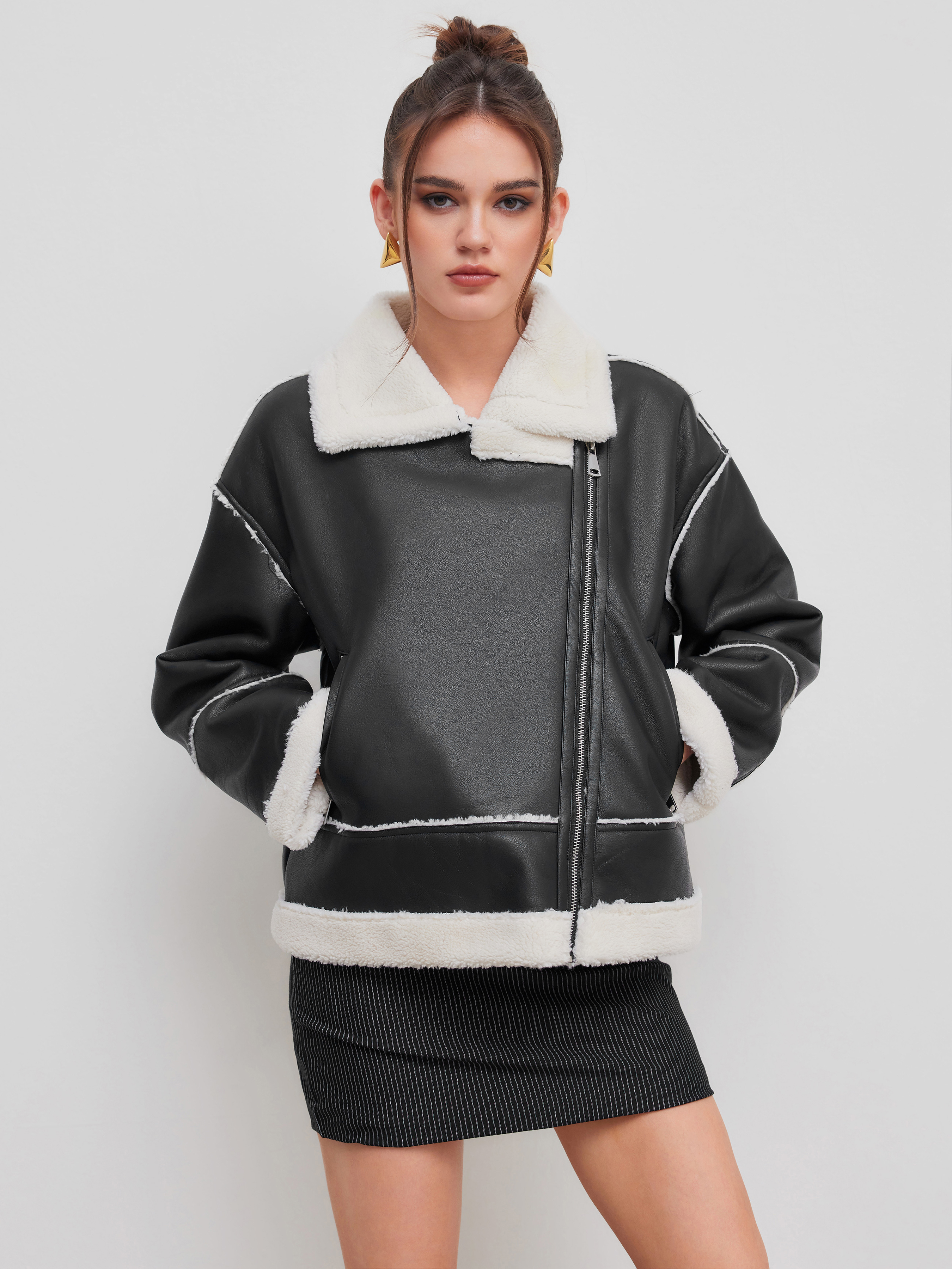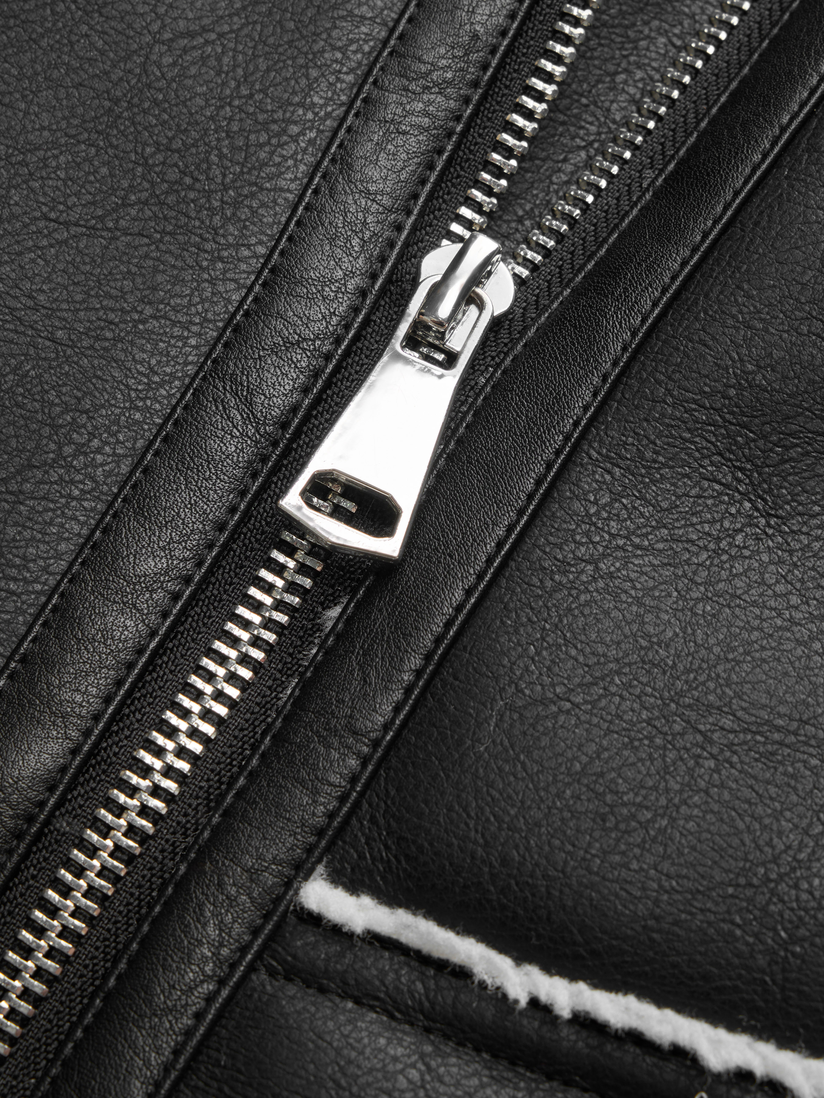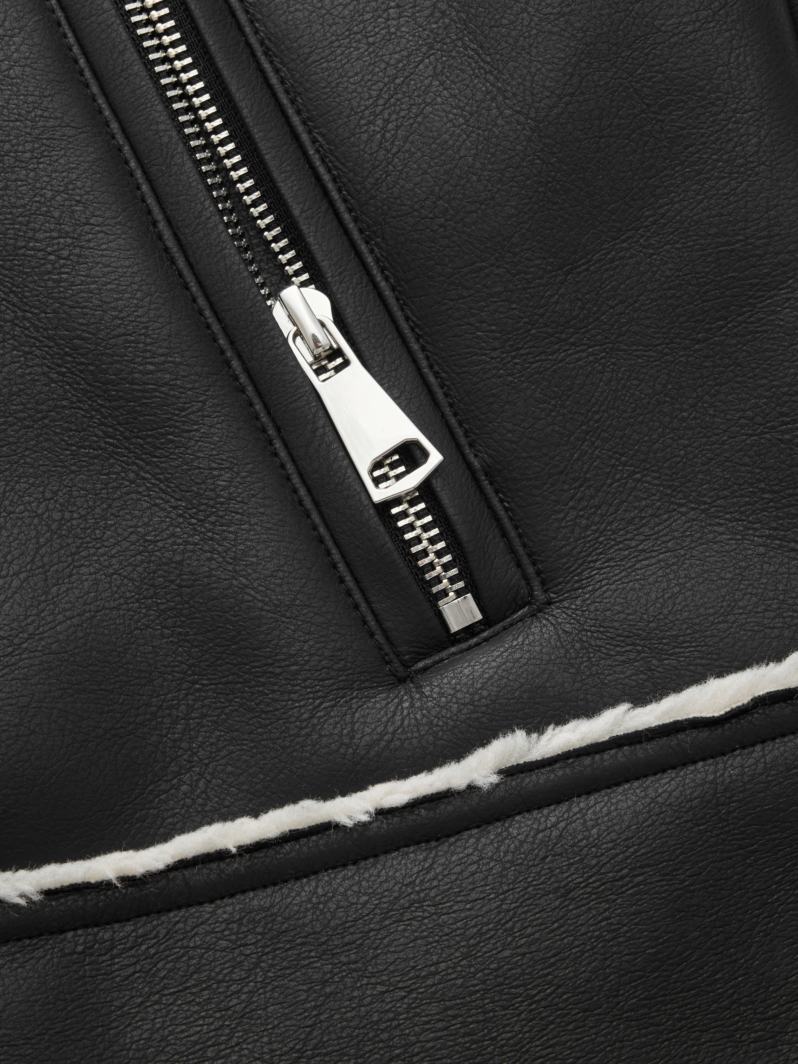 Giacca con cerniera con colletto in finto shearling e tasca solida