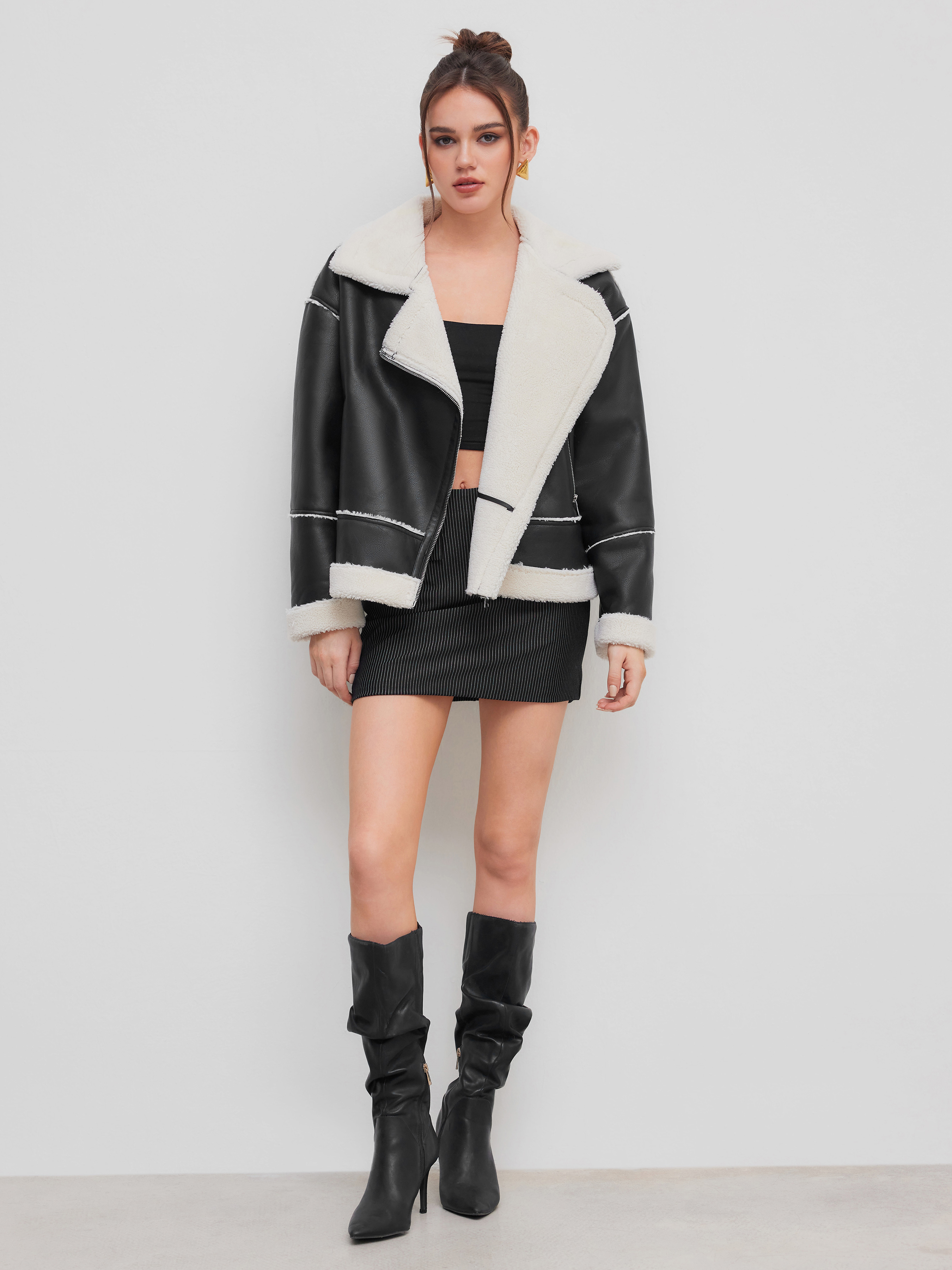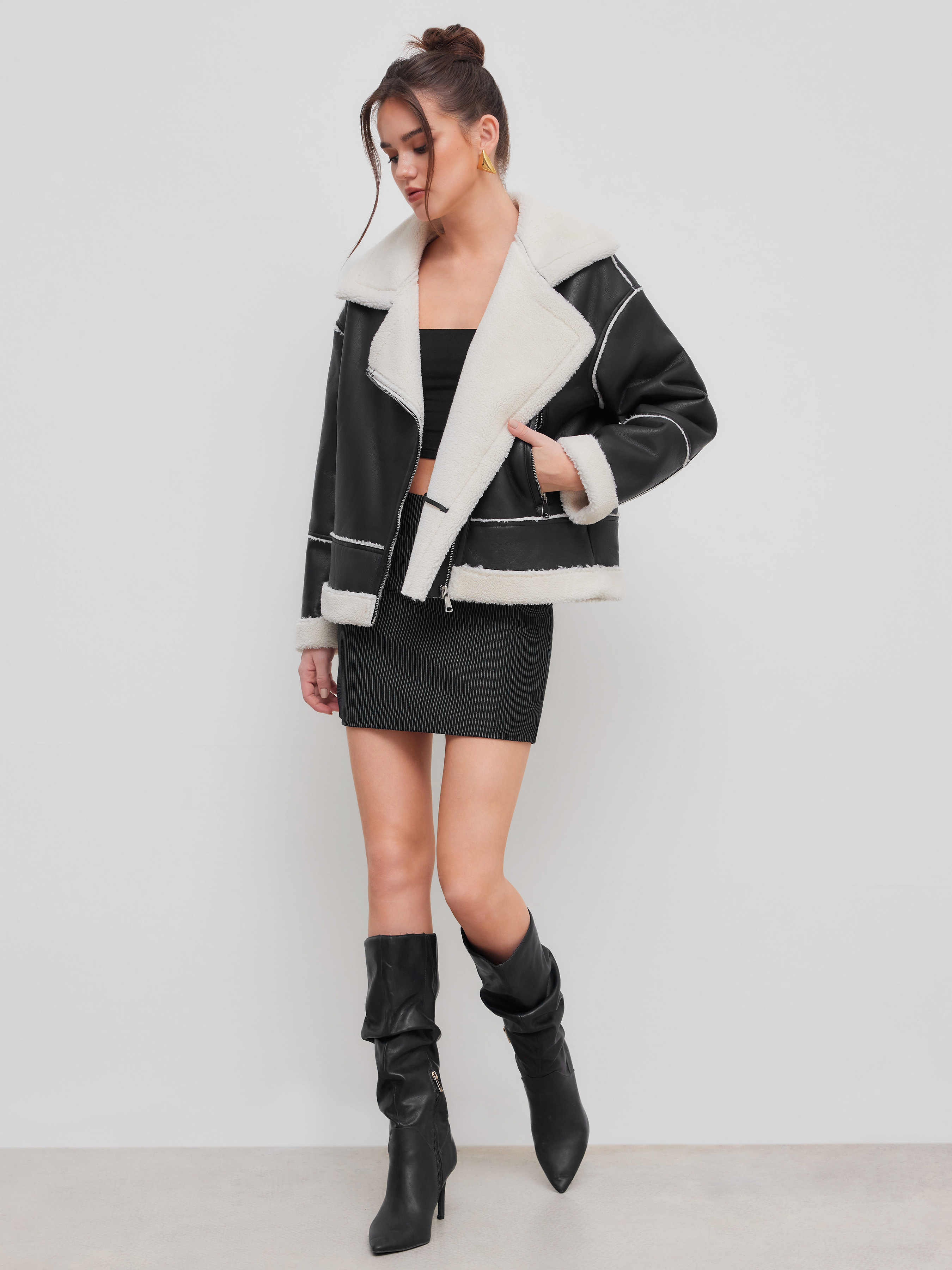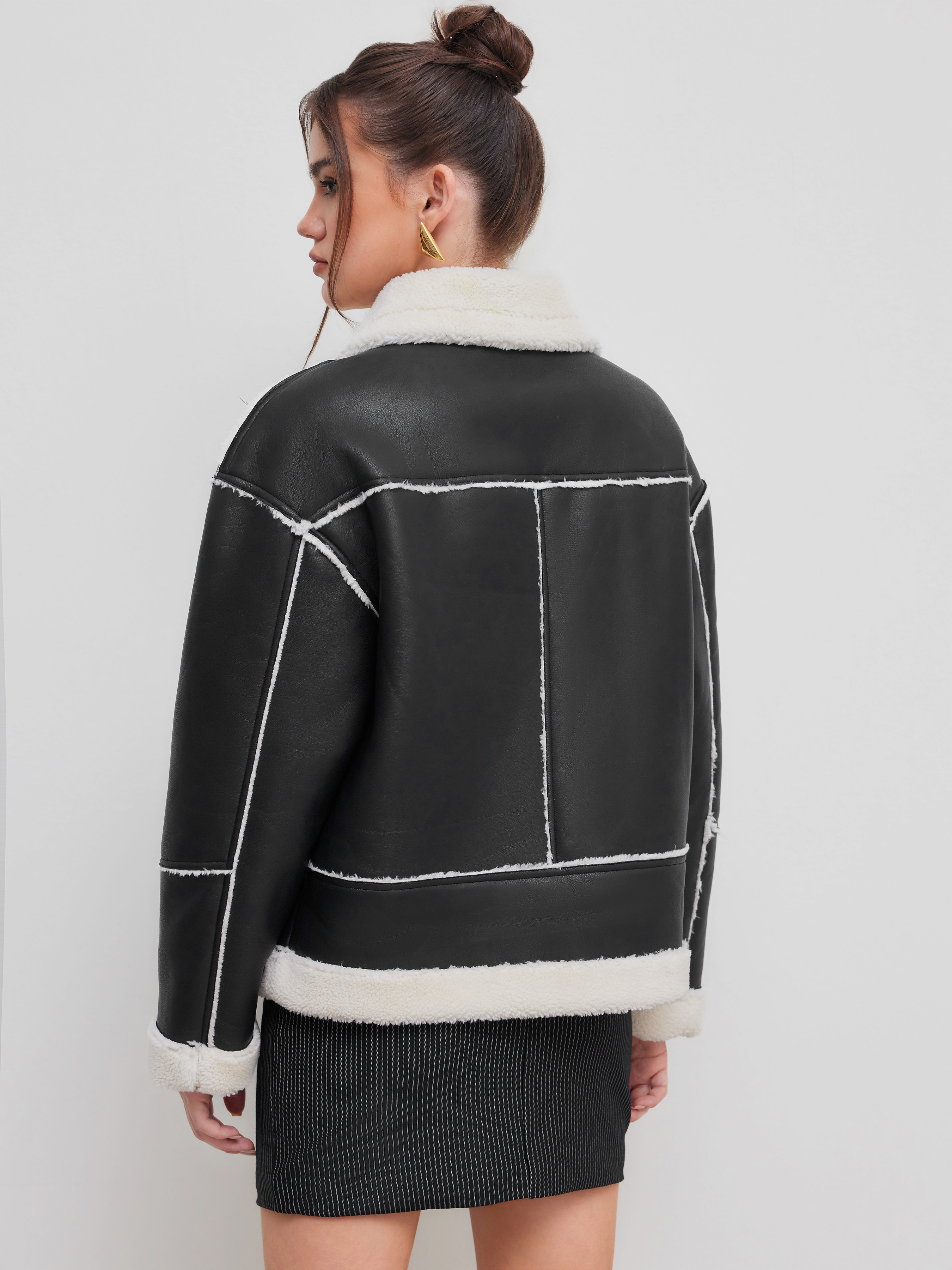 Giacca con cerniera con colletto in finto shearling e tasca solida