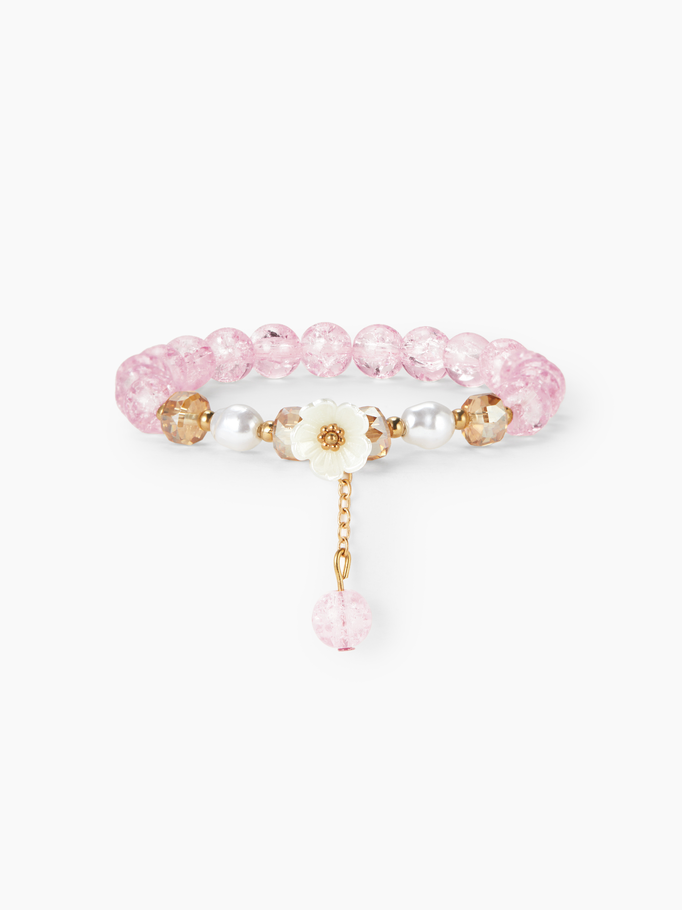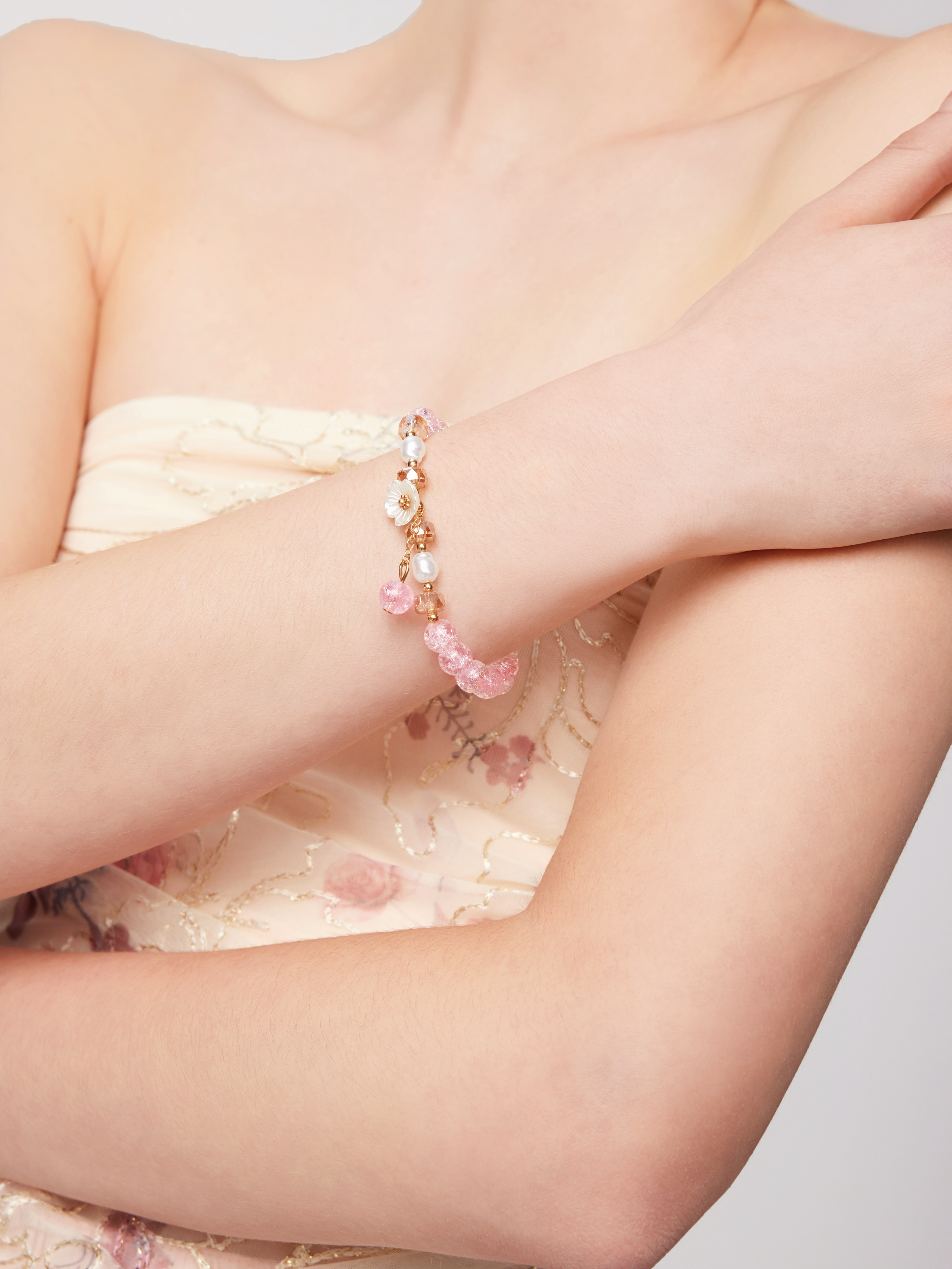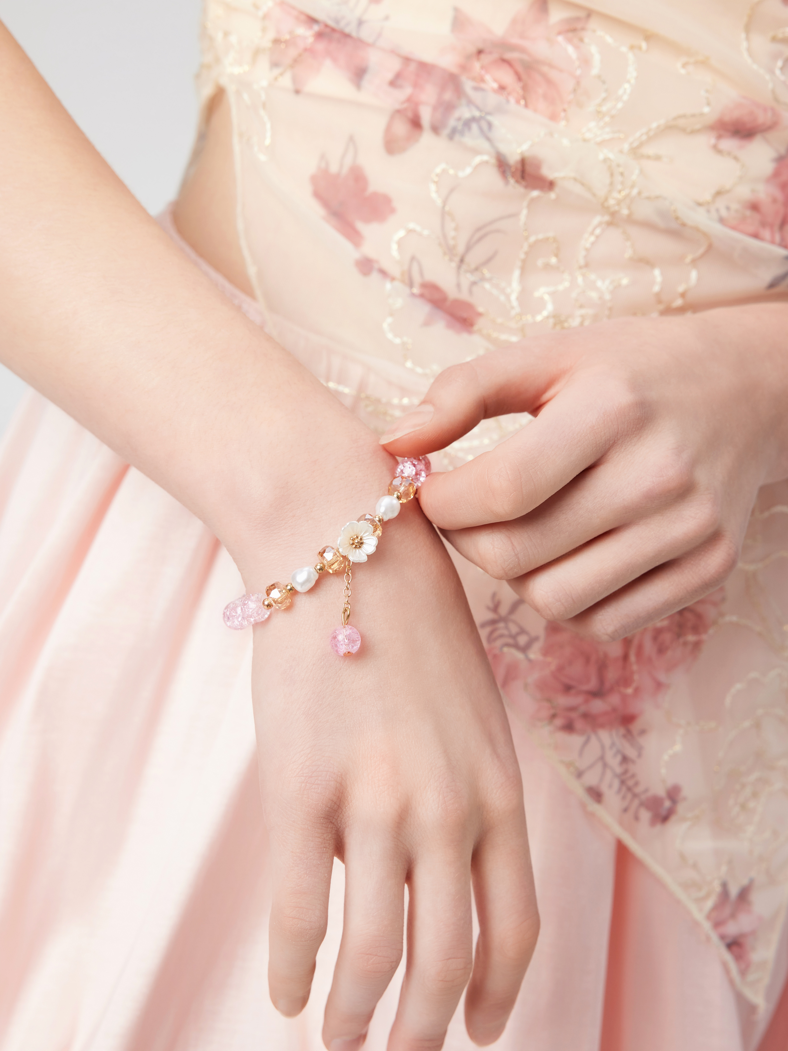 BRACCIALE CON FIORI, PERLE SIMILARI E PERLINE ARTIFICIALI DI CRISTALLO