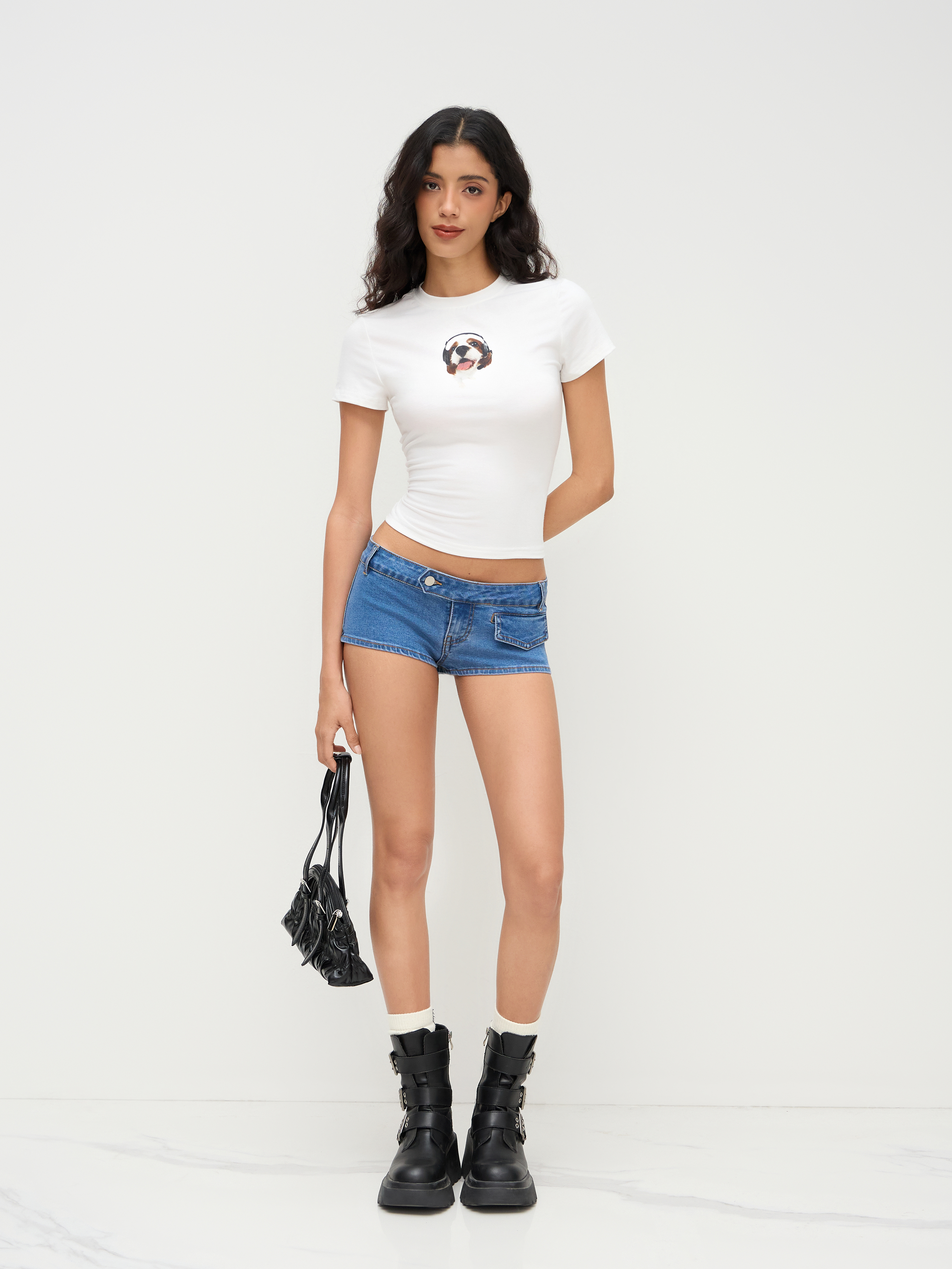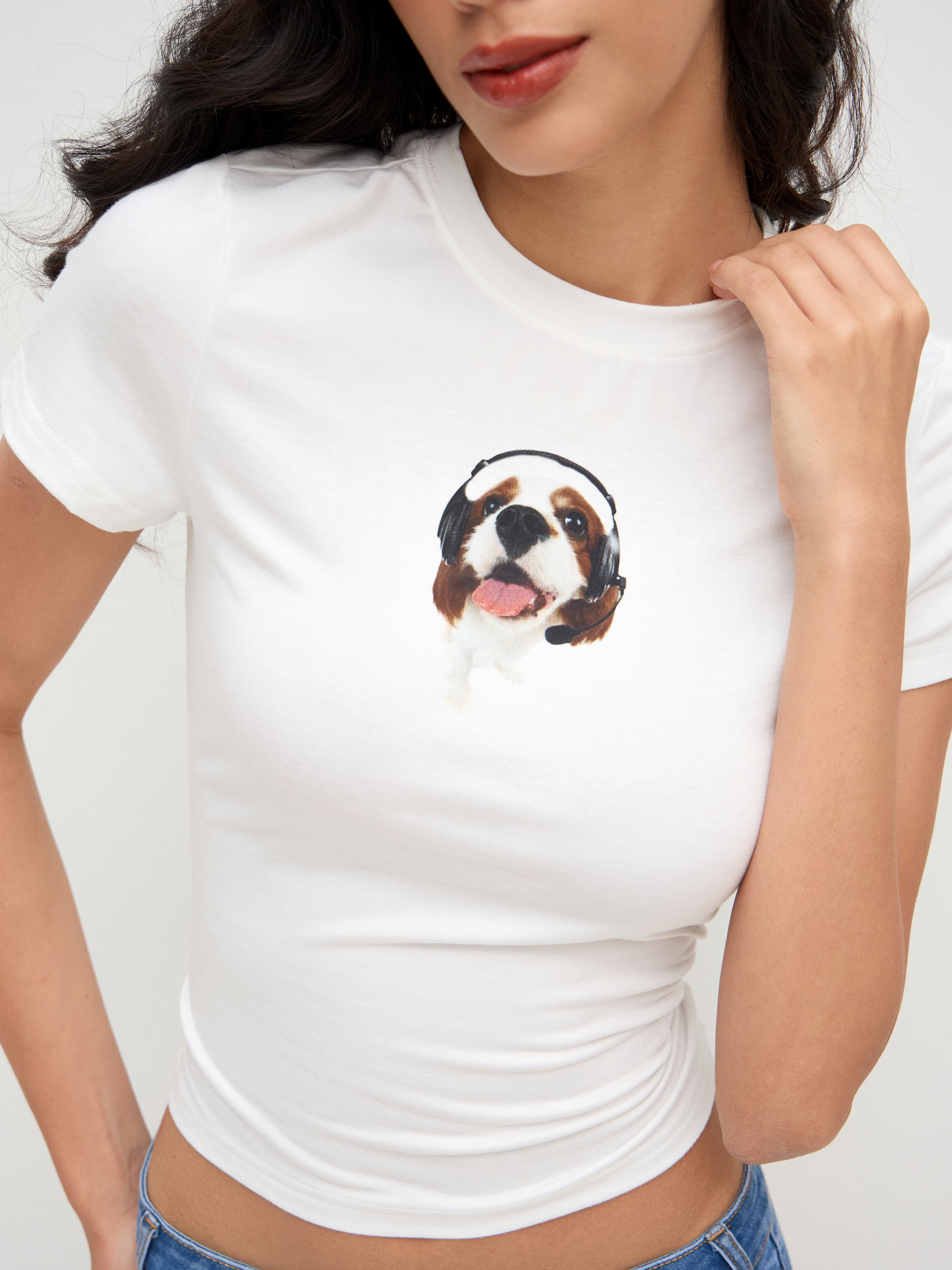 Maglietta grafica a maniche corte con cani che indossano le cuffie