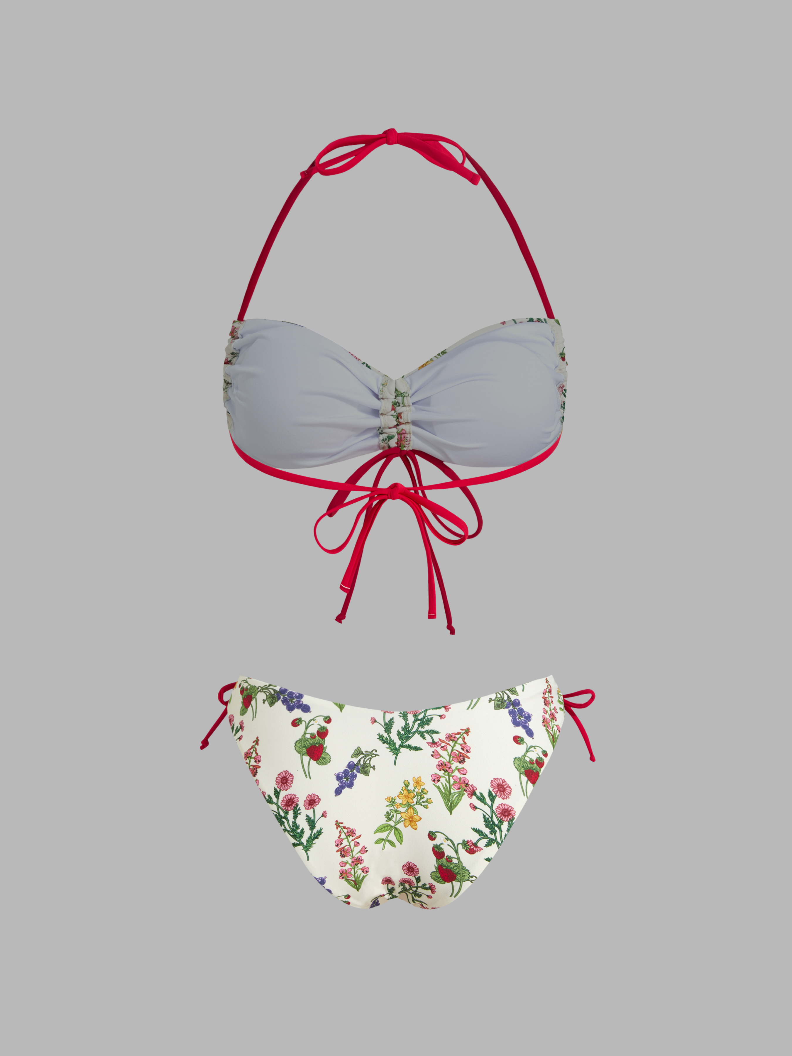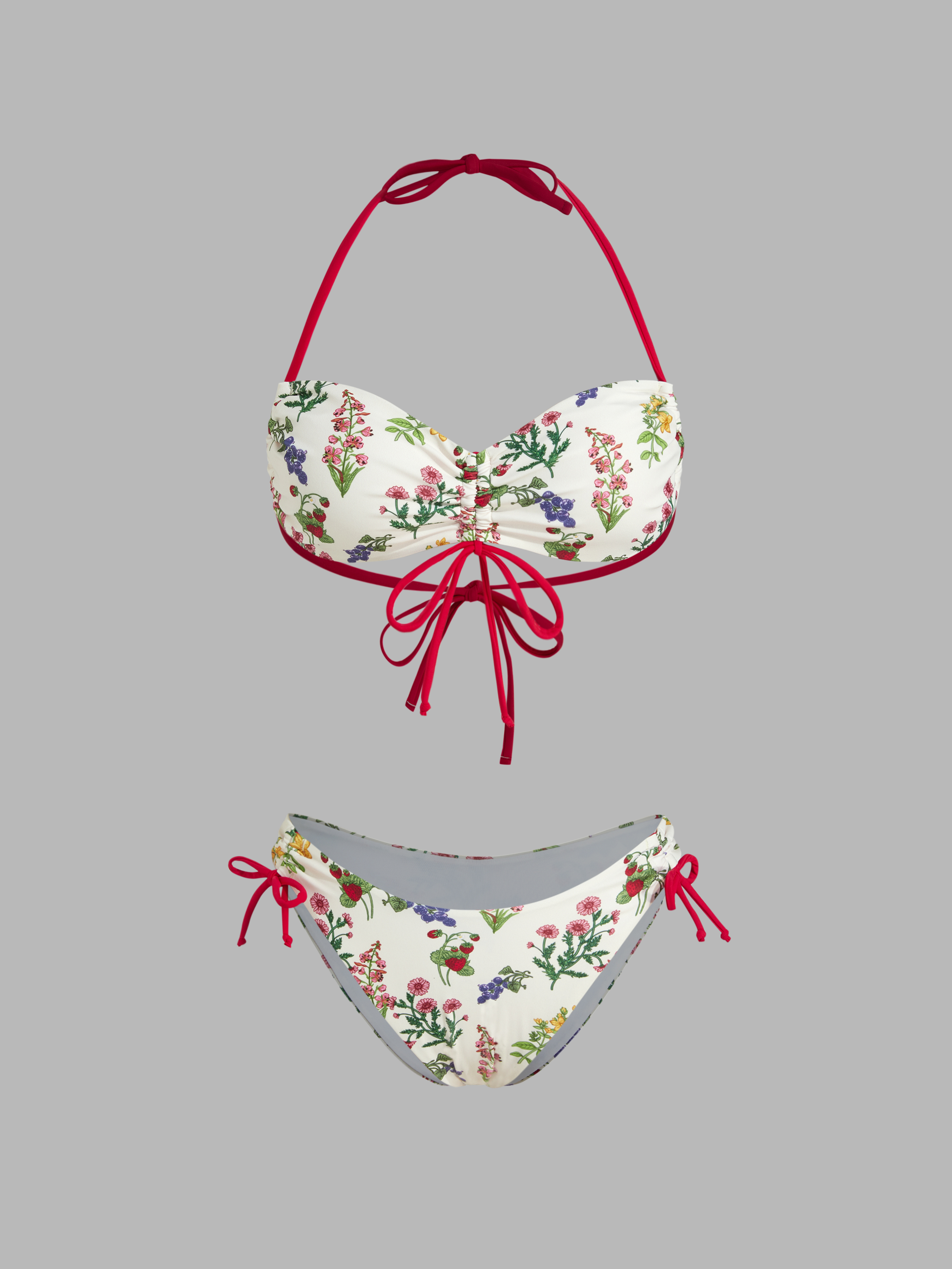 Costume da bagno bikini sfacciato con fiocco floreale e bracciale con coulisse