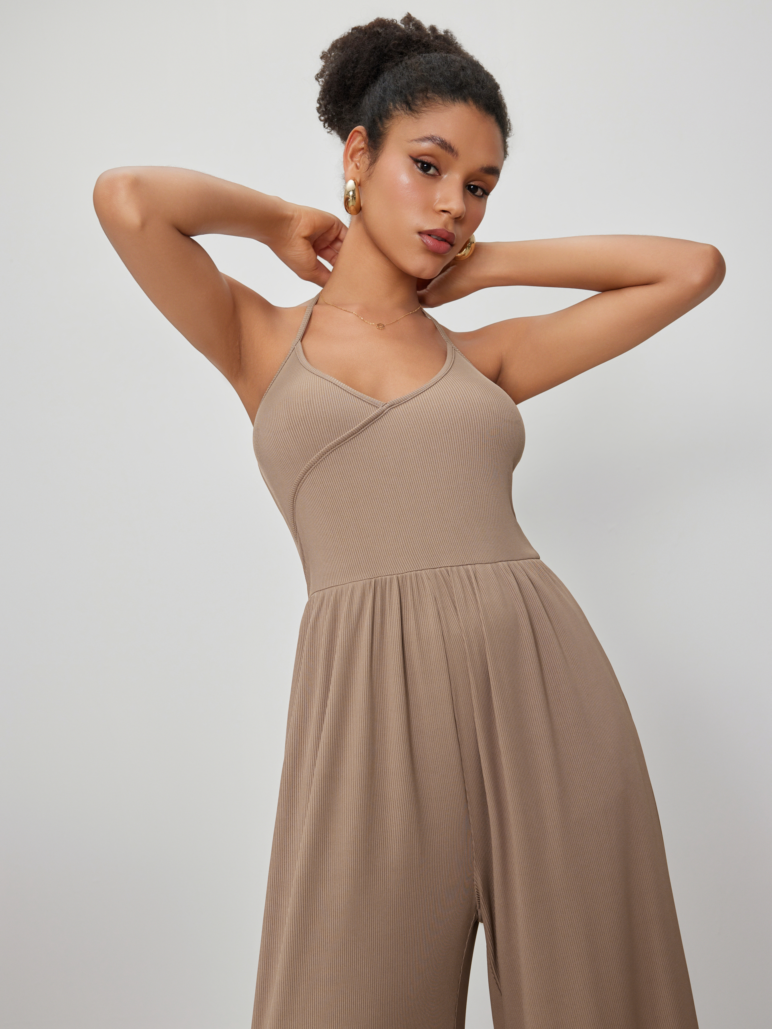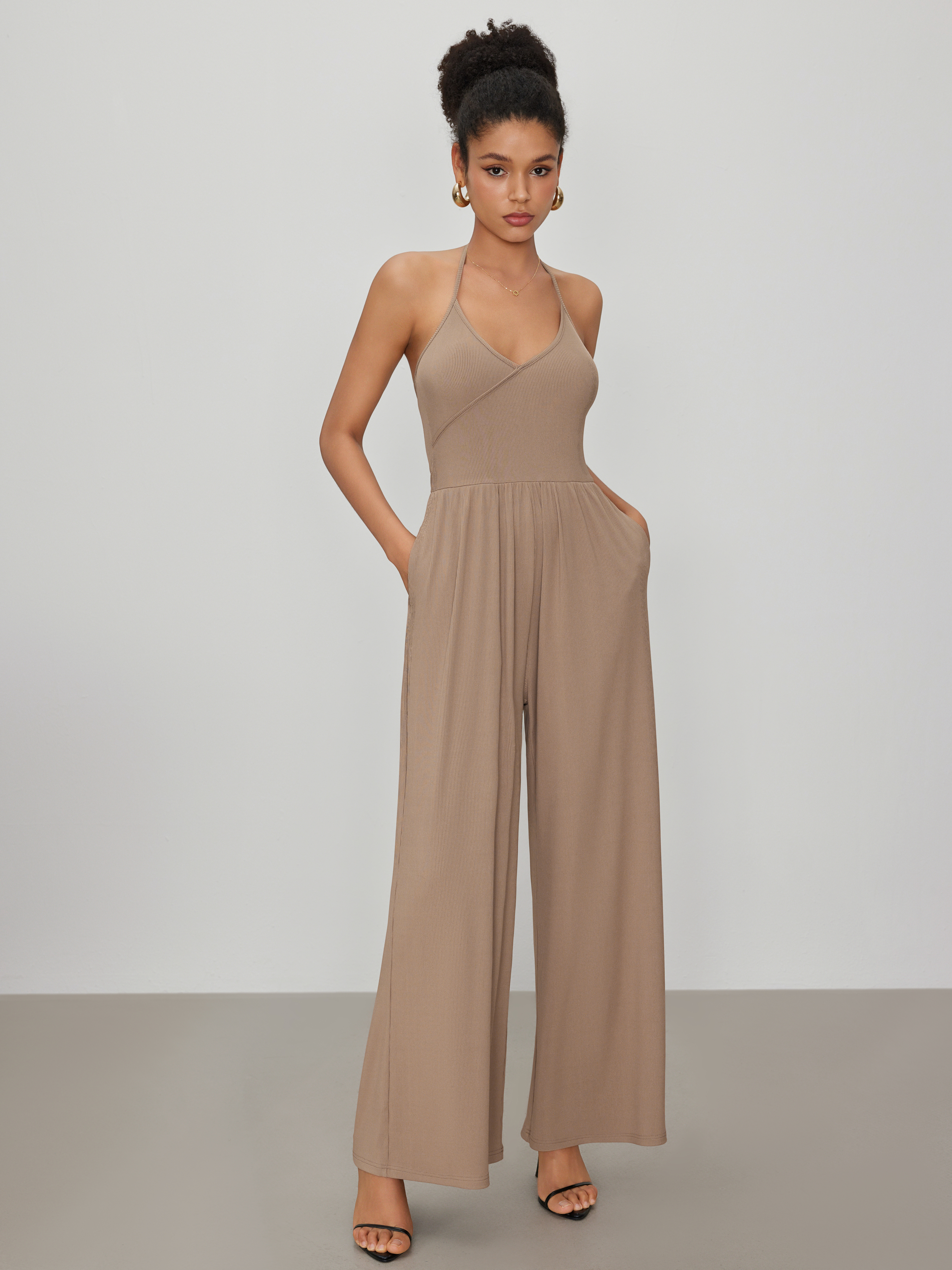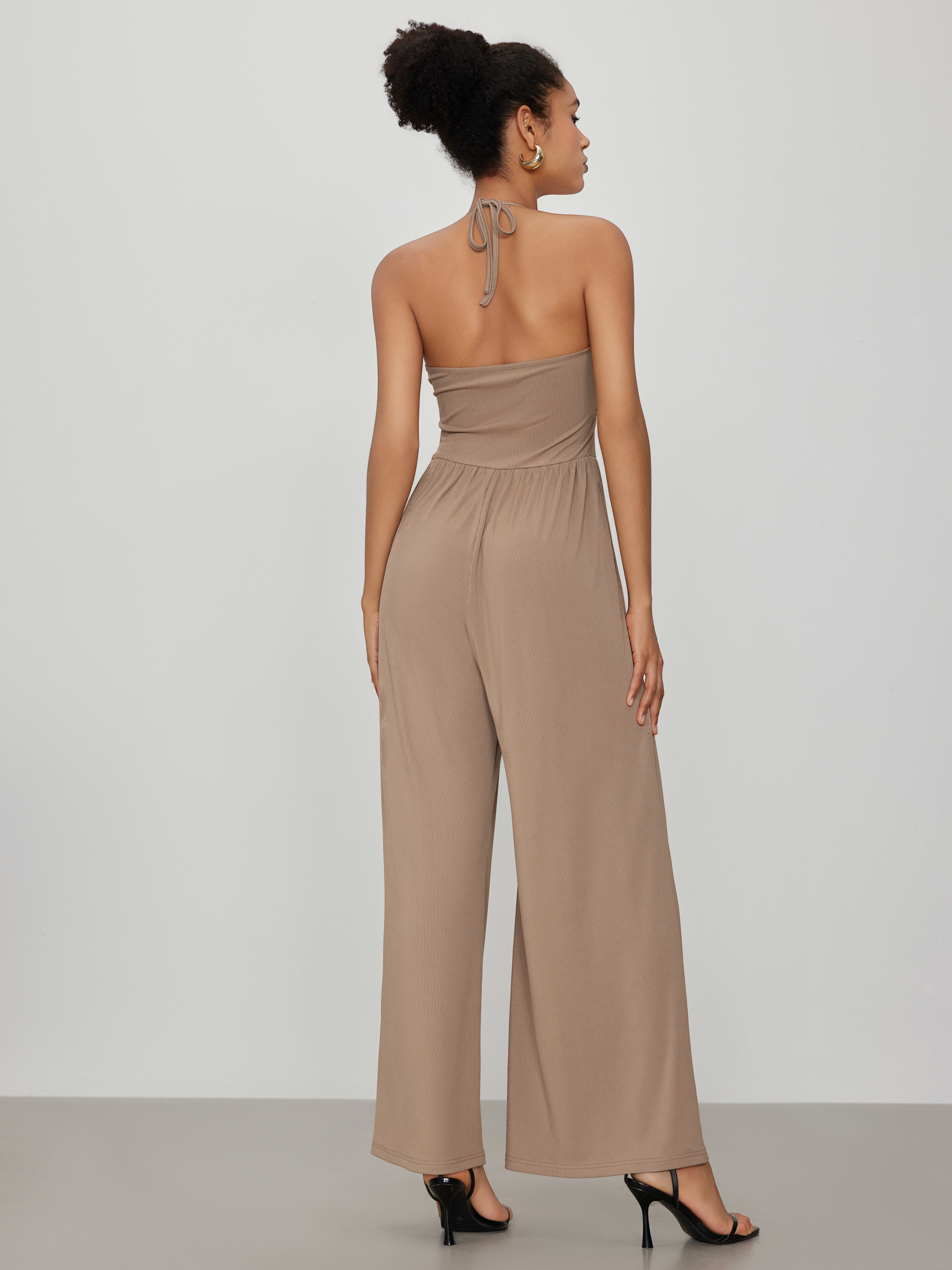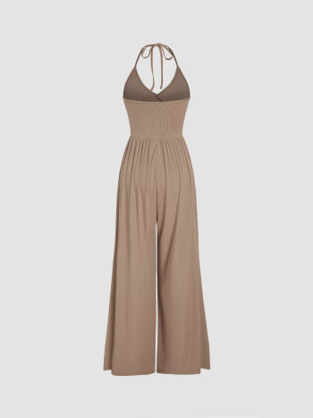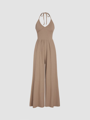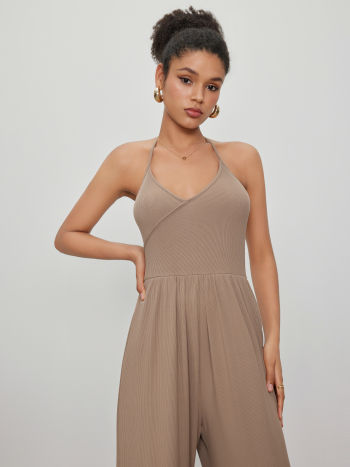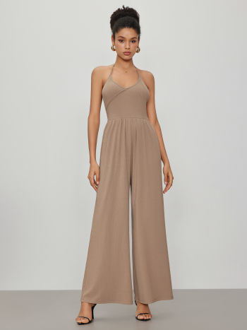 Tuta a gamba larga con scollo a farfalla e avvolgimento solido