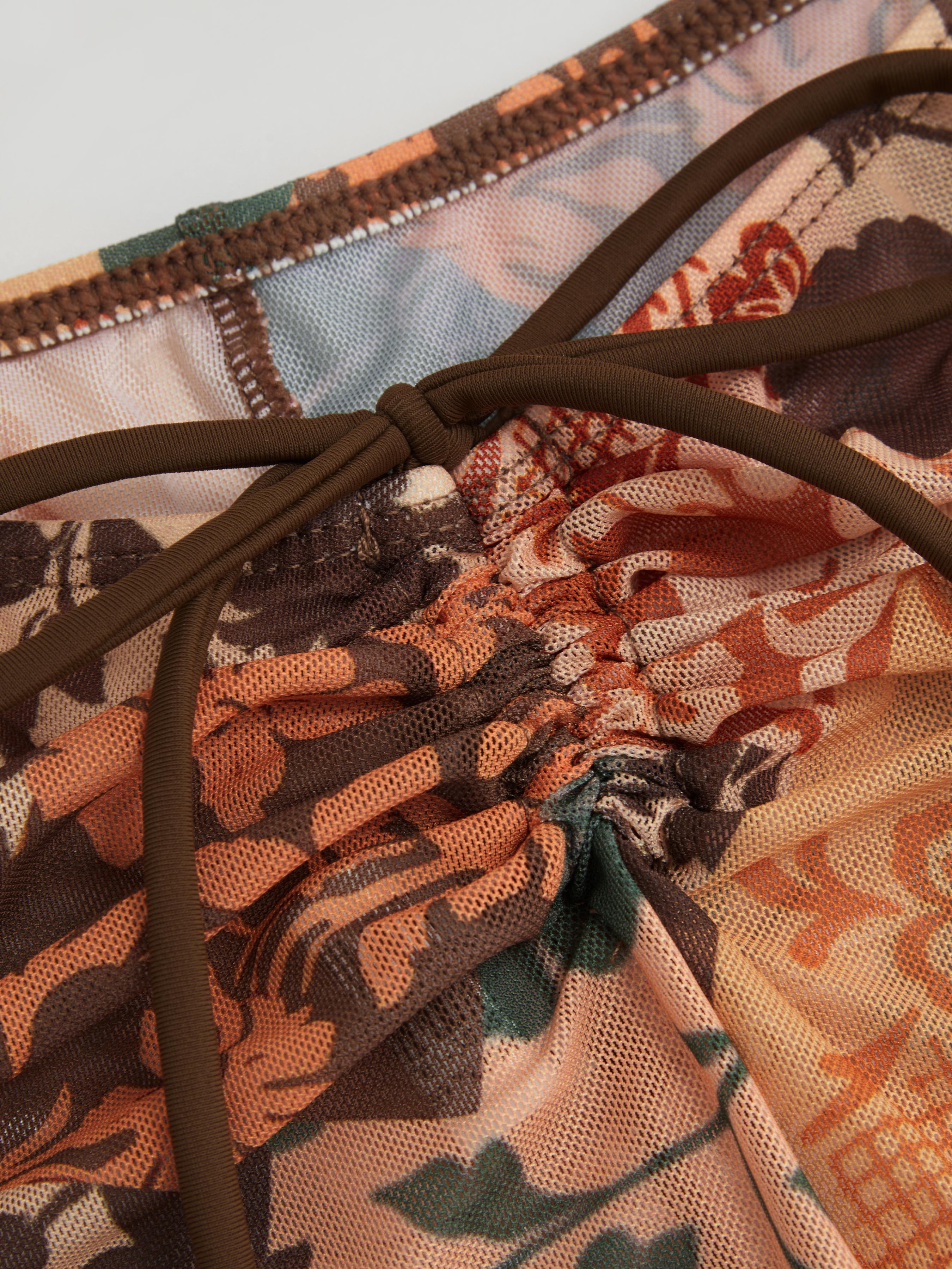 Set bikini sfrontato con scollo alla francese e pantaloni coprenti floreali
