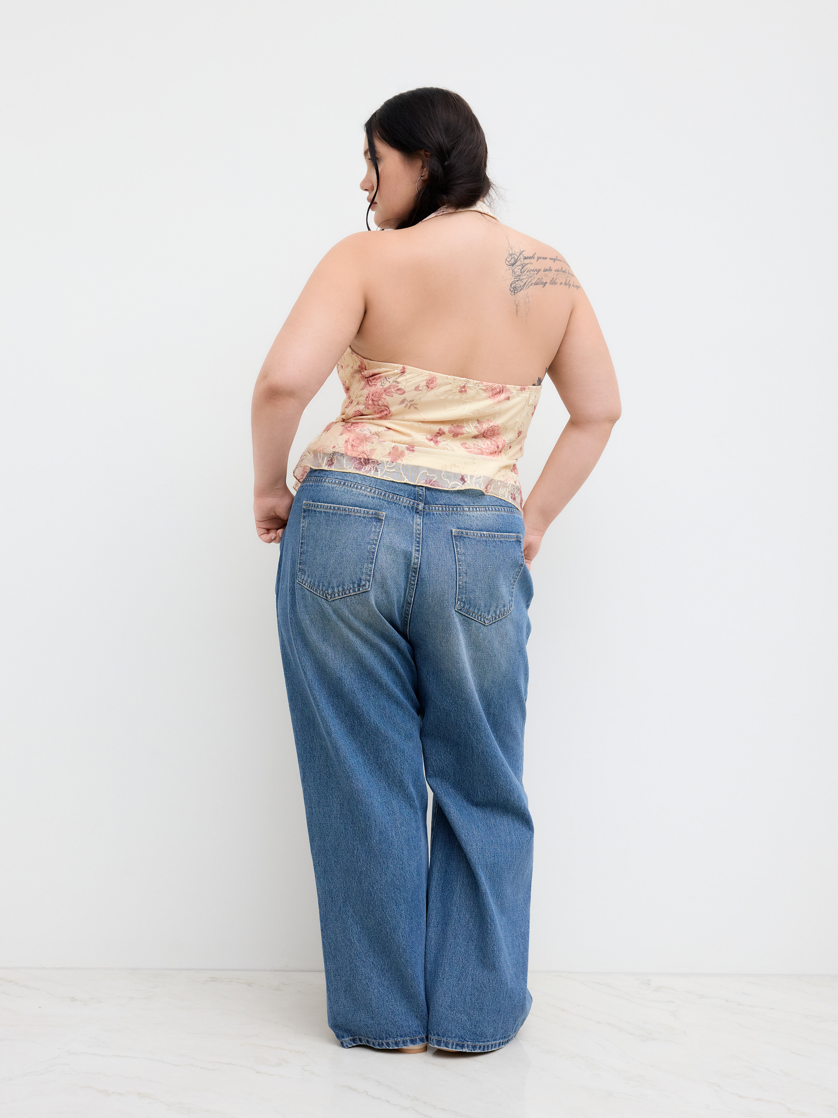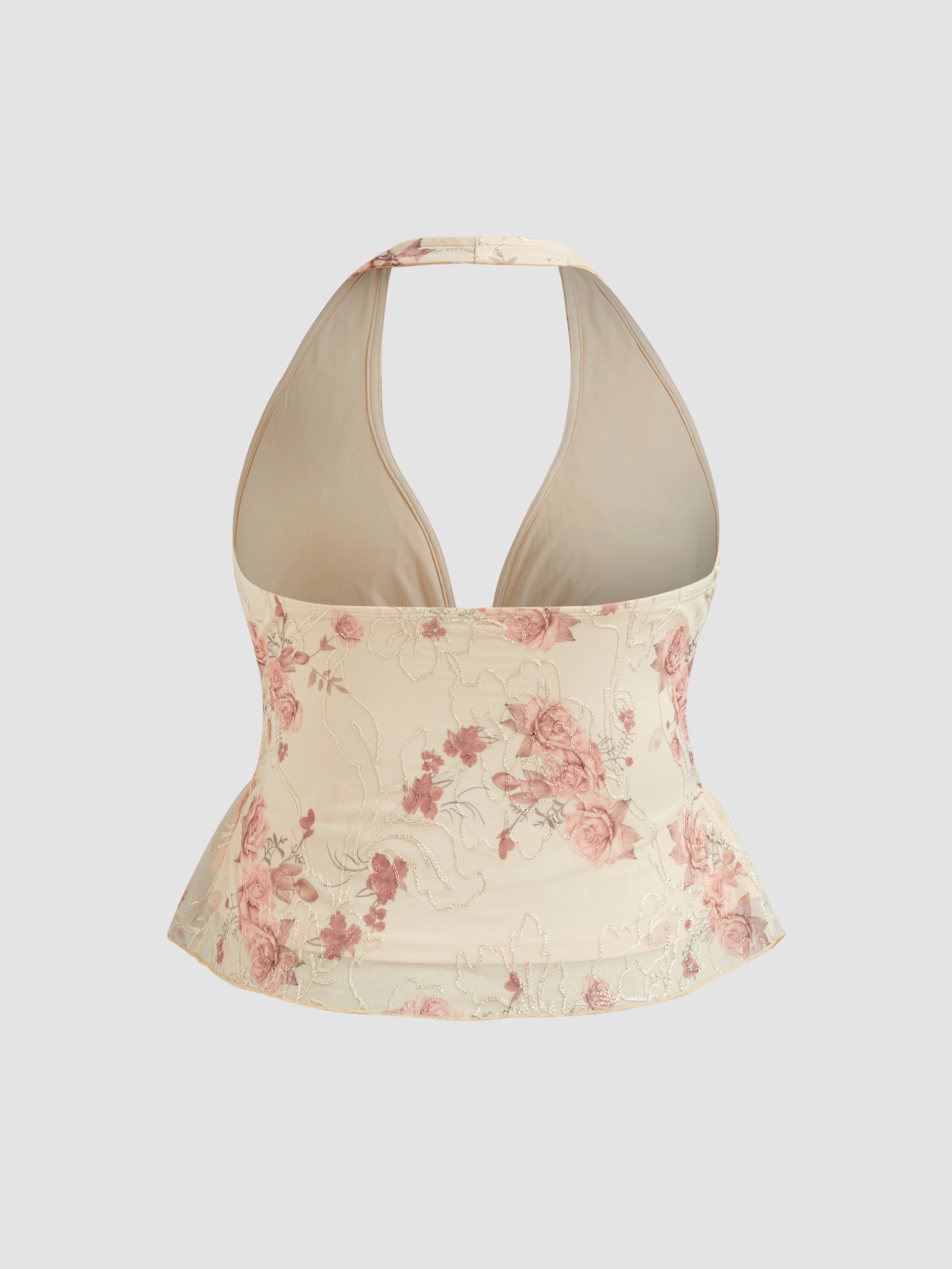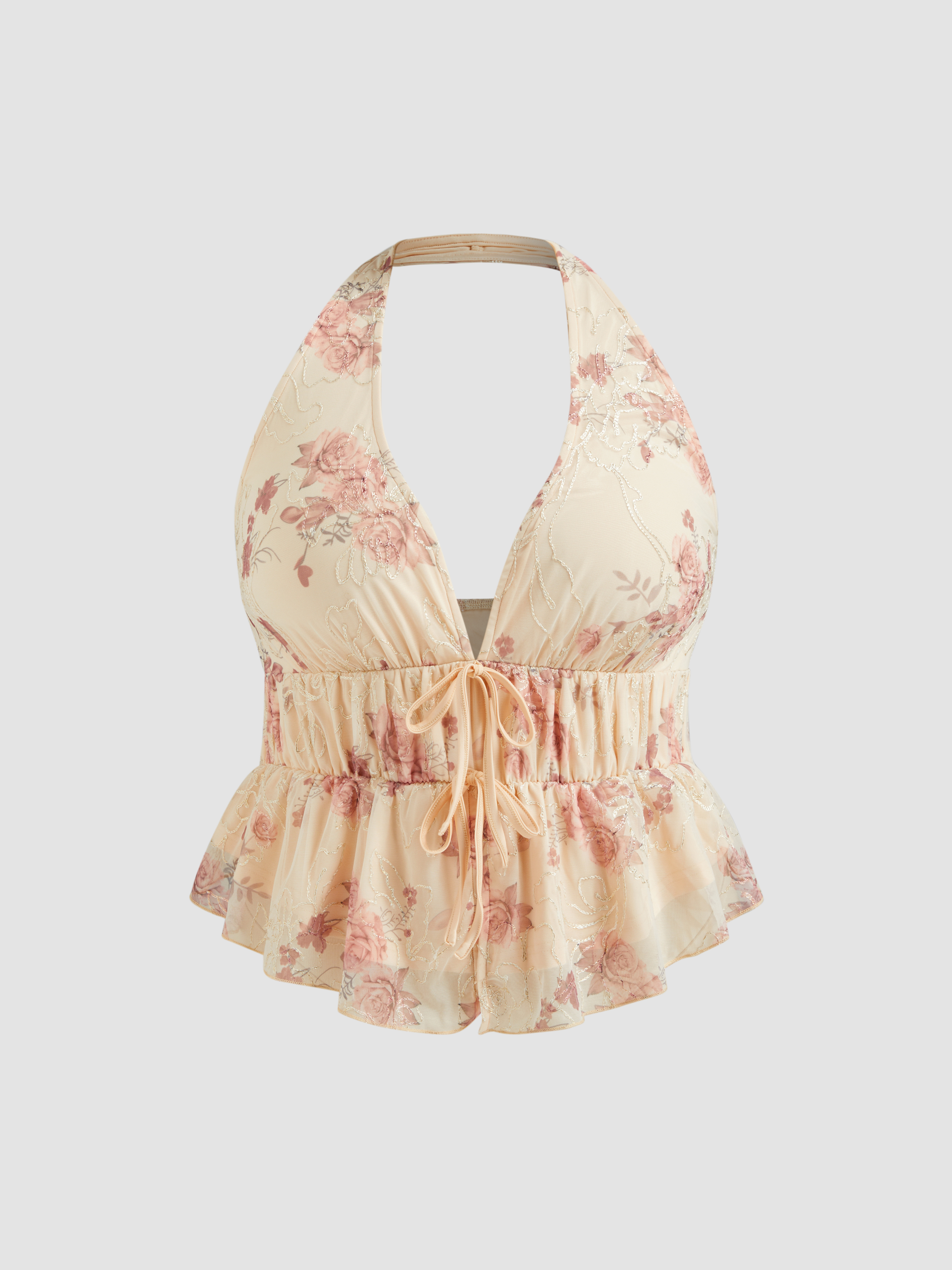 Canotta floreale con nodo e scollo all'americana taglie forti e curvy