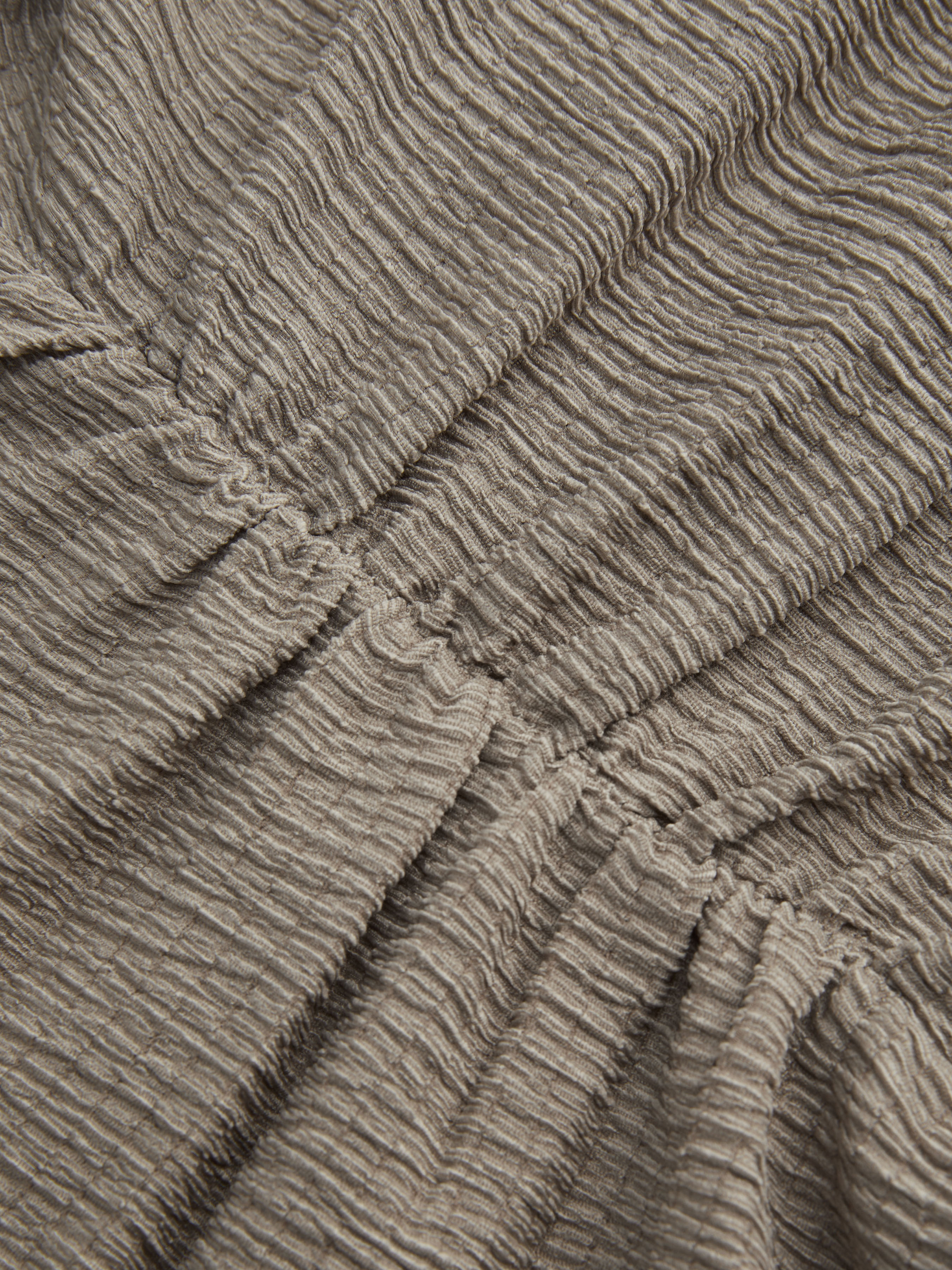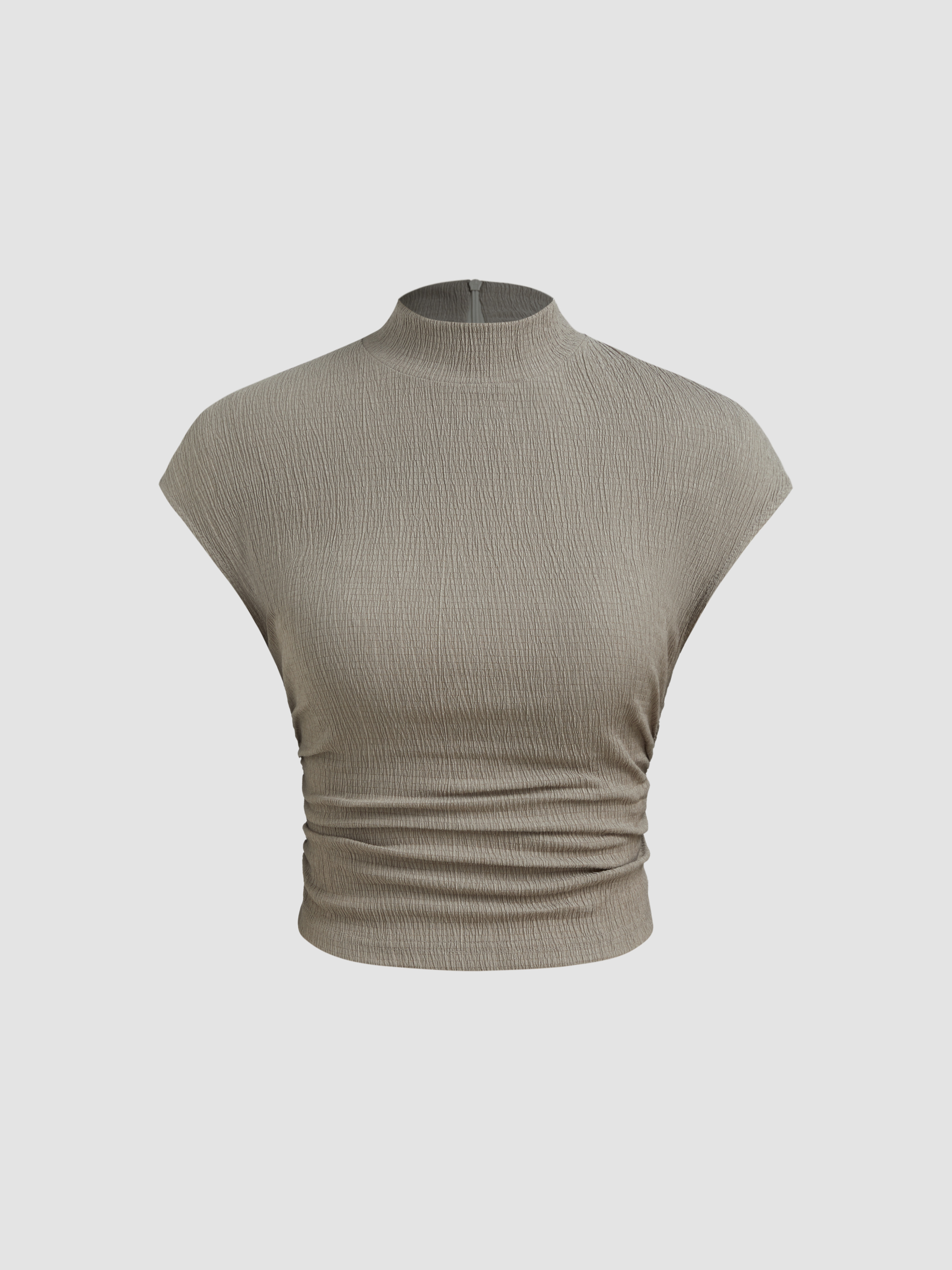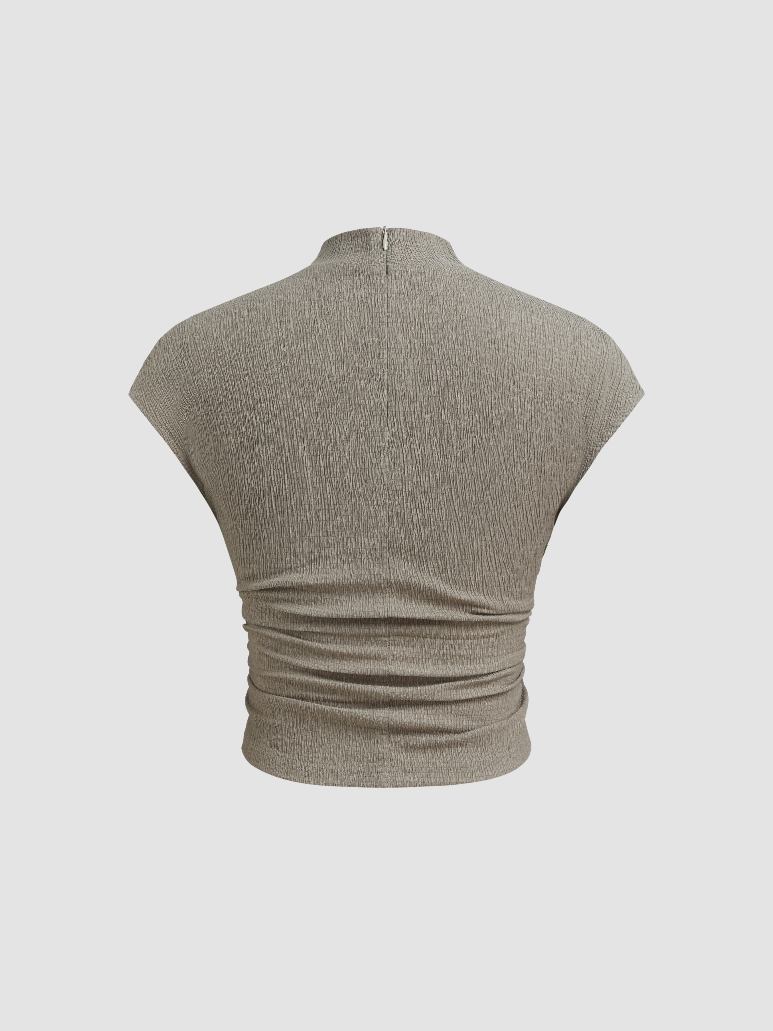 Canotta a collo alto con increspatura a tinta unita e maxi gonna a mezza altezza con spacco a tinta unita