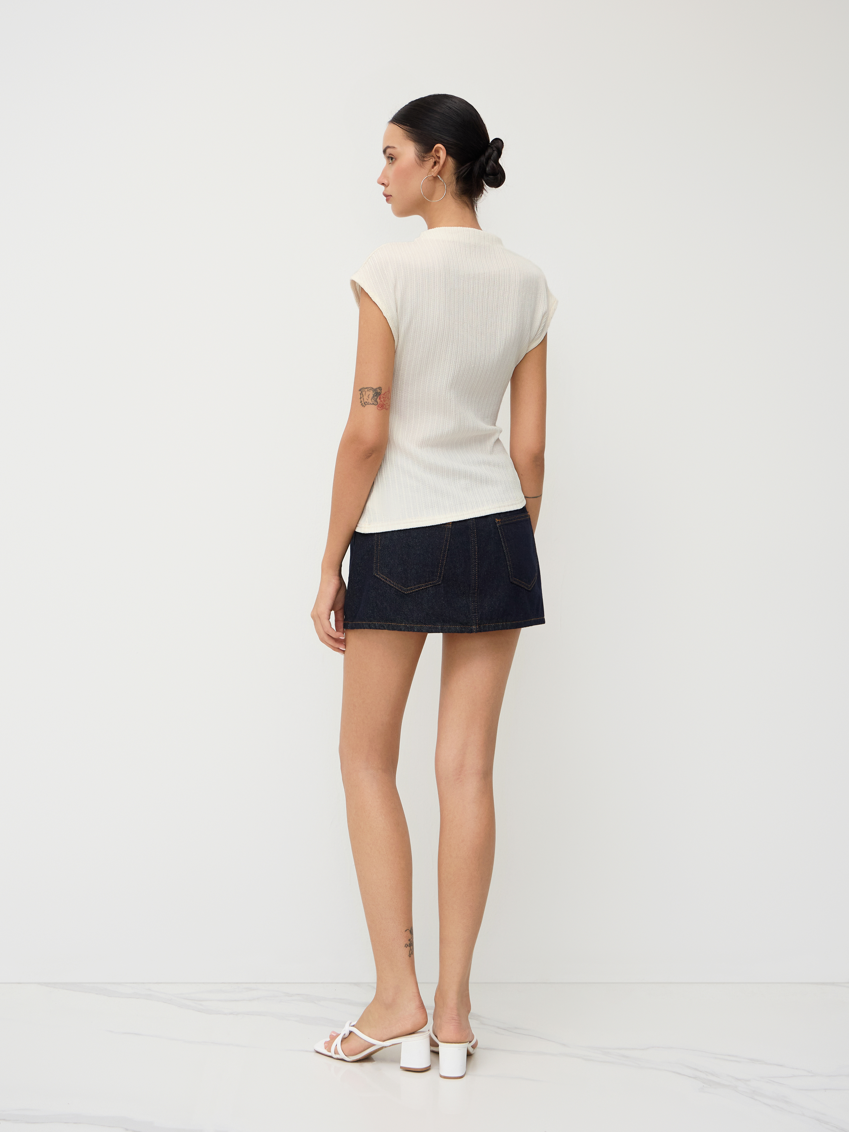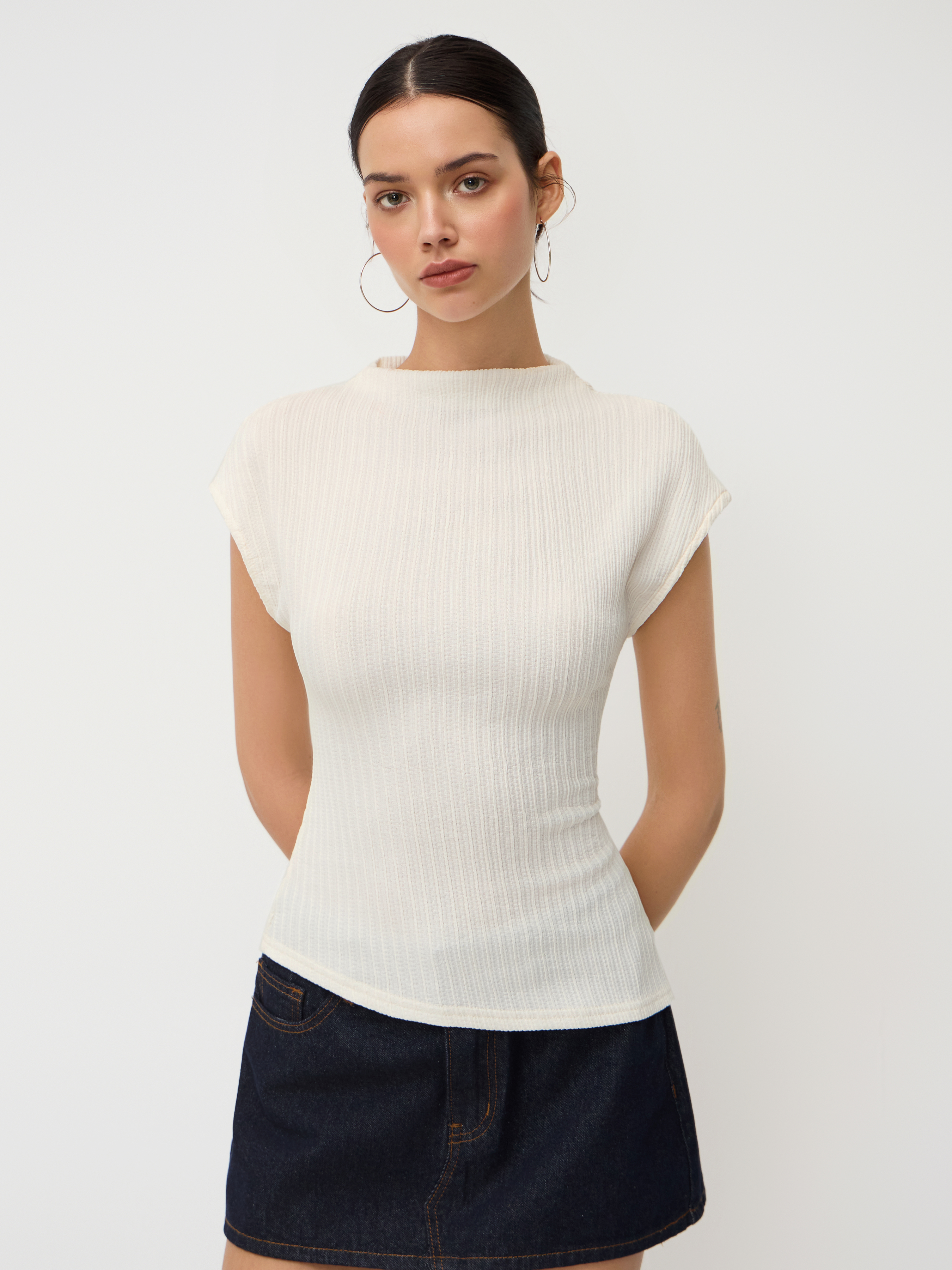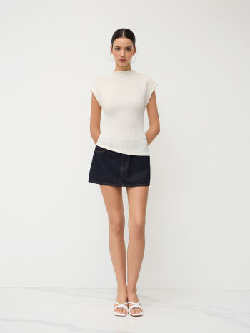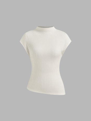 Top a collo alto testurizzato con orlo asimmetrico