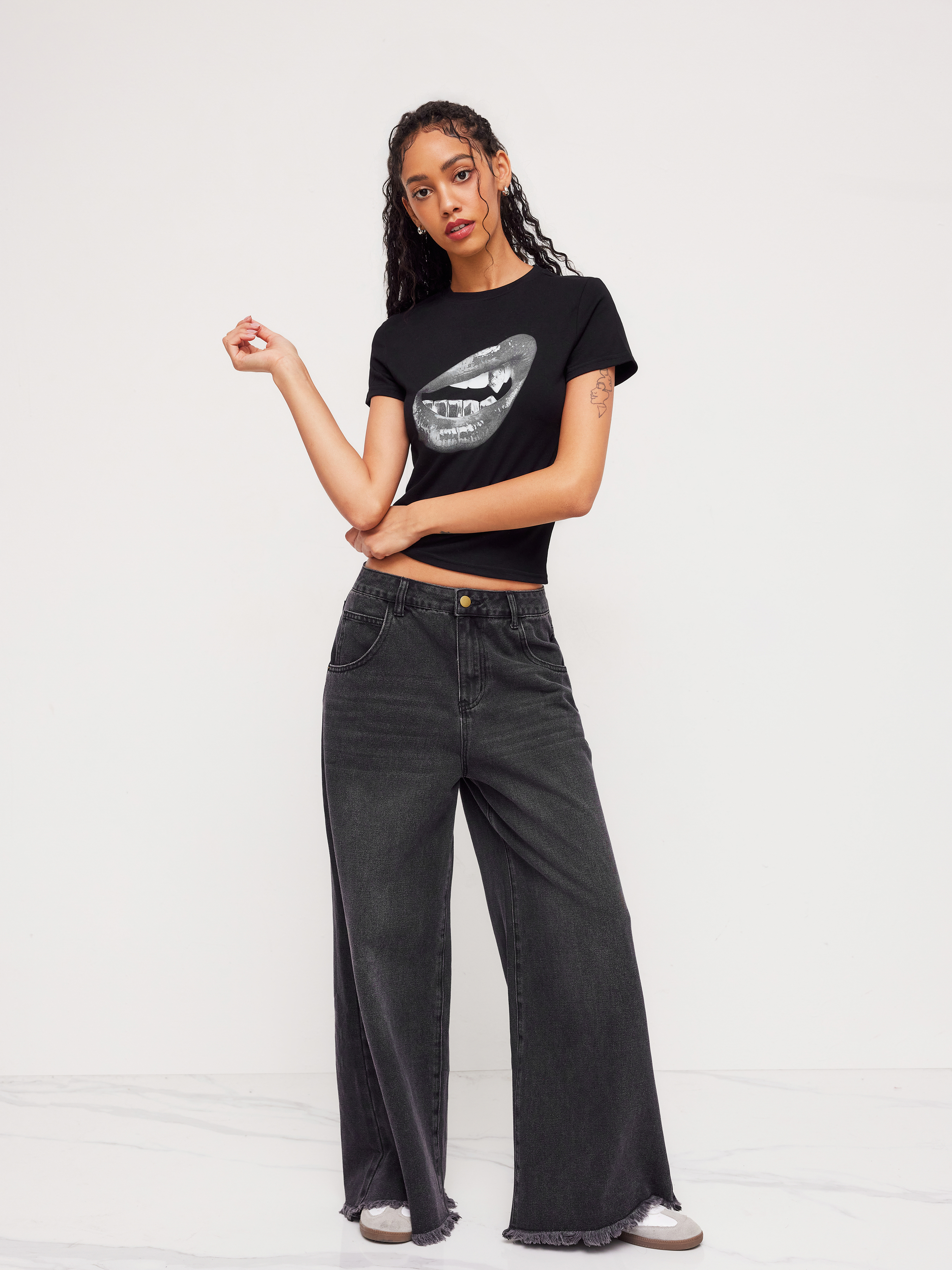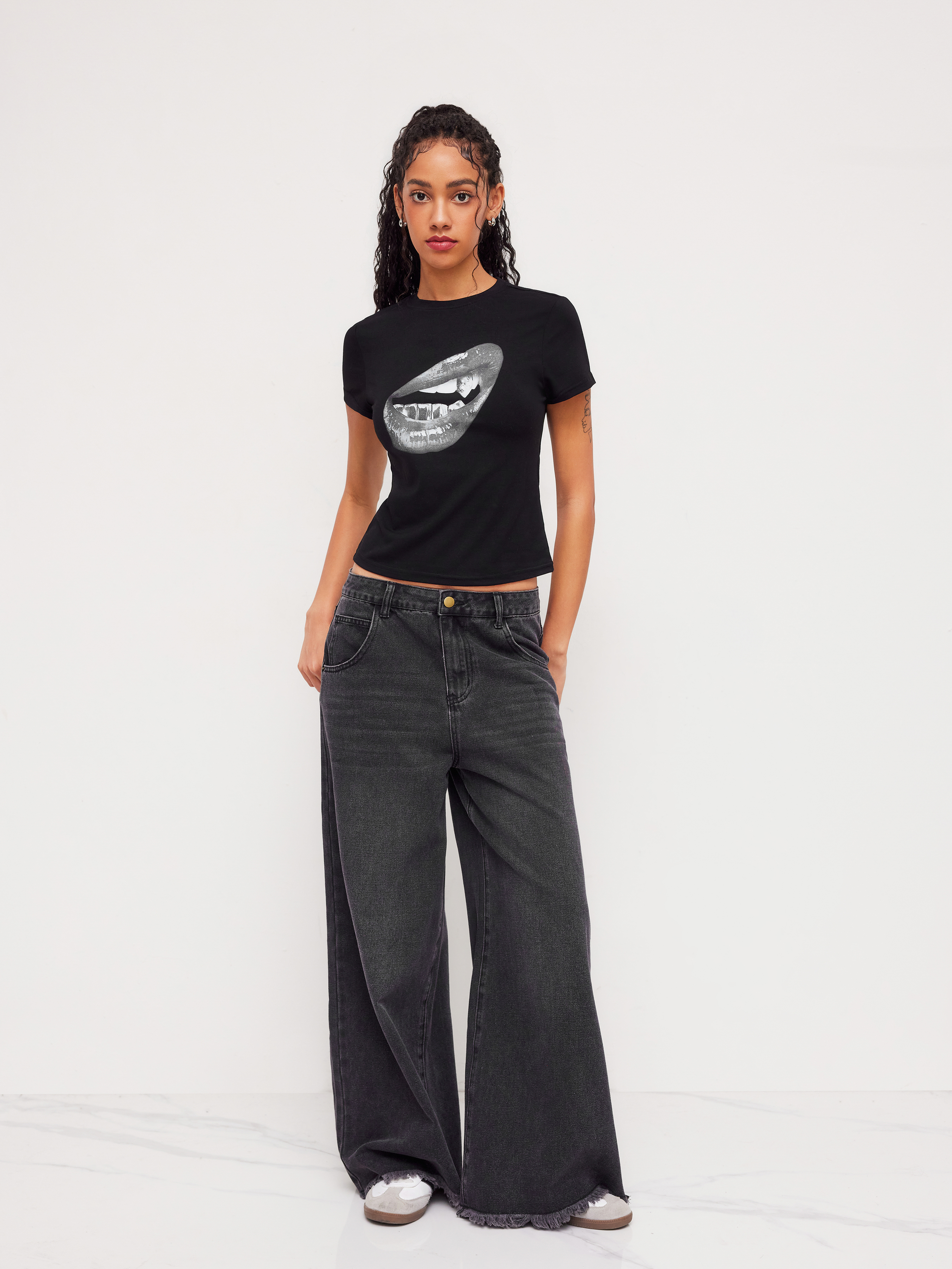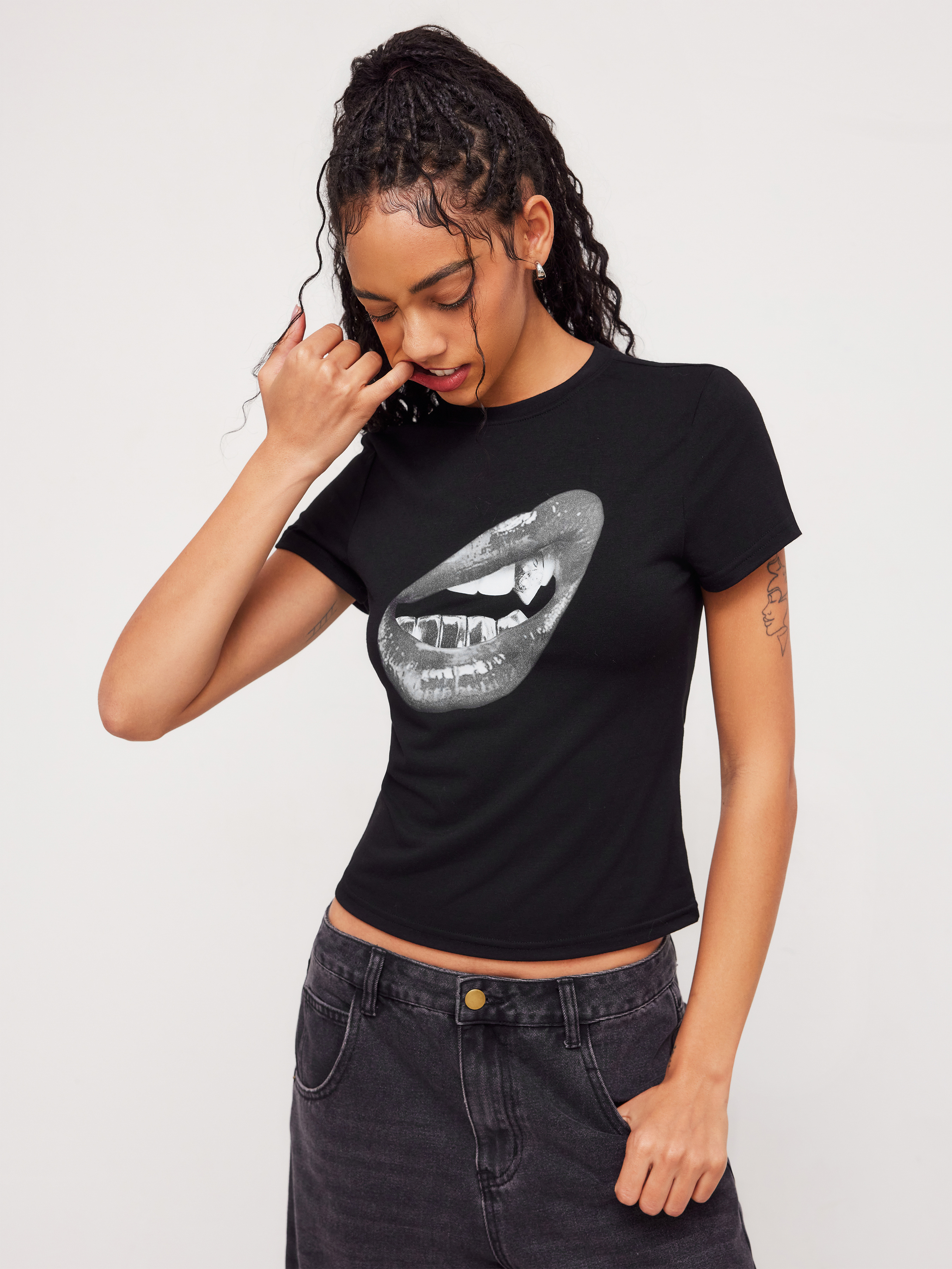 Scollo rotondo Mouth Graphic Tee a manica corta
