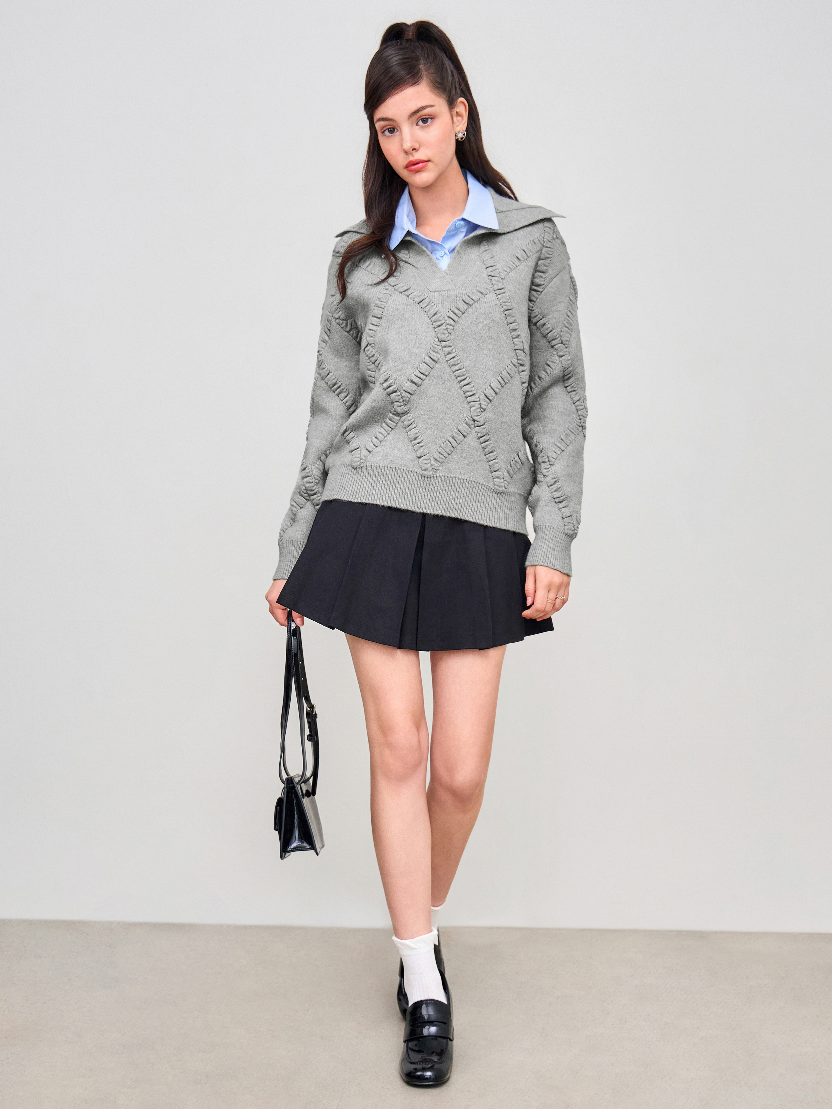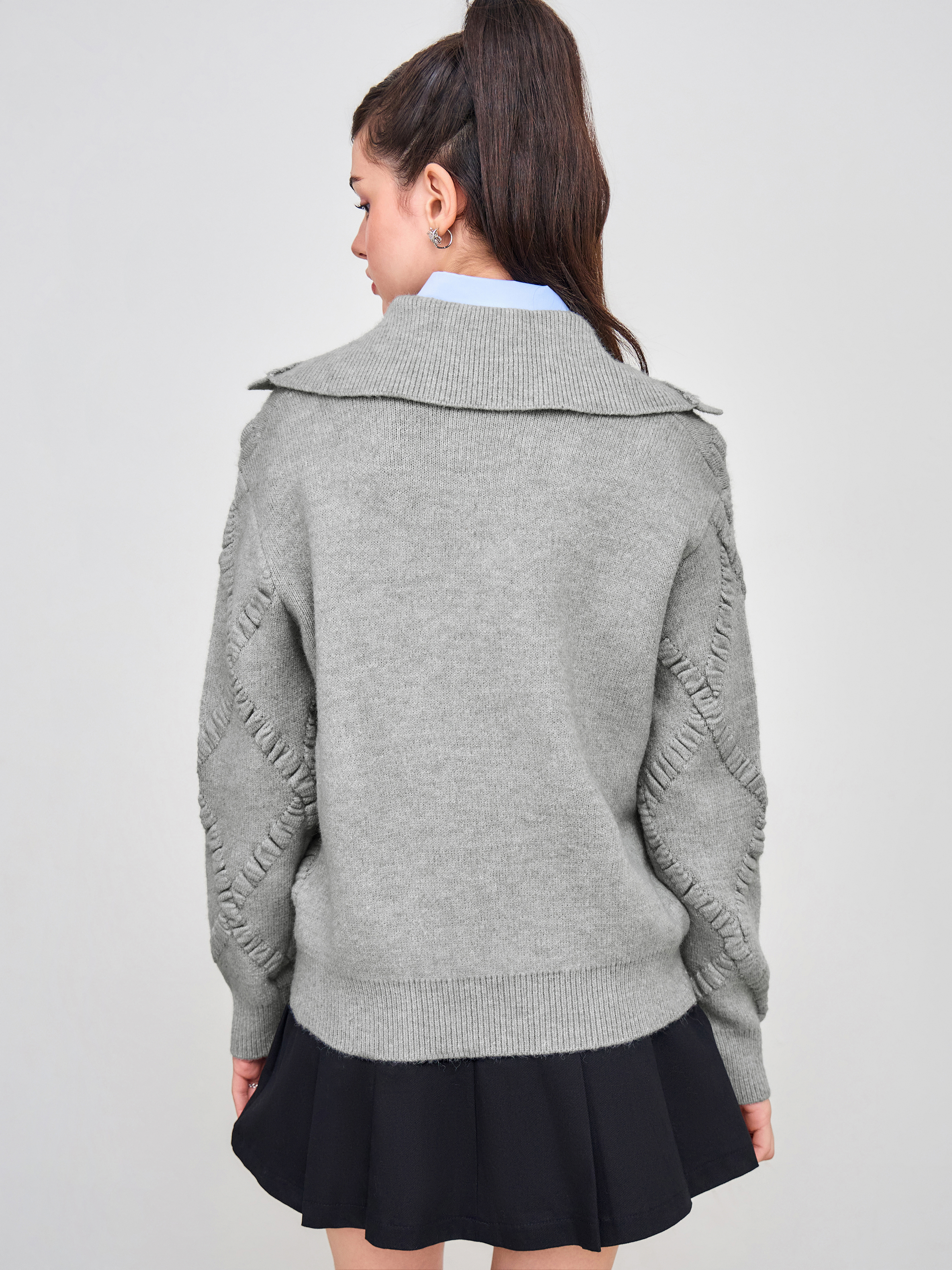 Maglione oversize con colletto polo lavorato a maglia e motivo a rombi