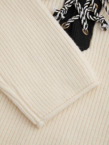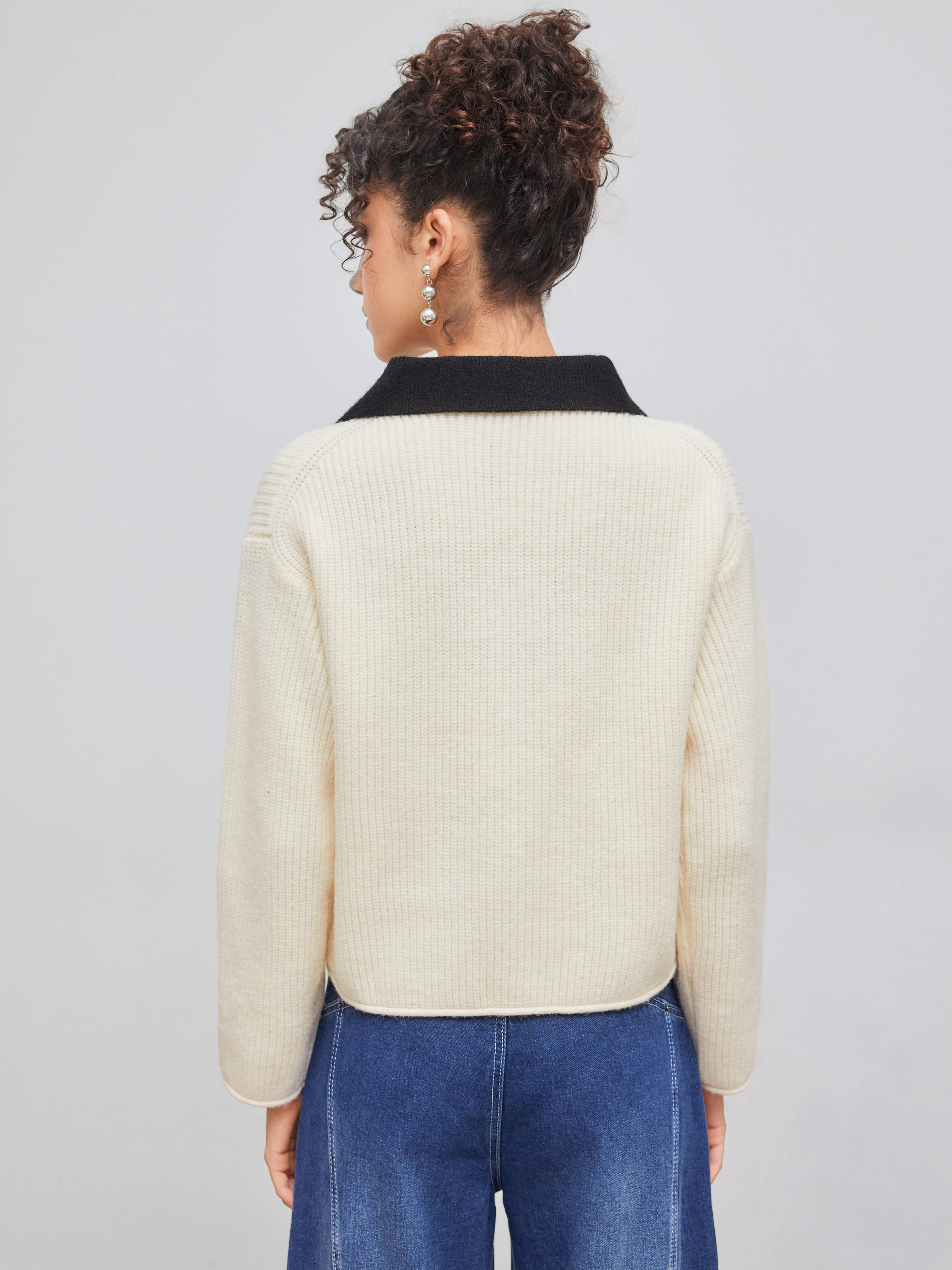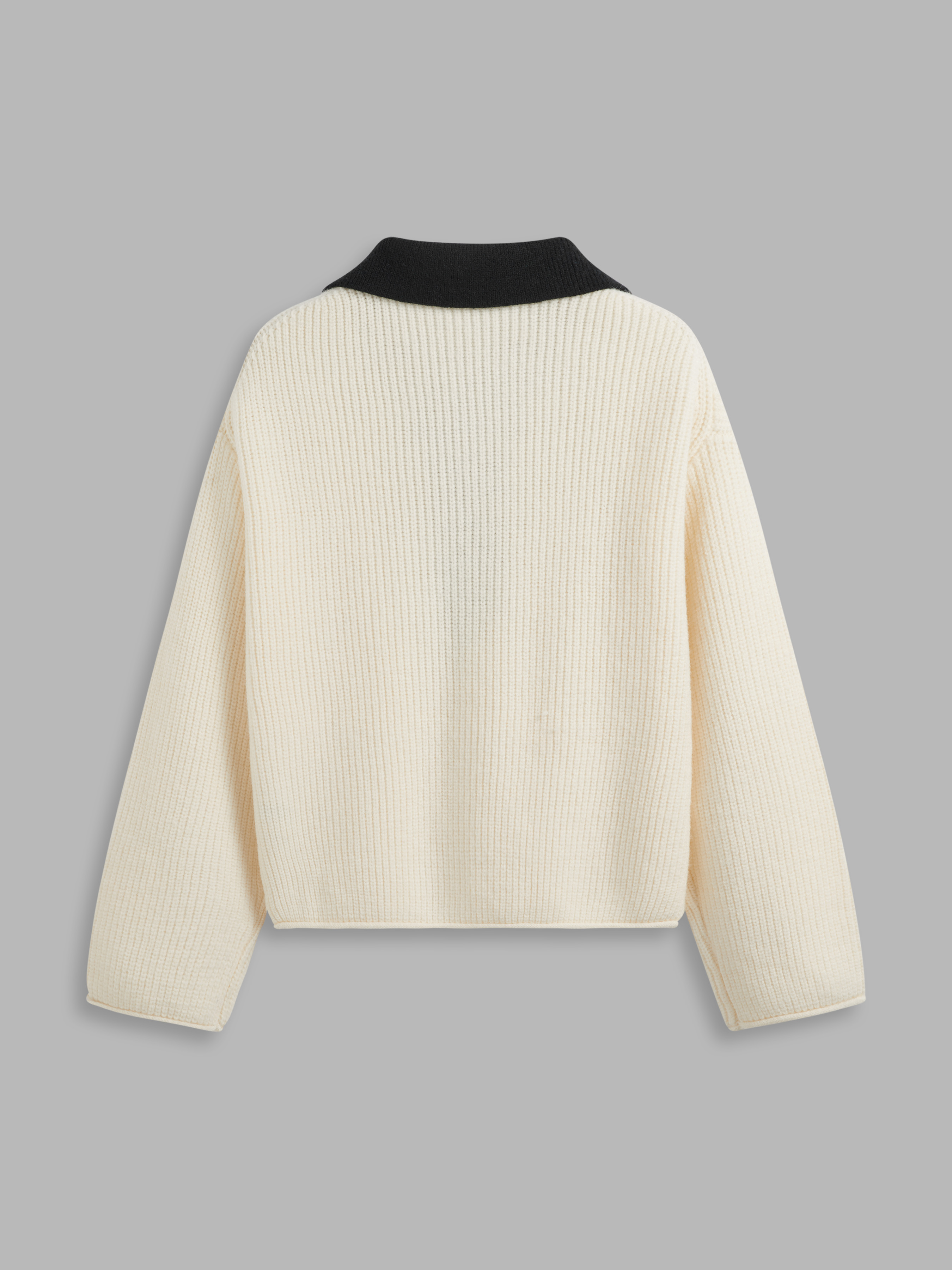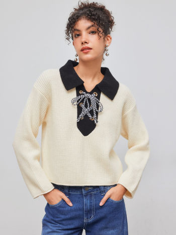 Top a maniche lunghe in maglia con colletto solido e pizzo