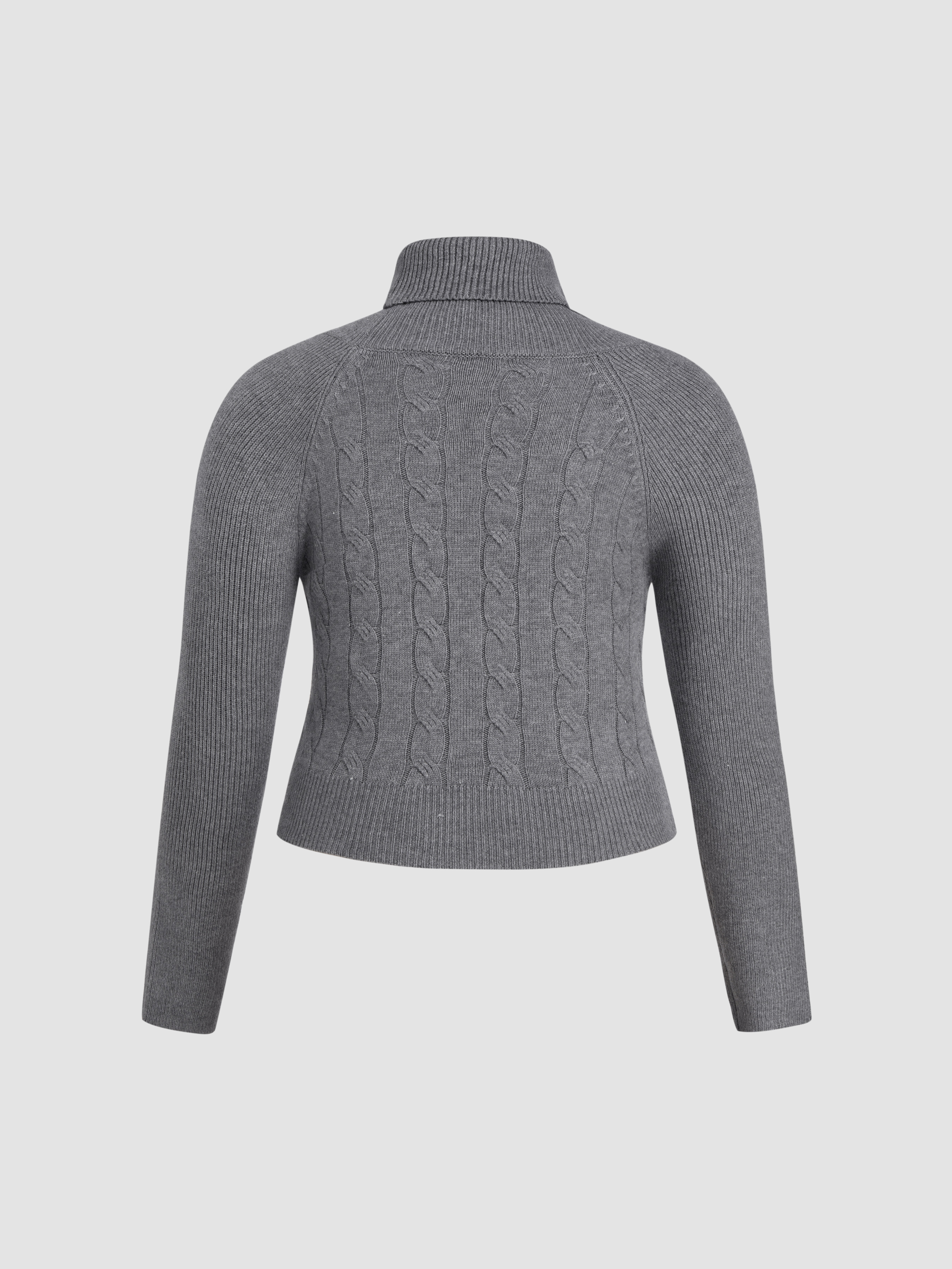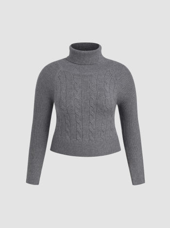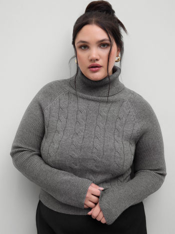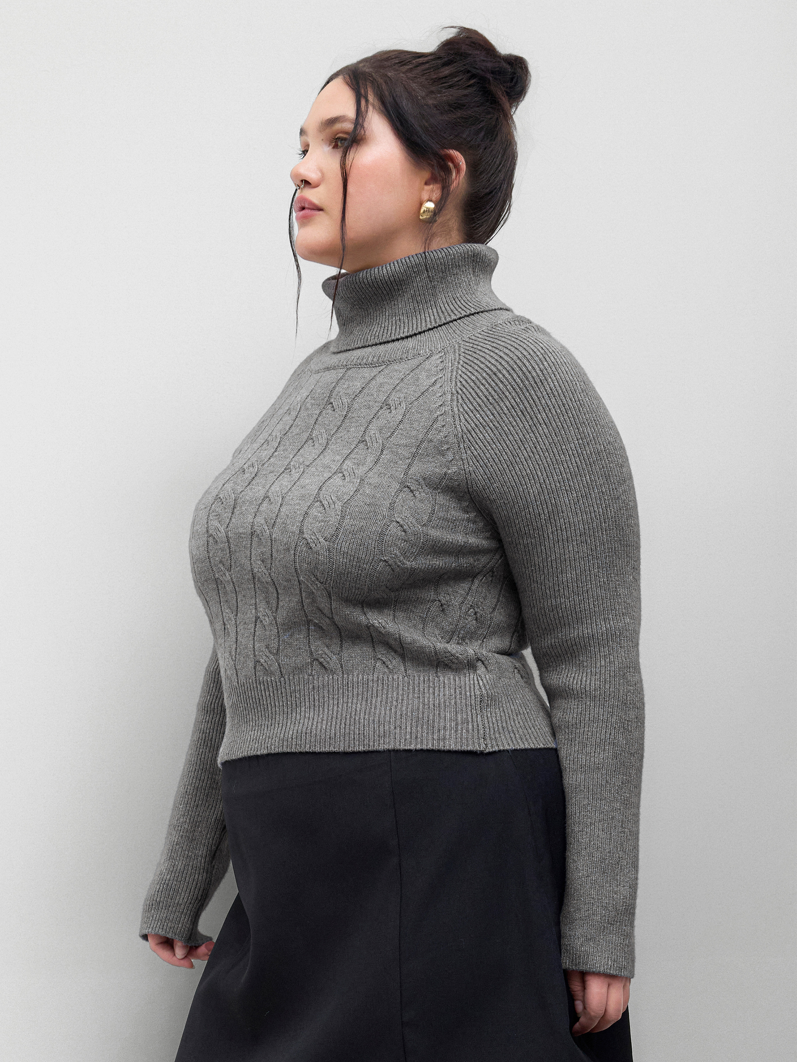 Top a maniche lunghe in maglia a cavo Curve & Plus con collo alto