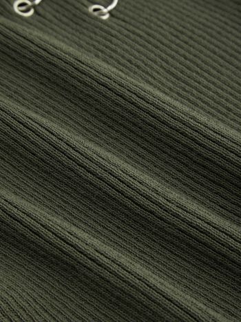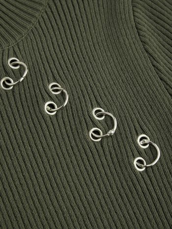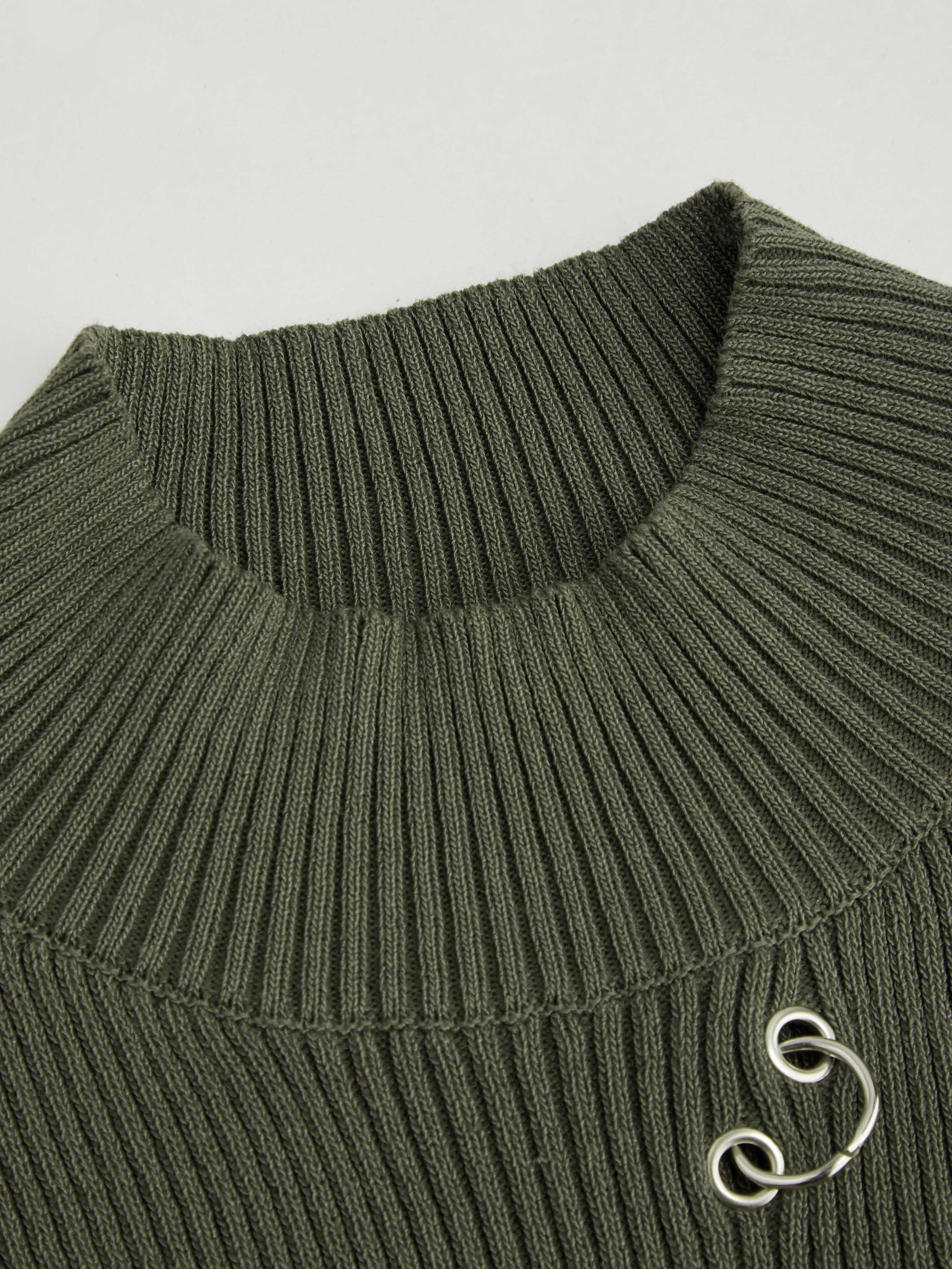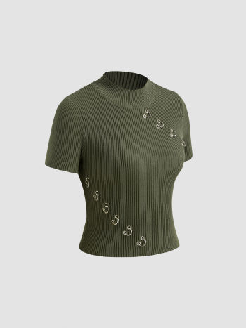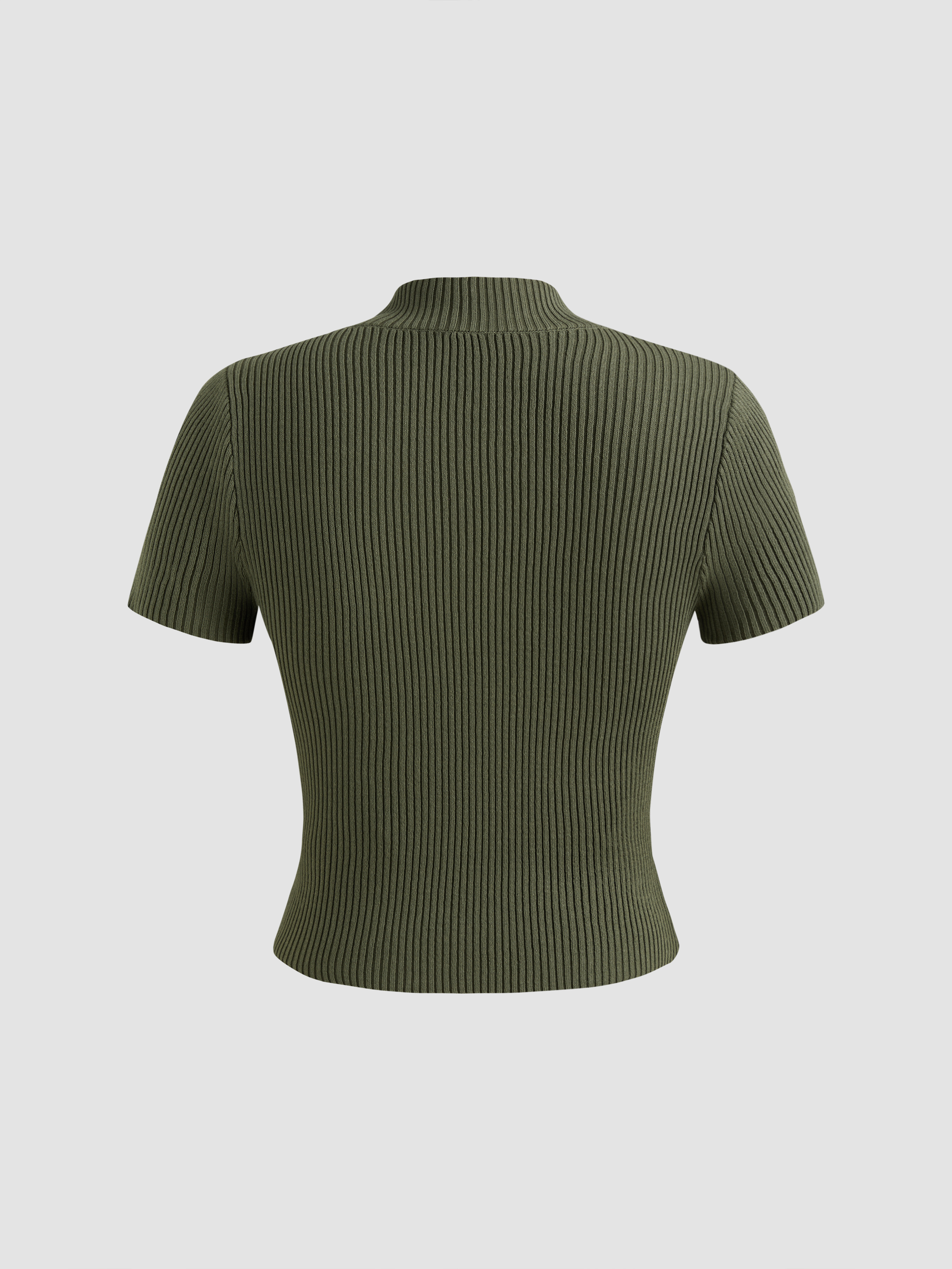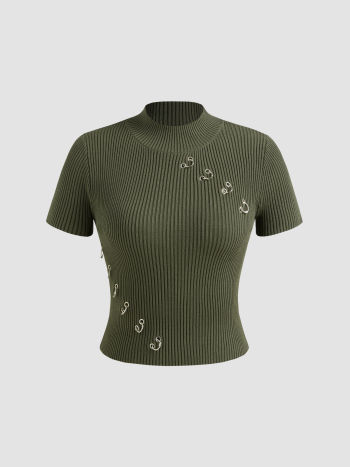 Top a manica corta a collo alto in maglia solida con dettaglio traforato