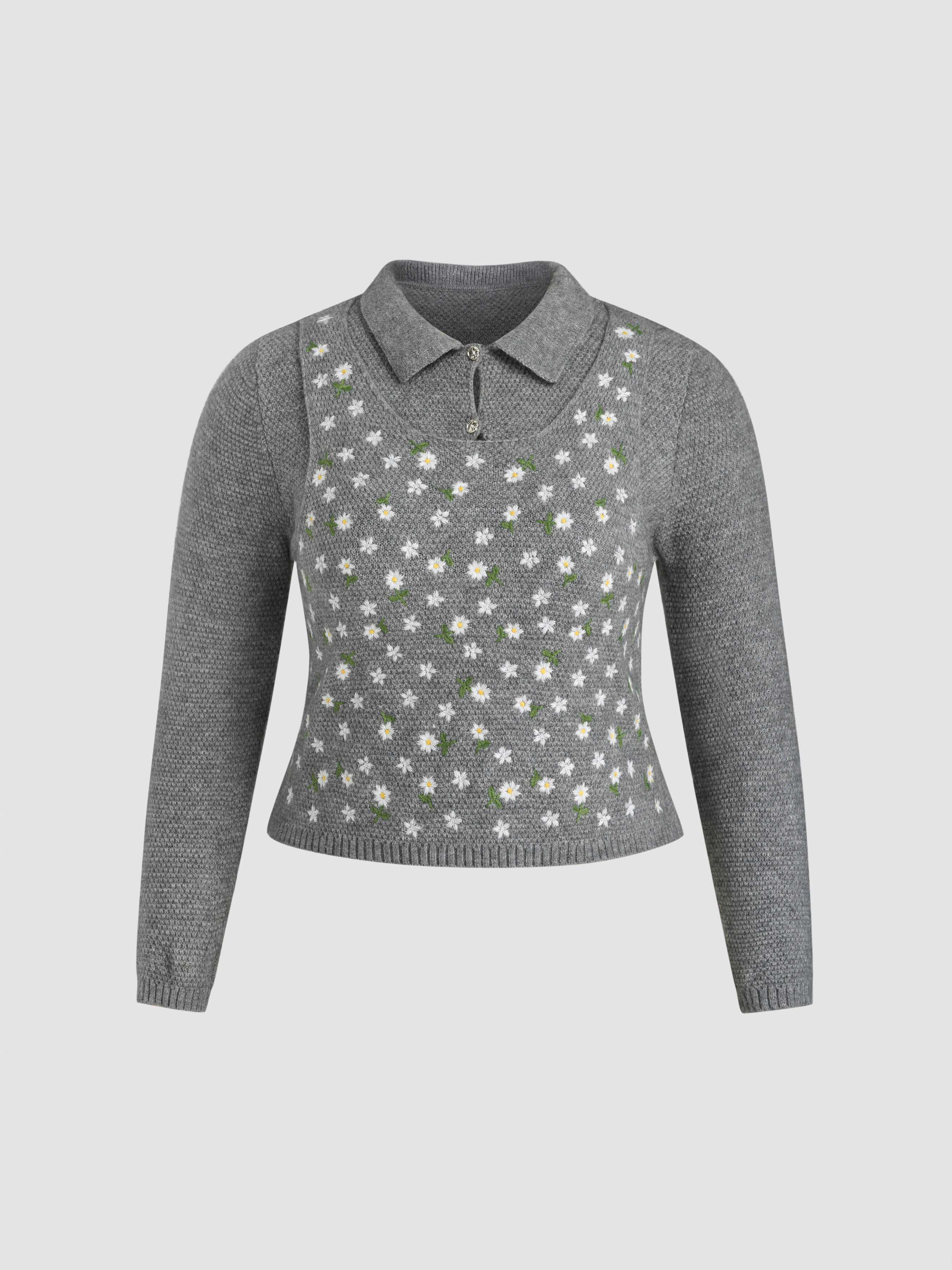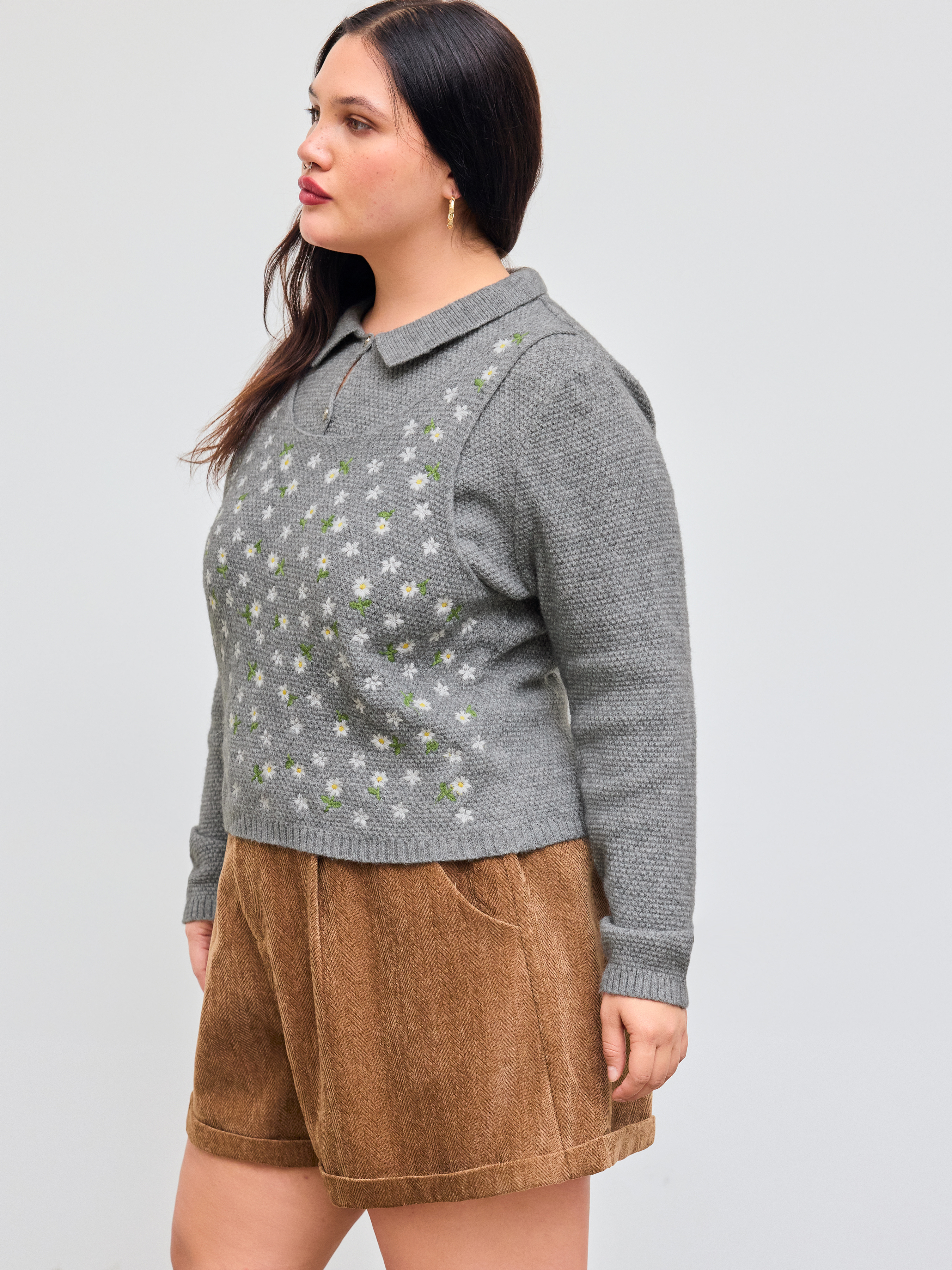 Top a maniche lunghe in maglia Polo floreale Curve & Plus