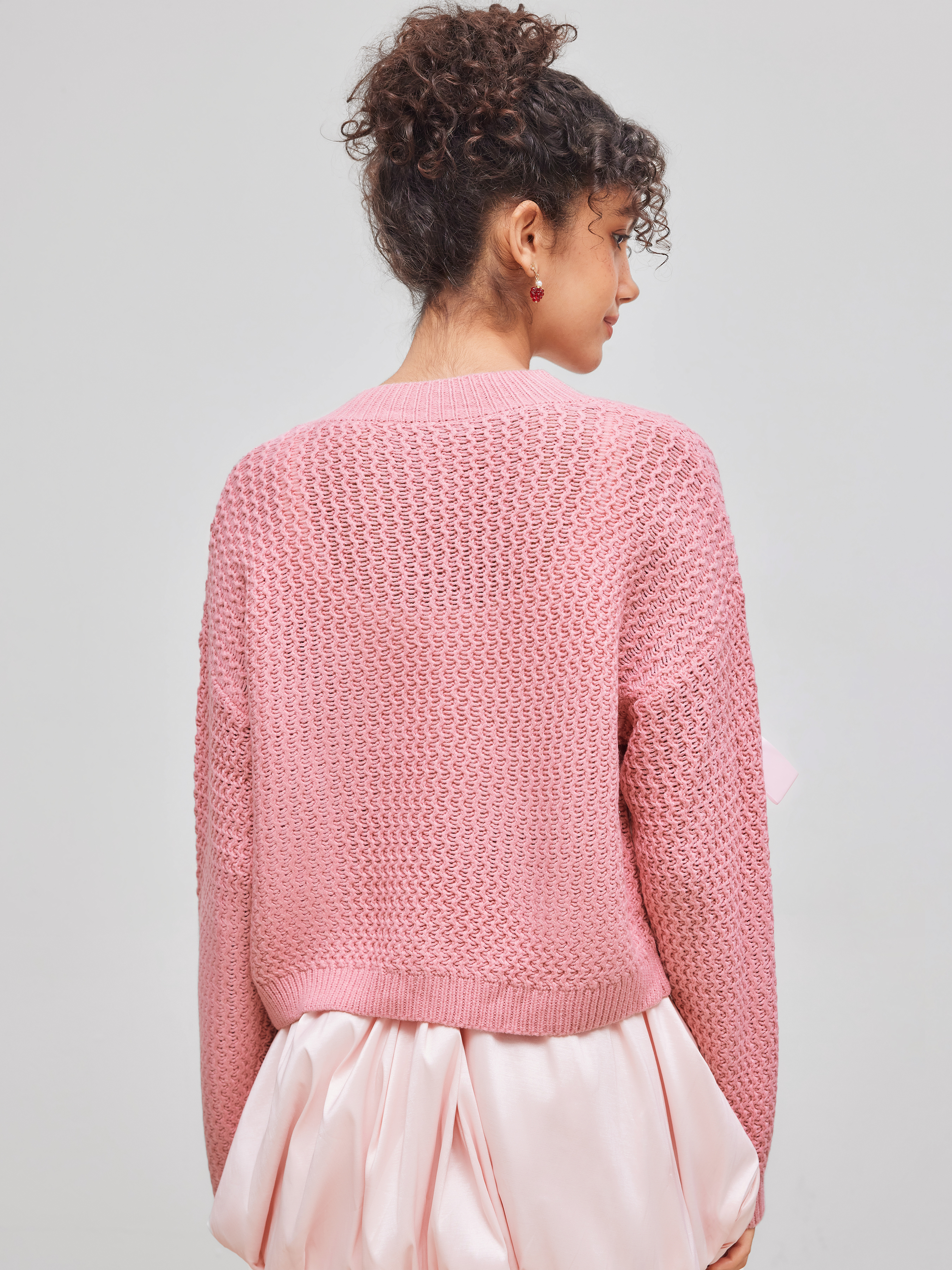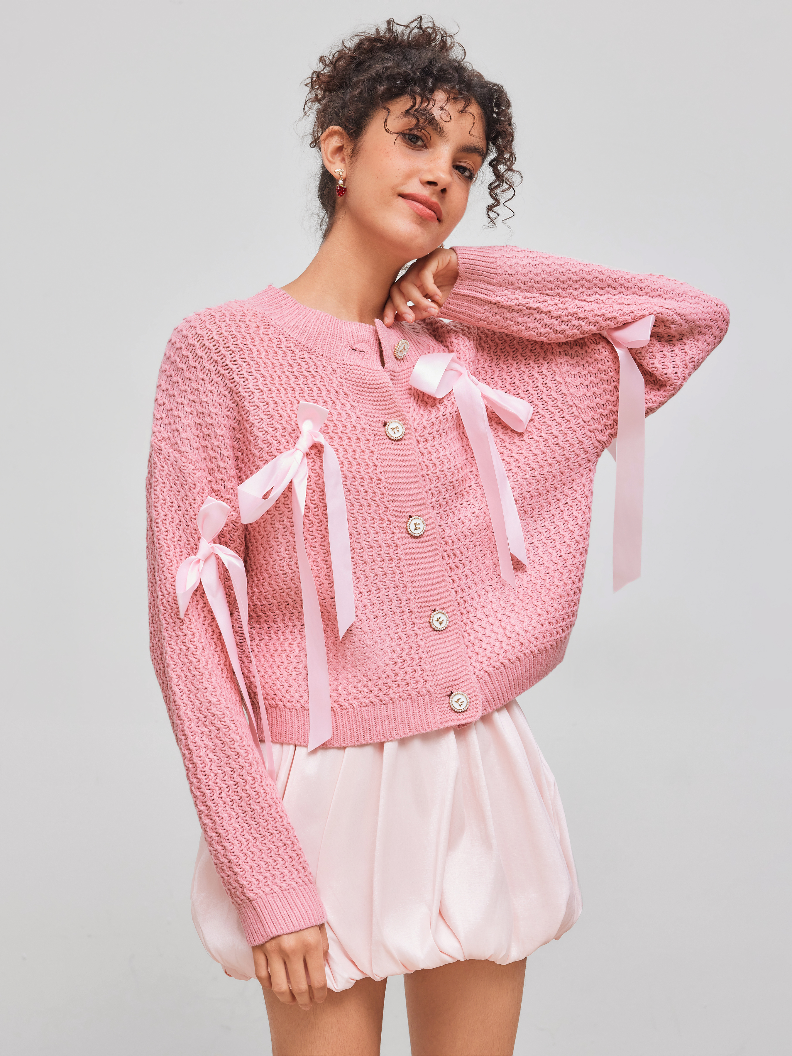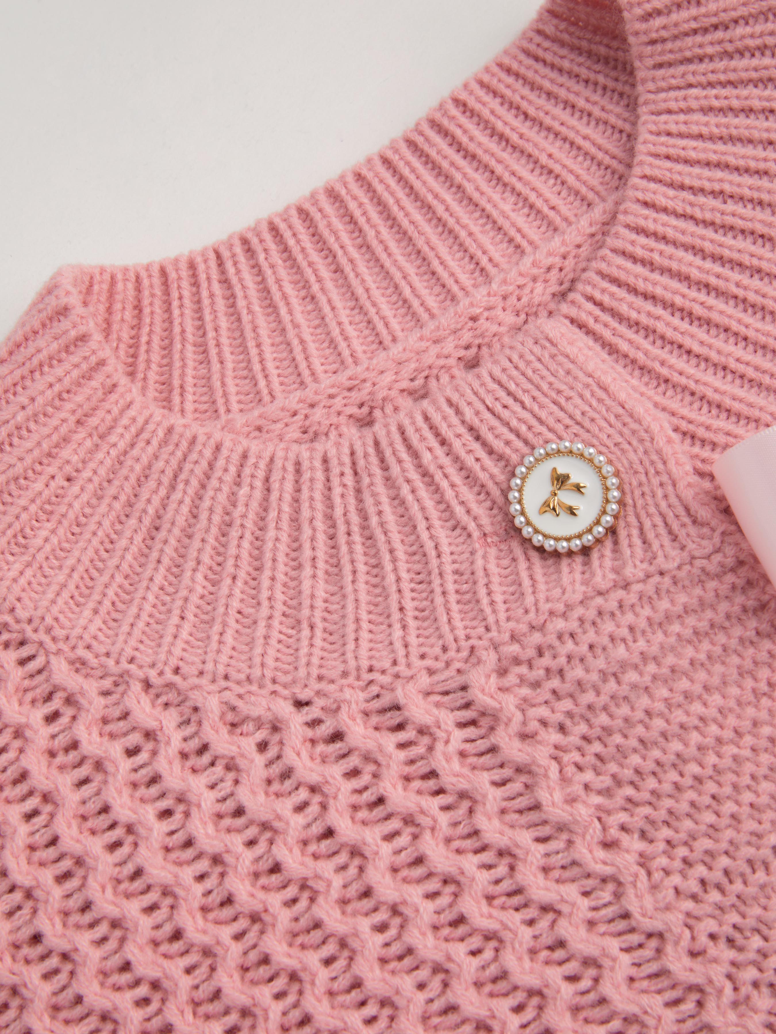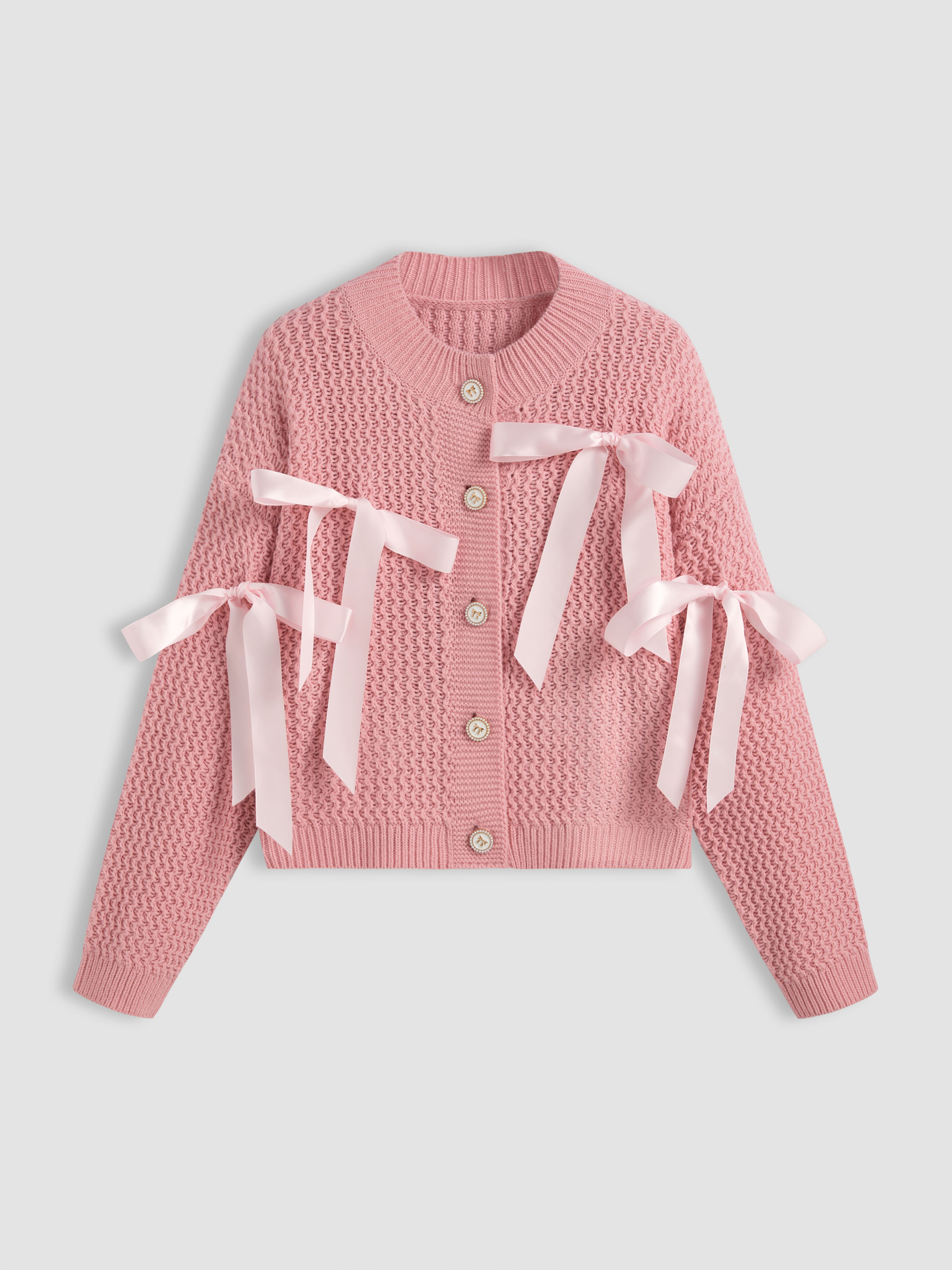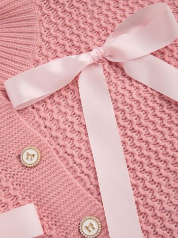 Cardigan a maglia con scollo rotondo e bottoni a fiocco