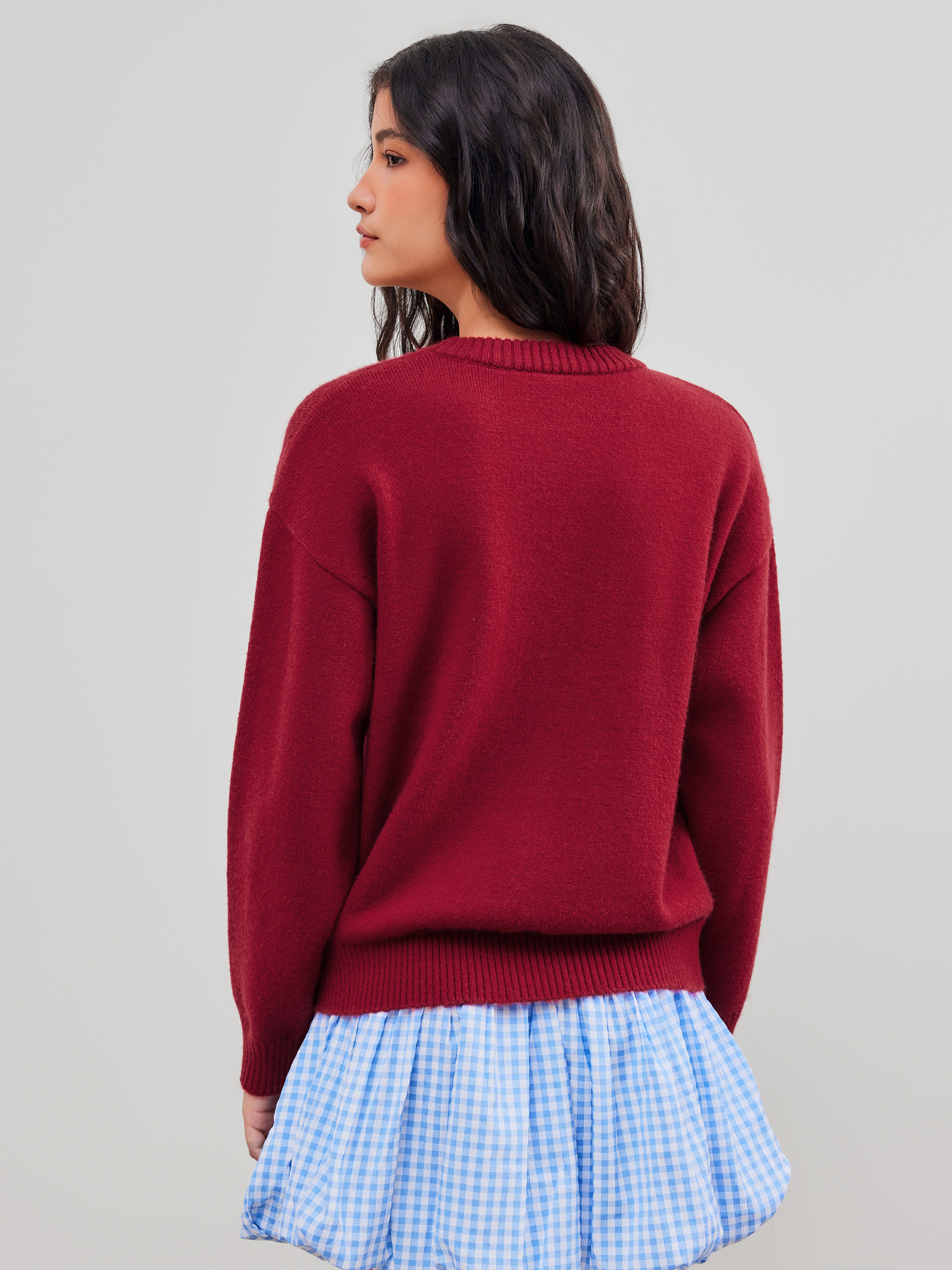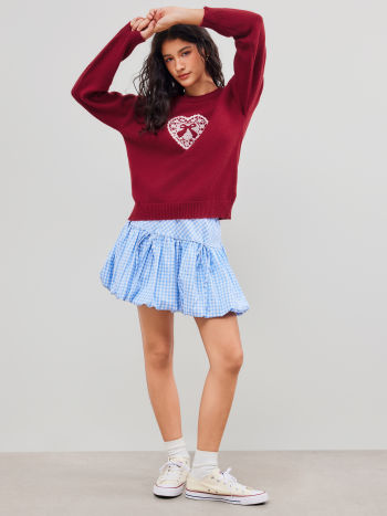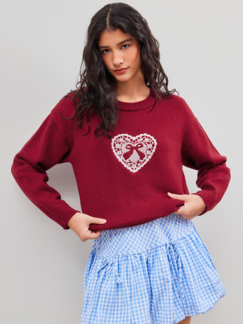 Maglione grafico a maglia con scollo rotondo e fiocco a cuore