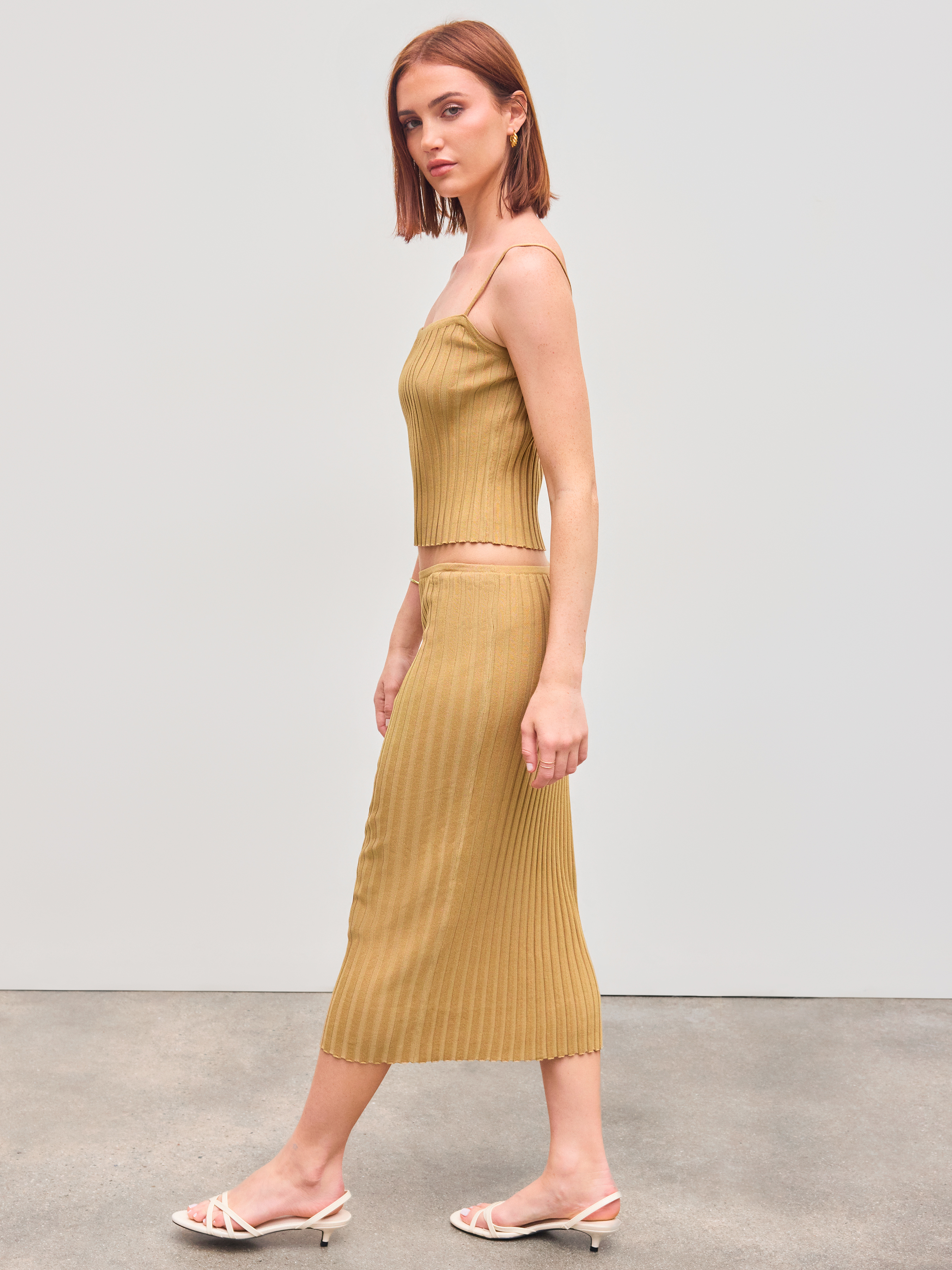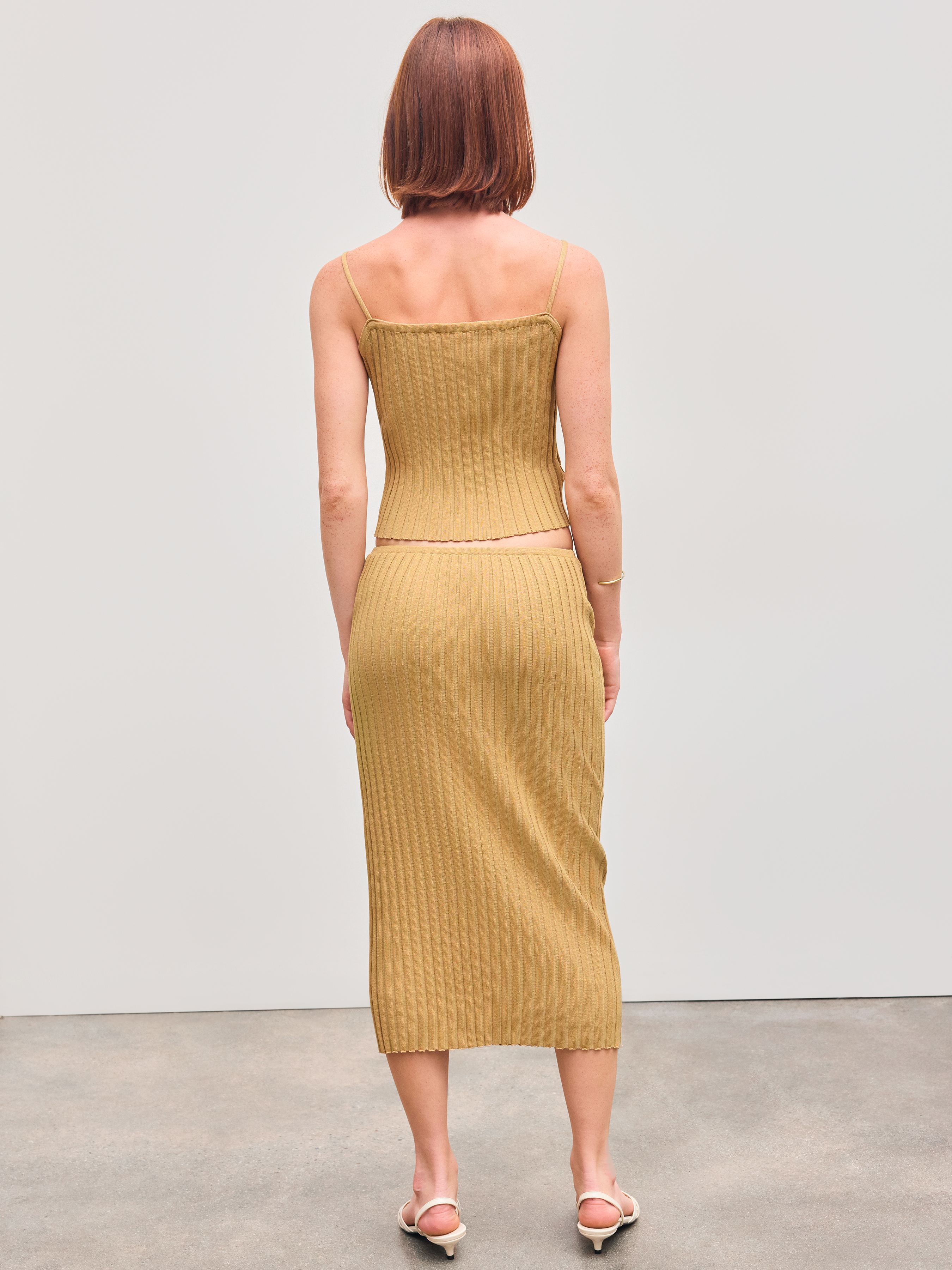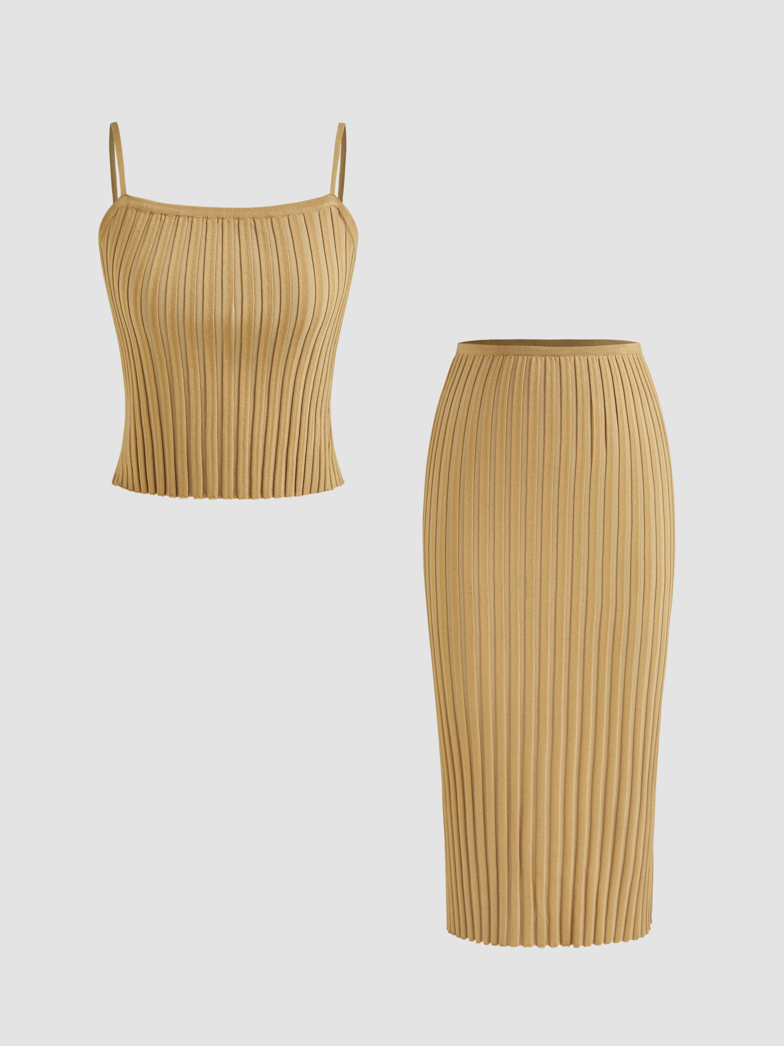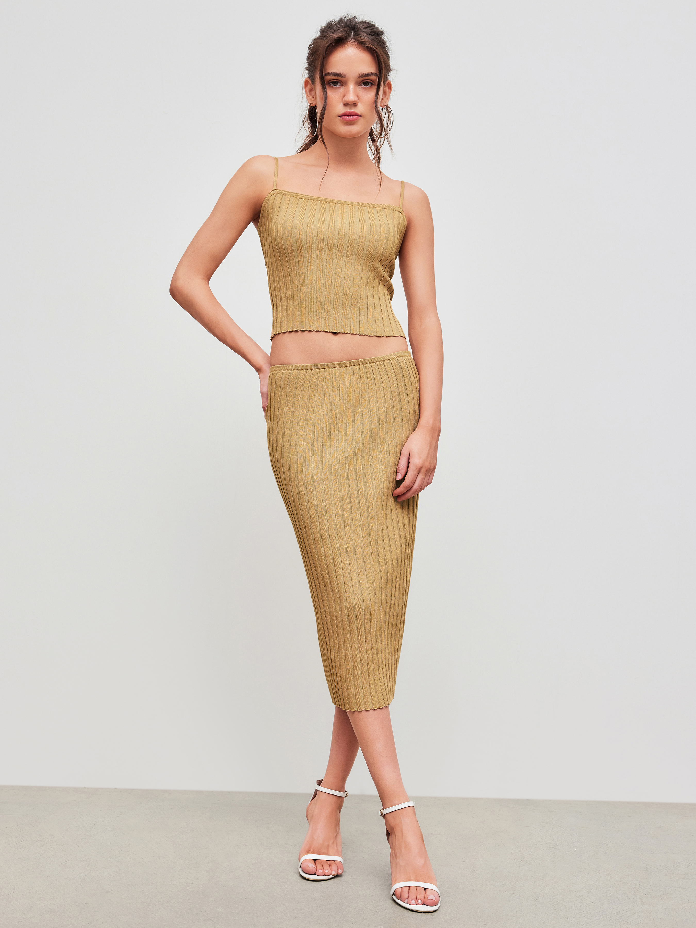 Top cami solido a collo quadrato in maglia con gonna midi solida a mezza vita in maglia