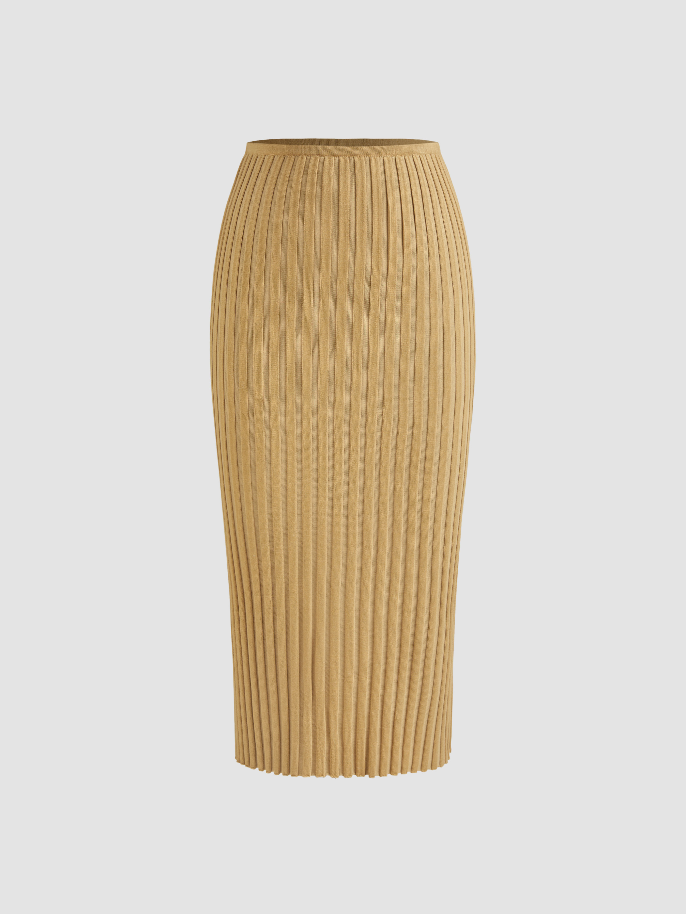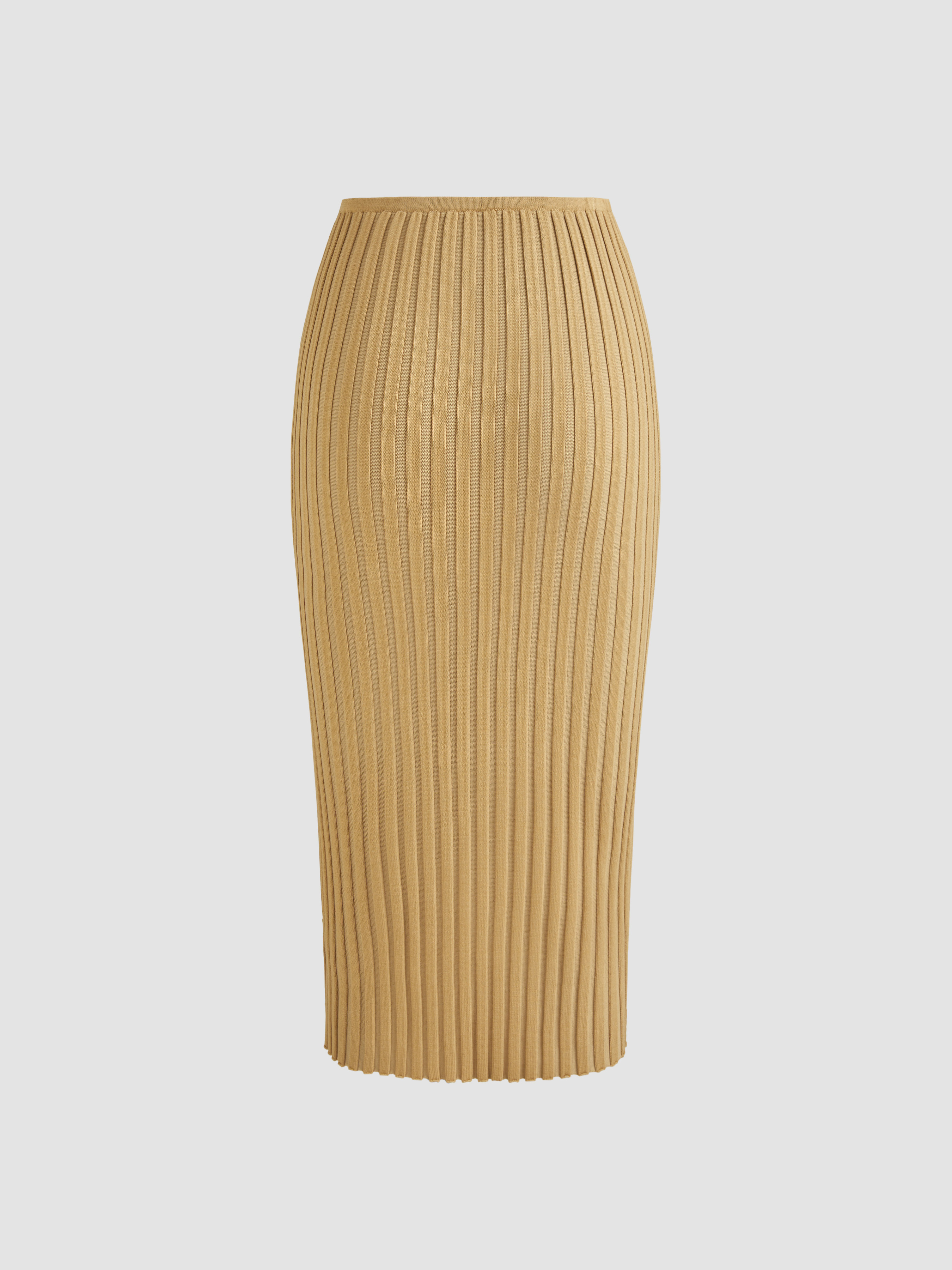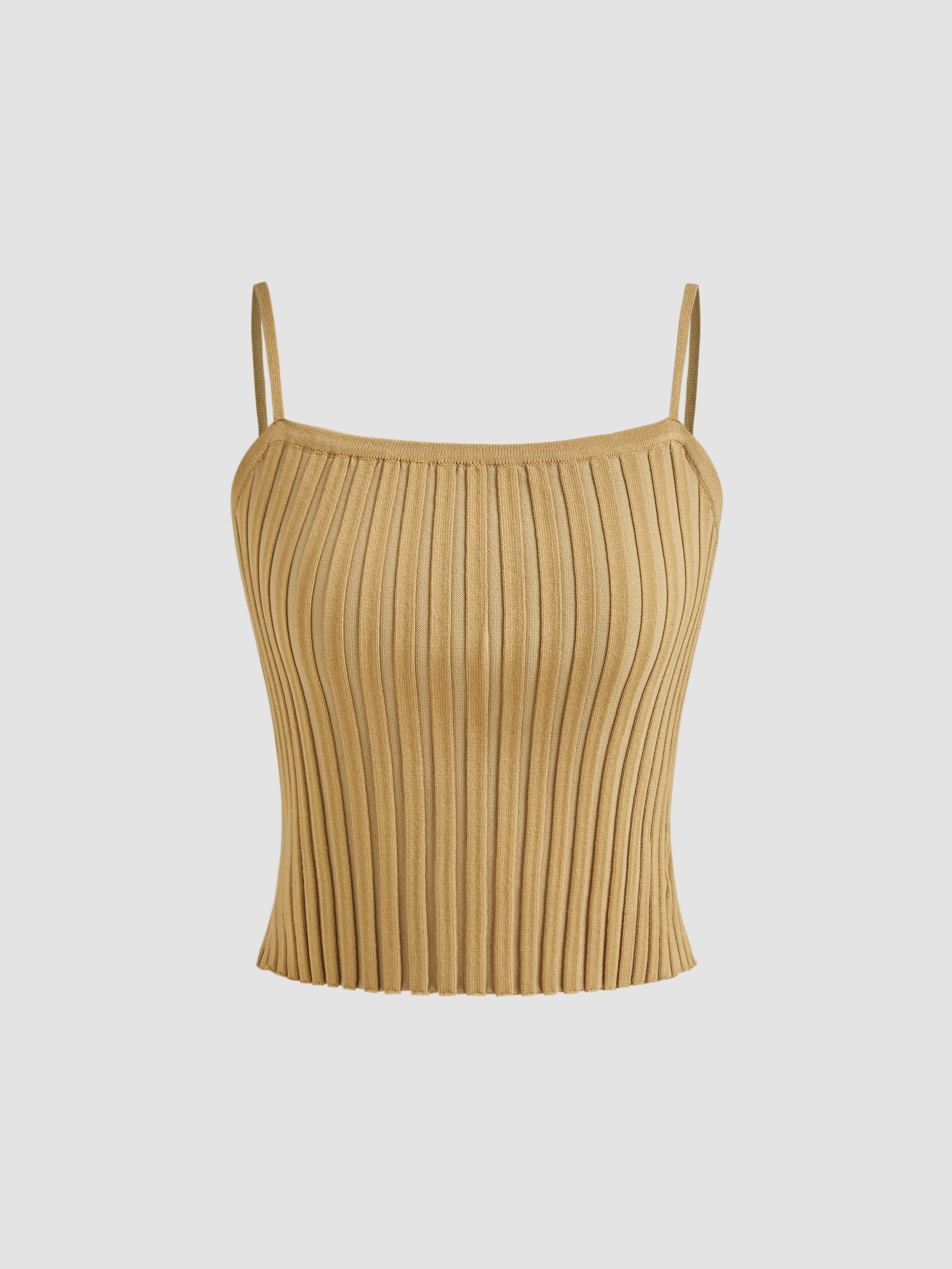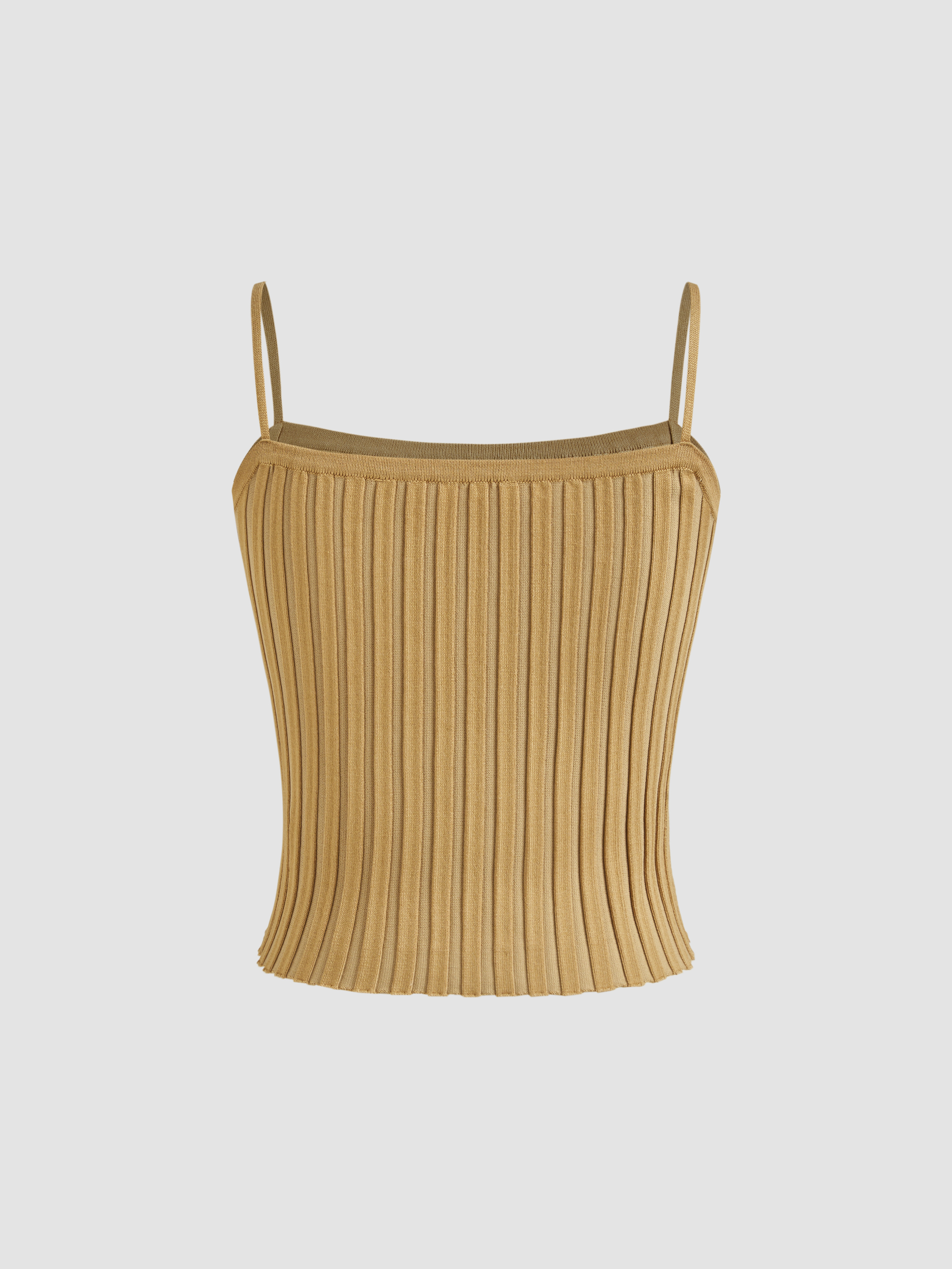 Top cami solido a collo quadrato in maglia con gonna midi solida a mezza vita in maglia