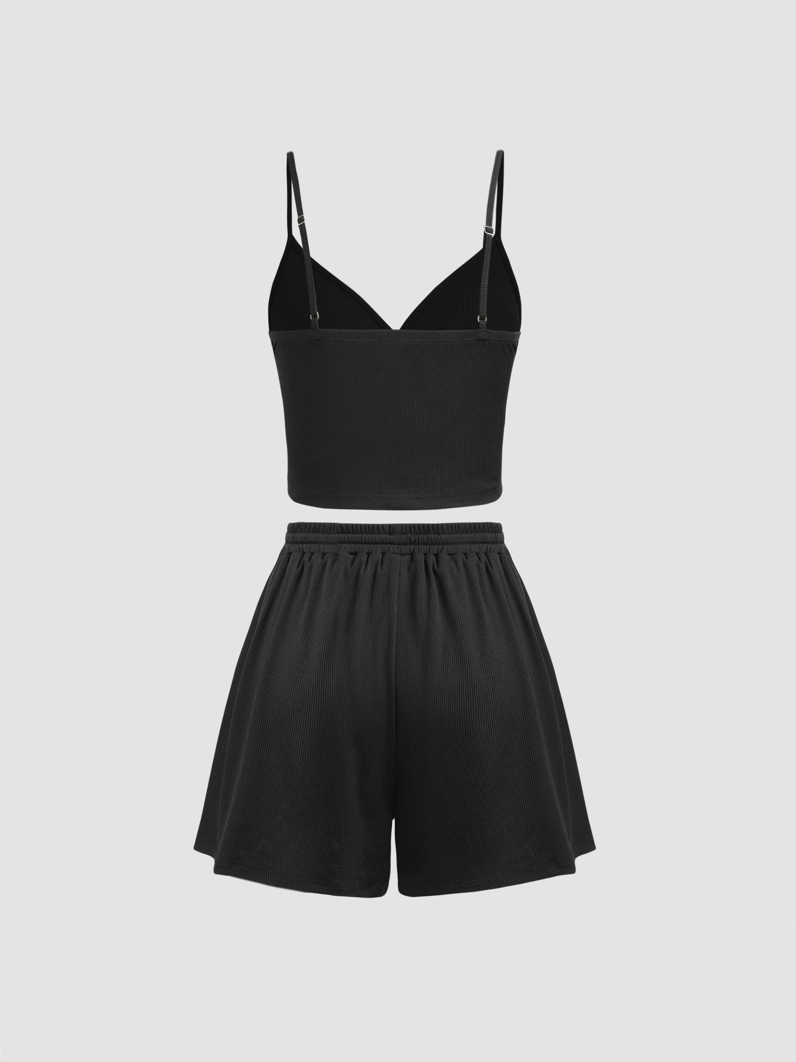 Top corto in maglia con scollo a V e pantaloncini annodati