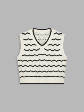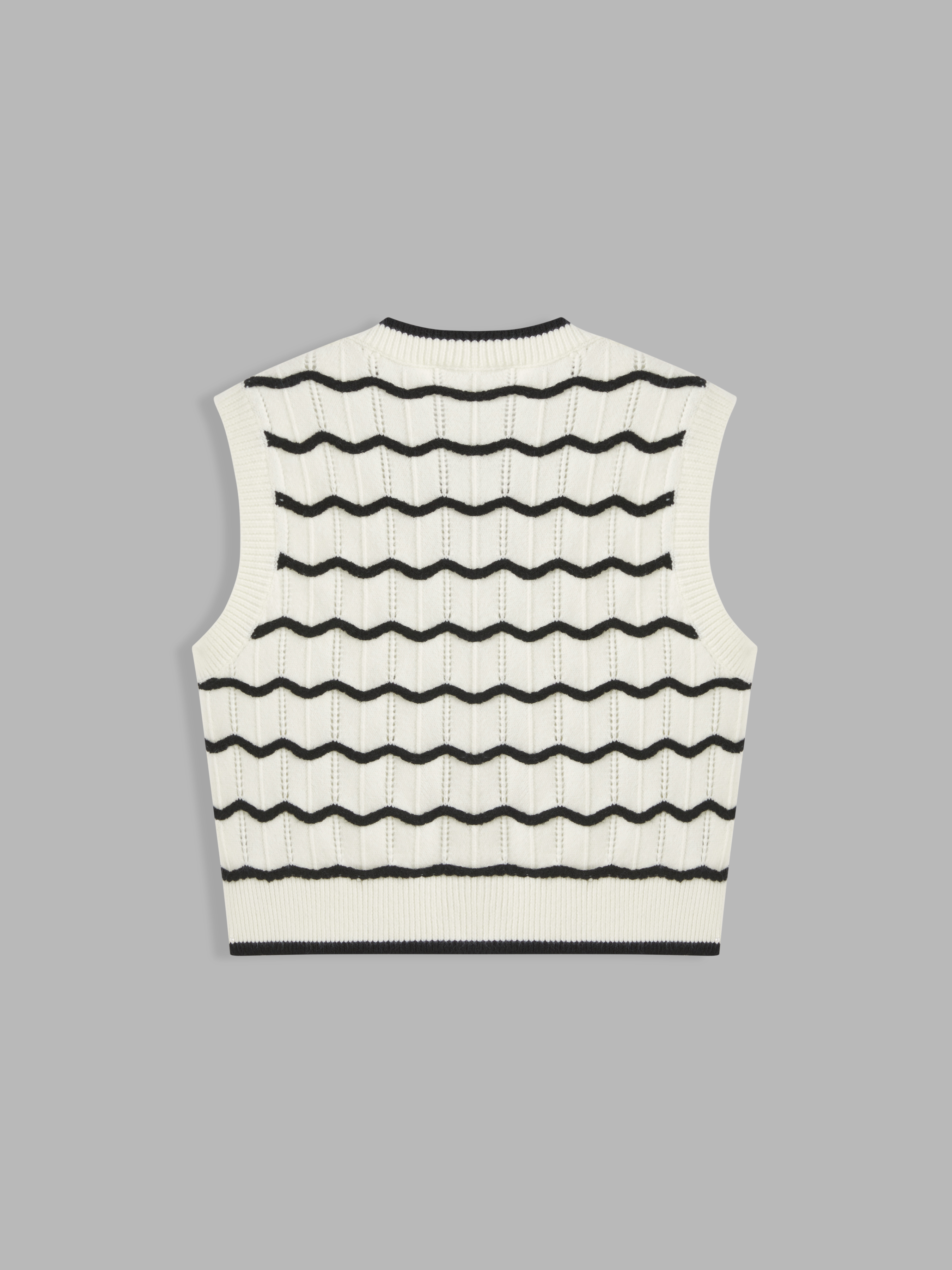 Gilet in maglia con scollo a V e bordatura a righe a contrasto