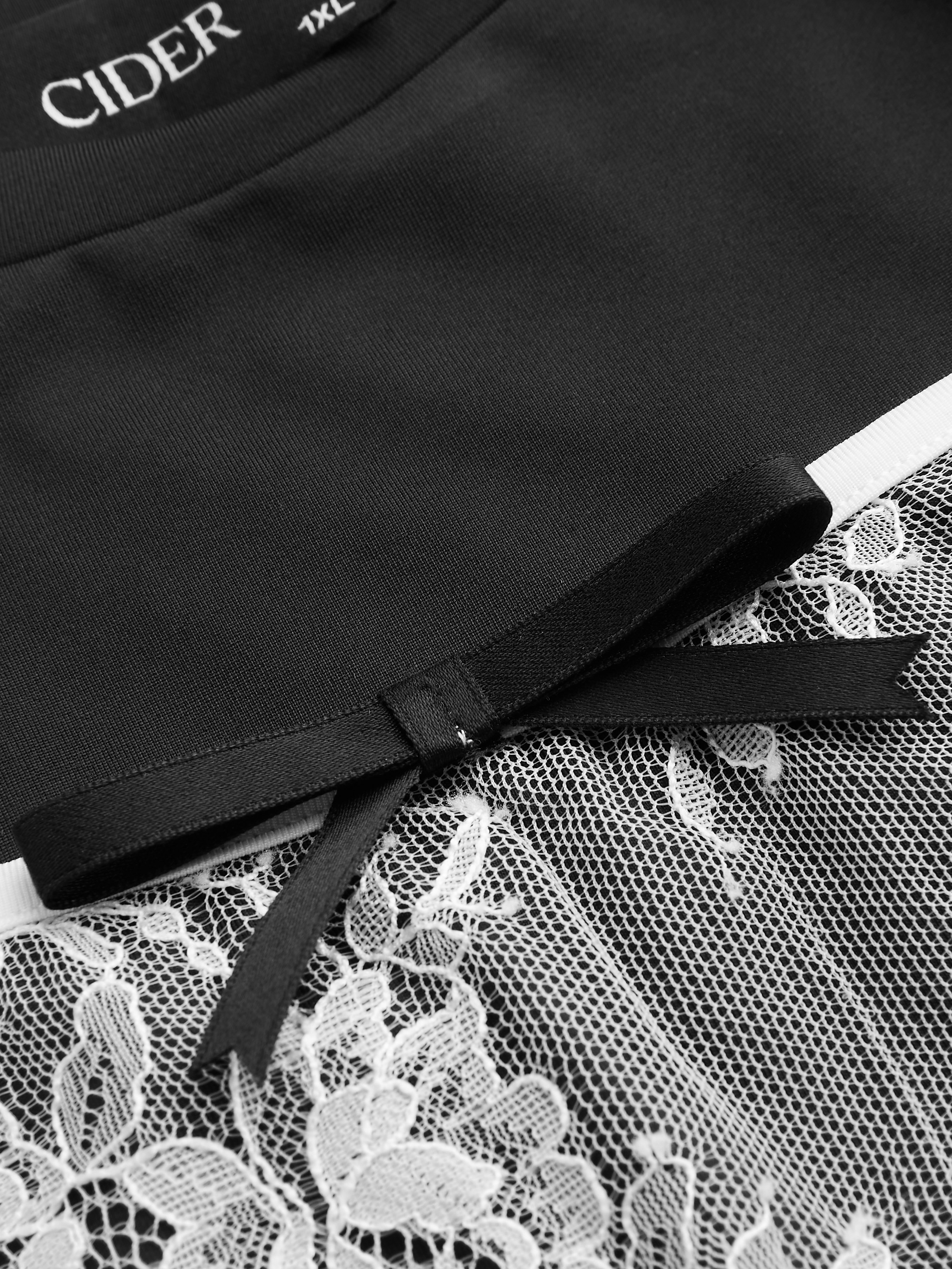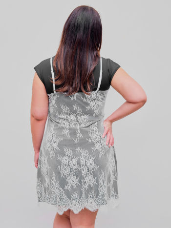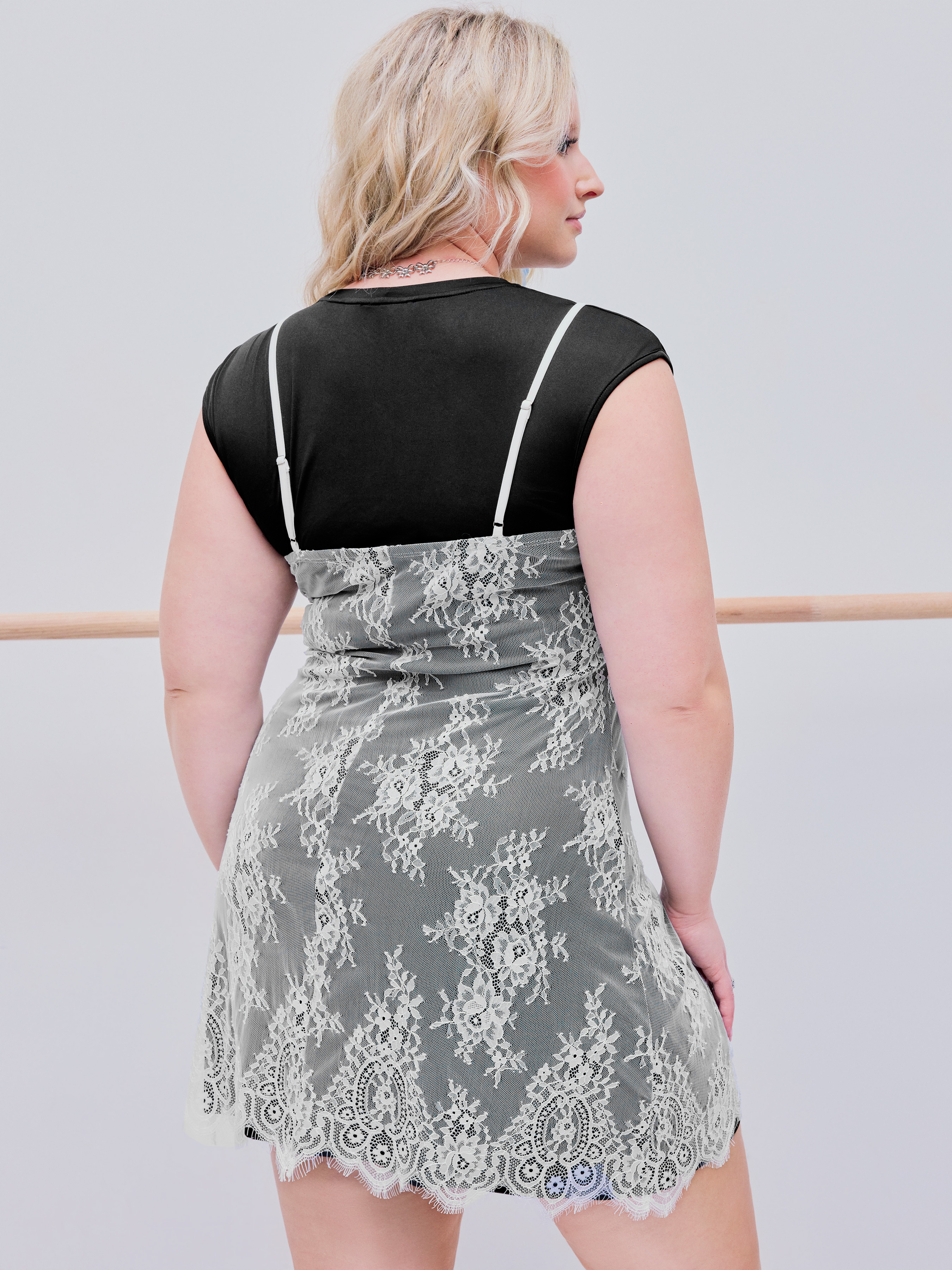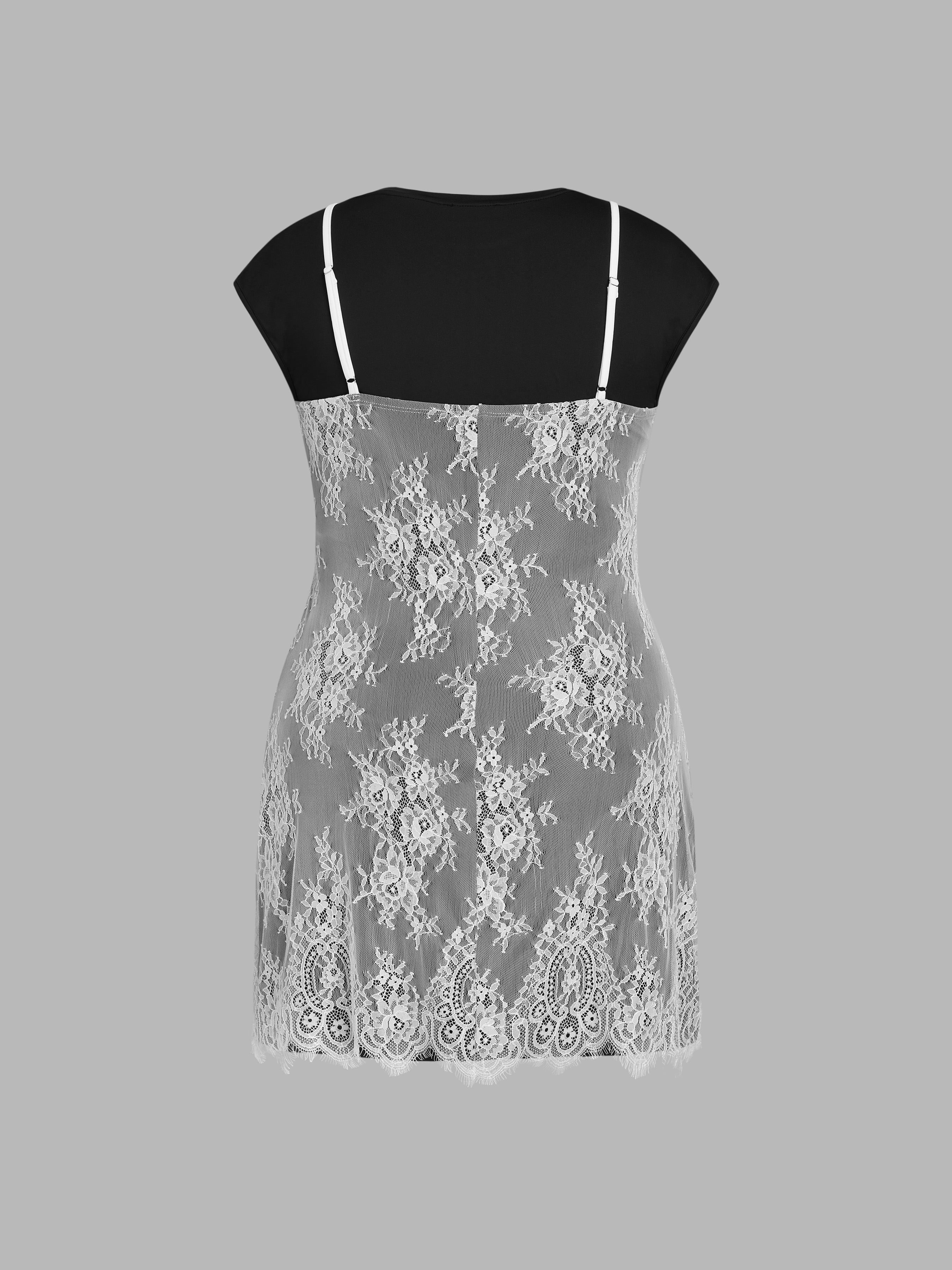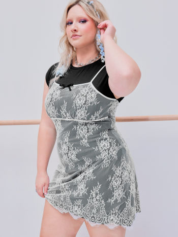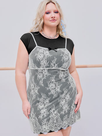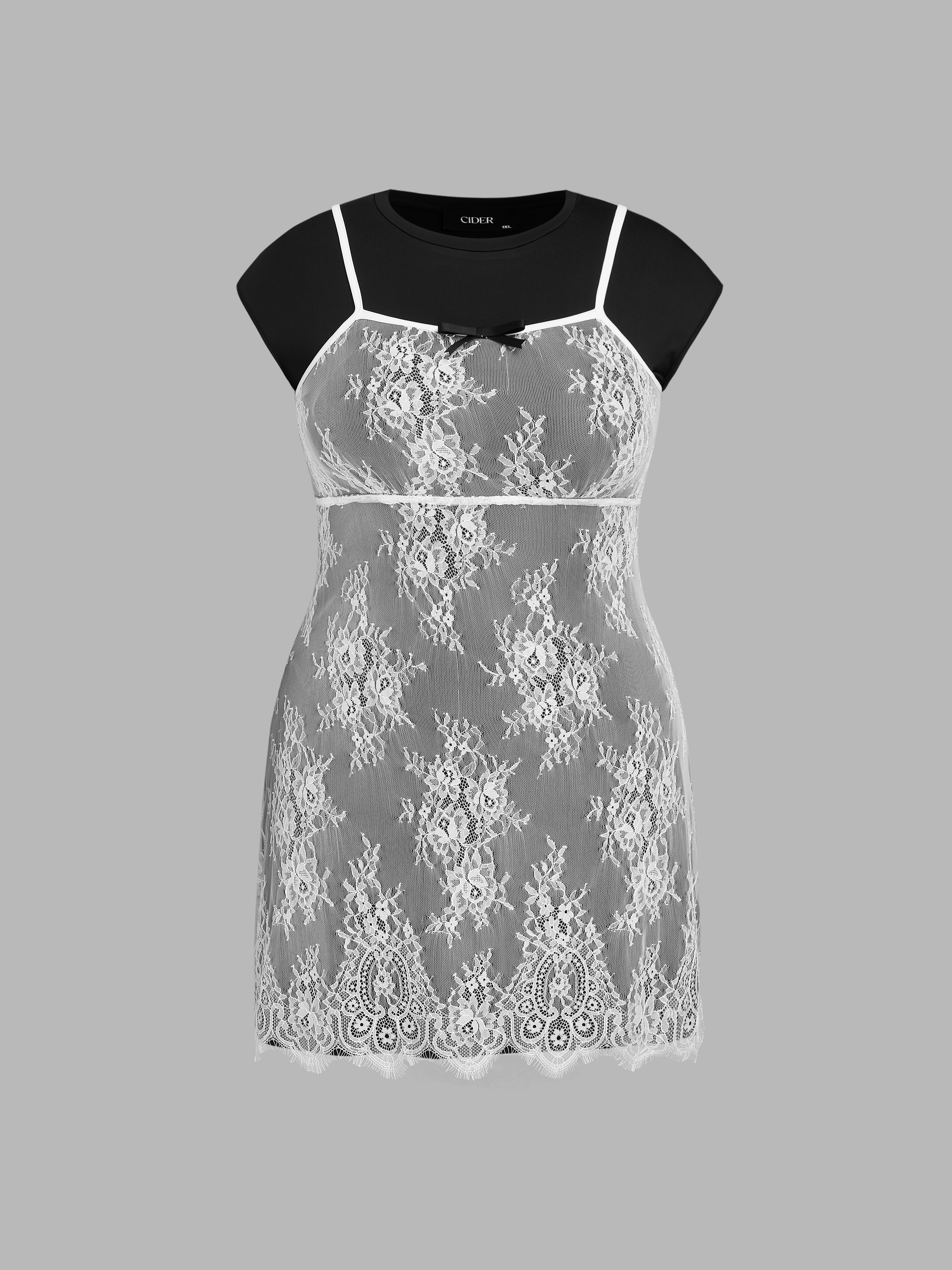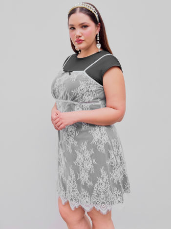 Mini abito in pizzo patchy con fiocco floreale Curve & Plus
