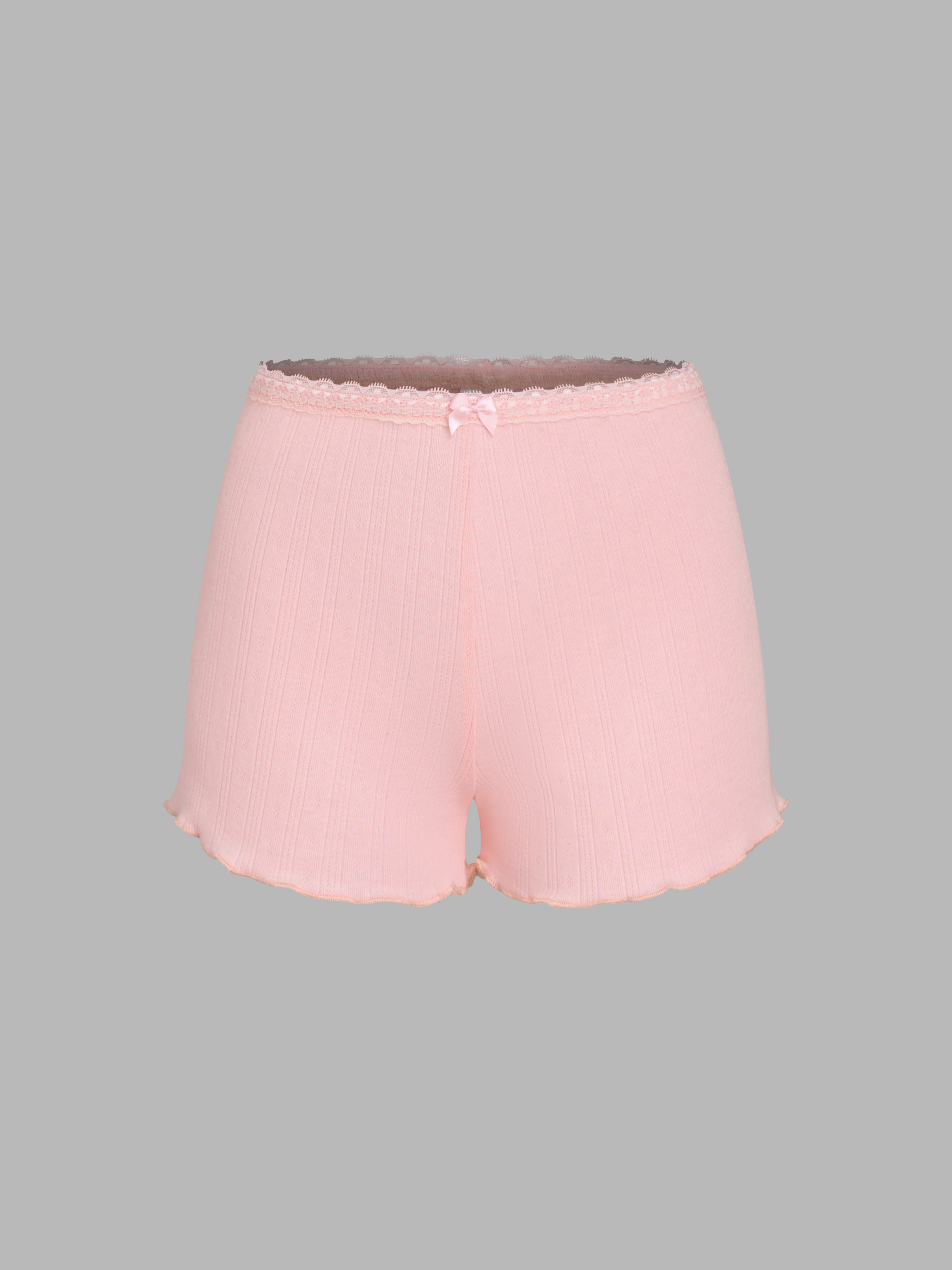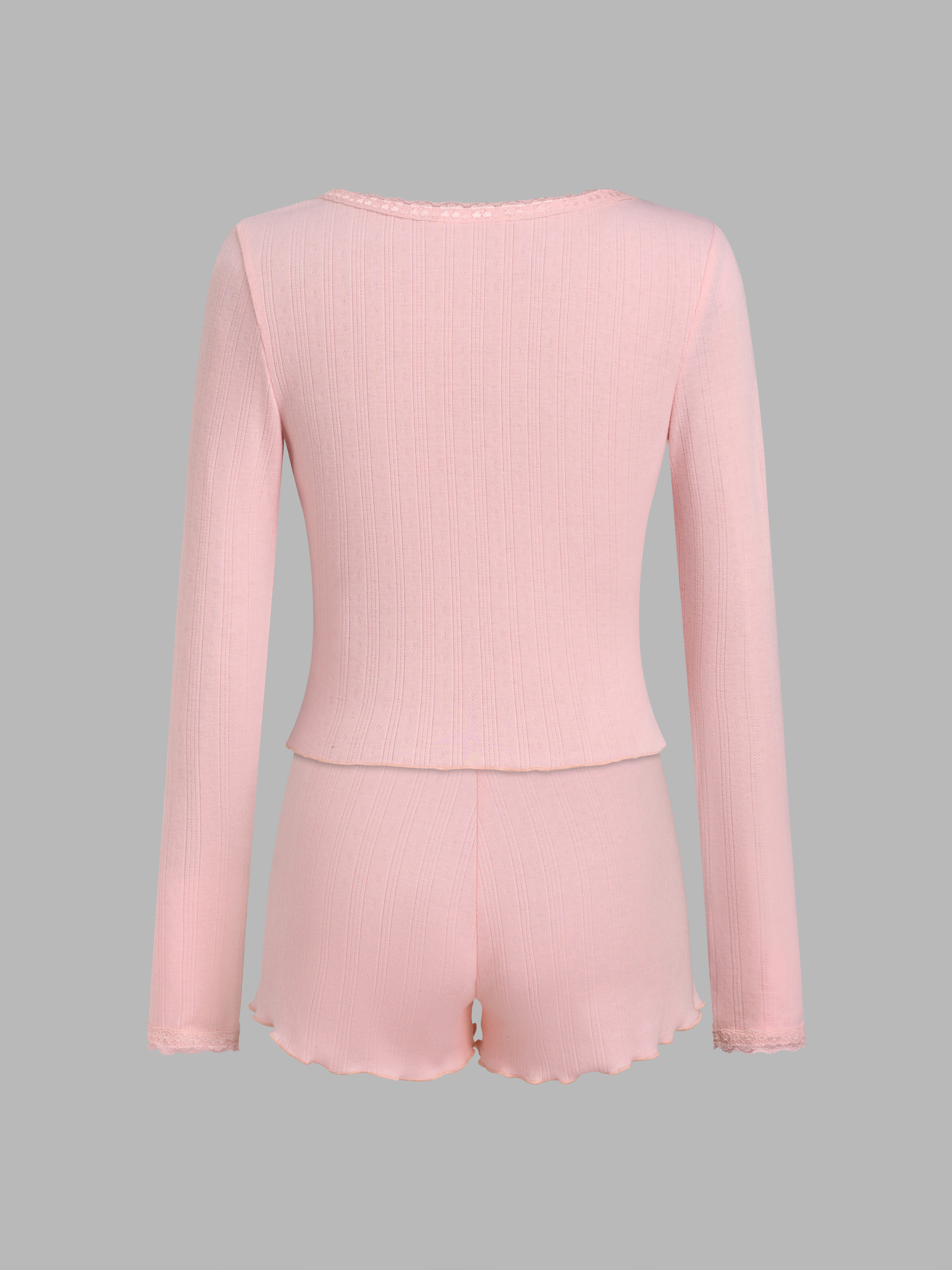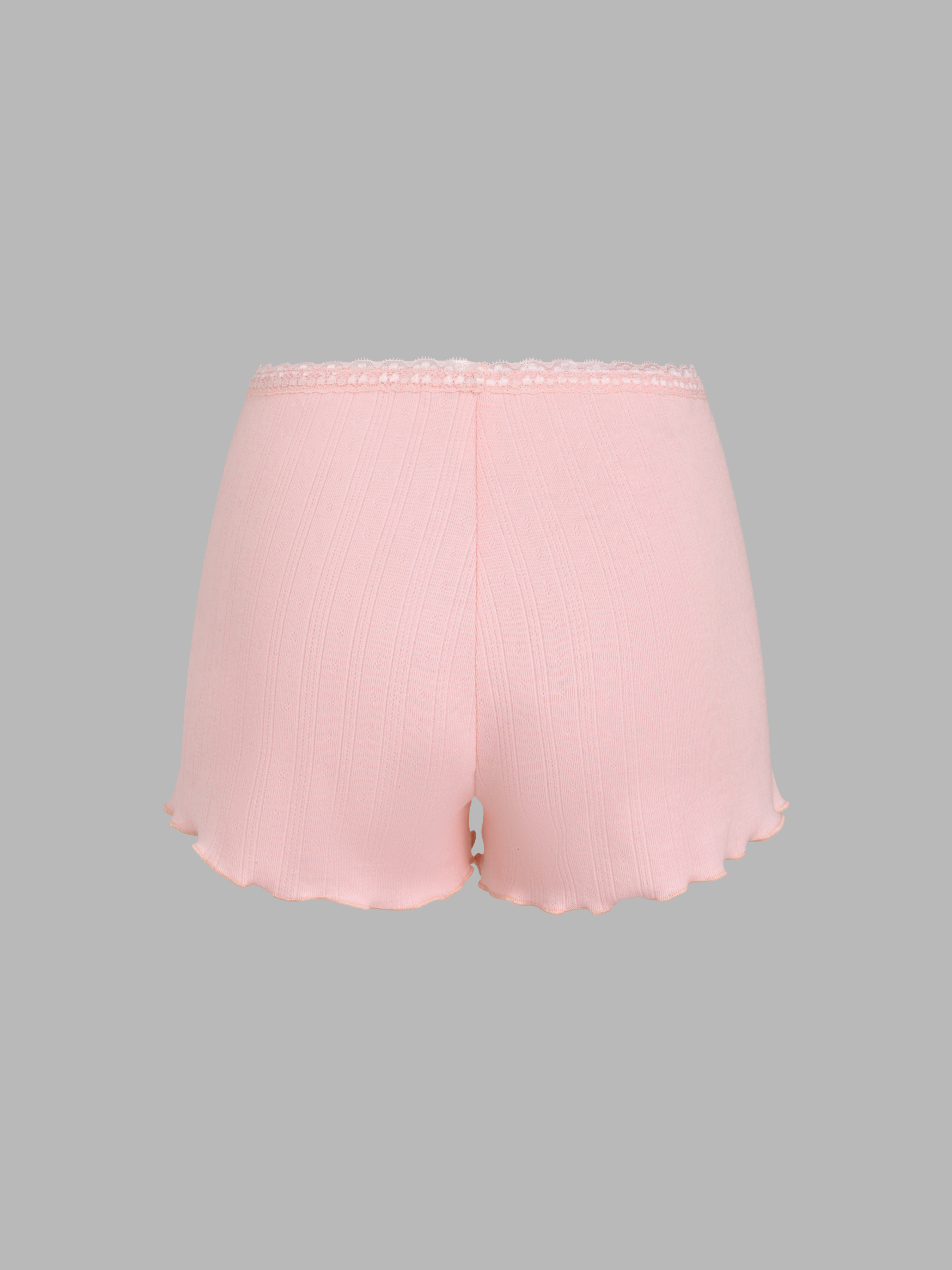 Top cami cropped con bordi in pizzo, coprispalle e pantaloncini a vita media