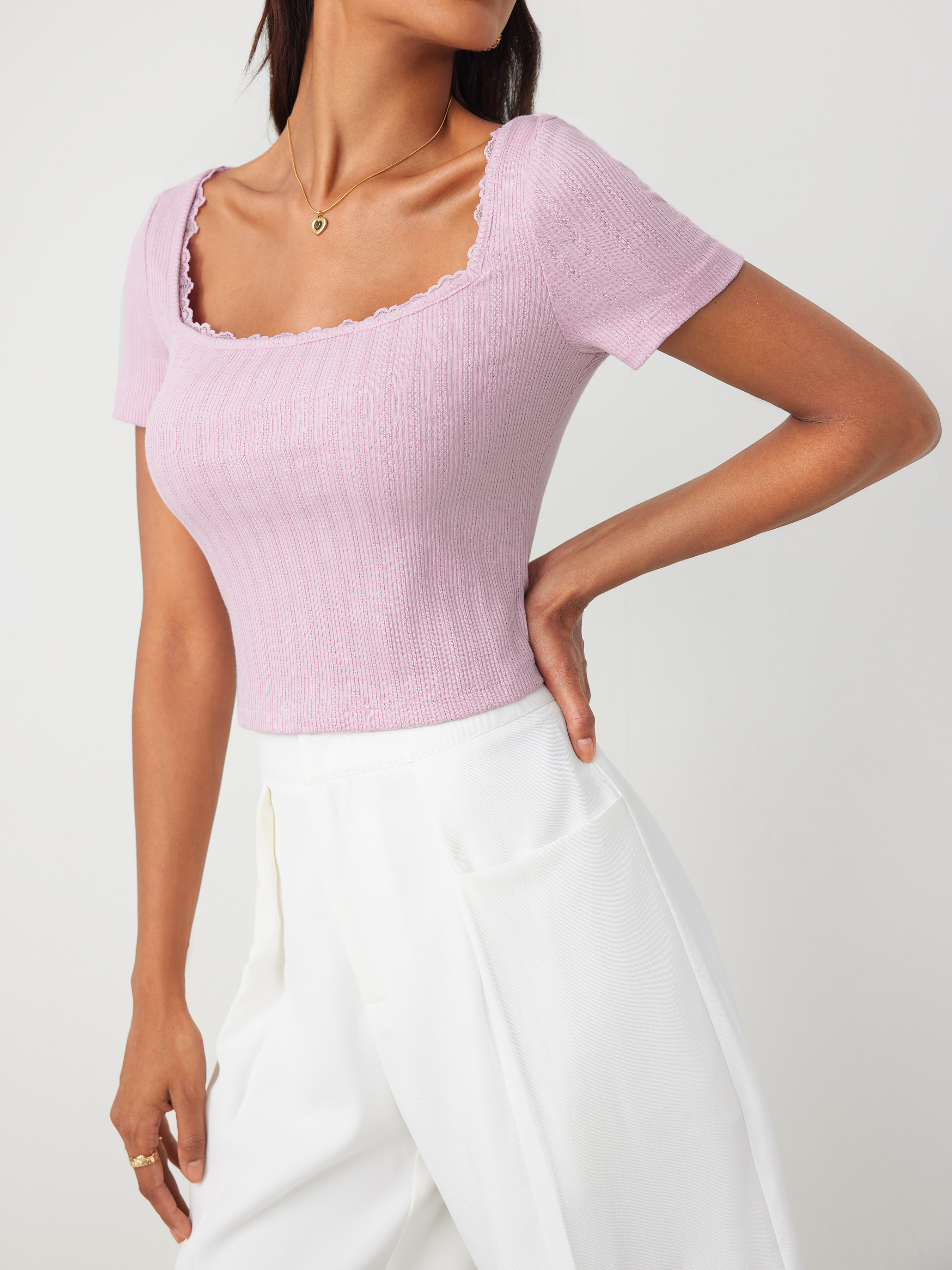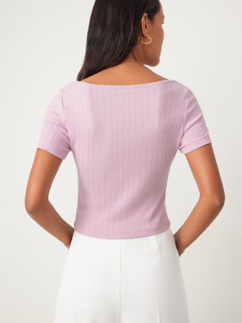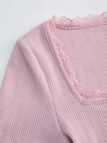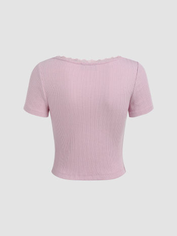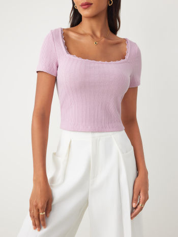 Top corto lavorato a maglia con bordo in pizzo
