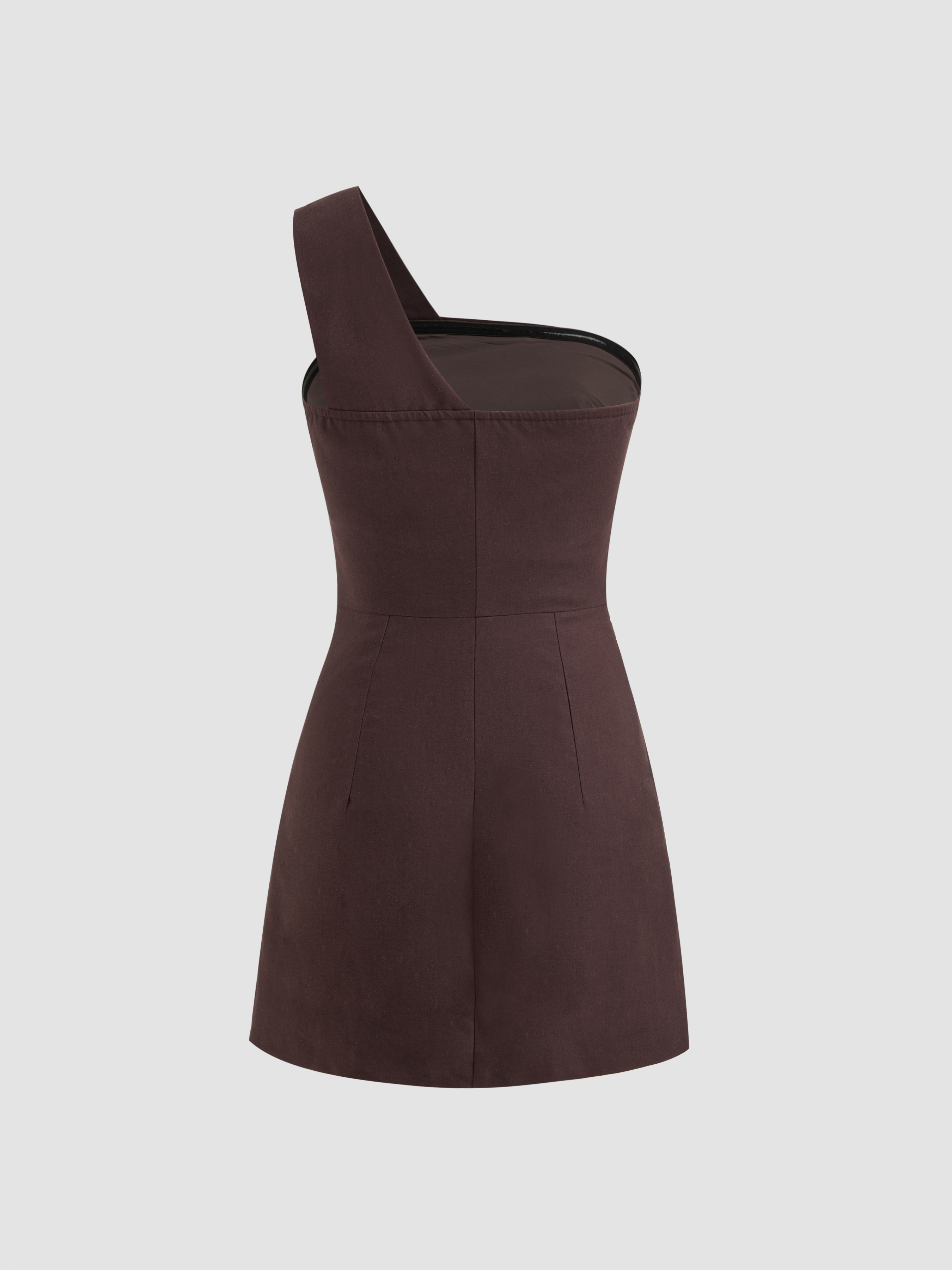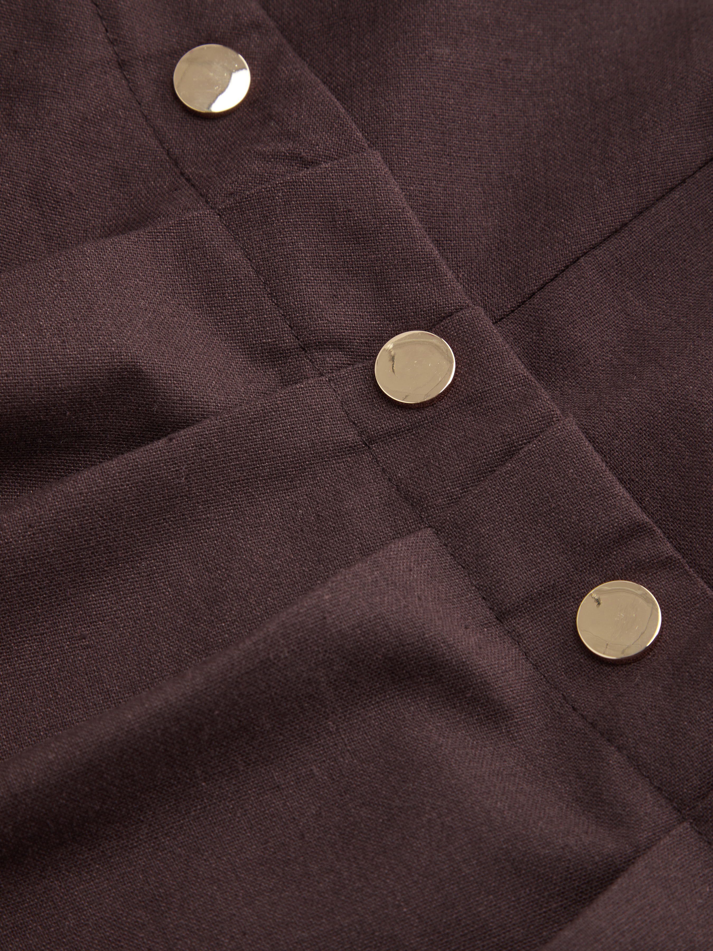 Mini abito asimmetrico con collo drappeggiato e bottoni in misto lino
