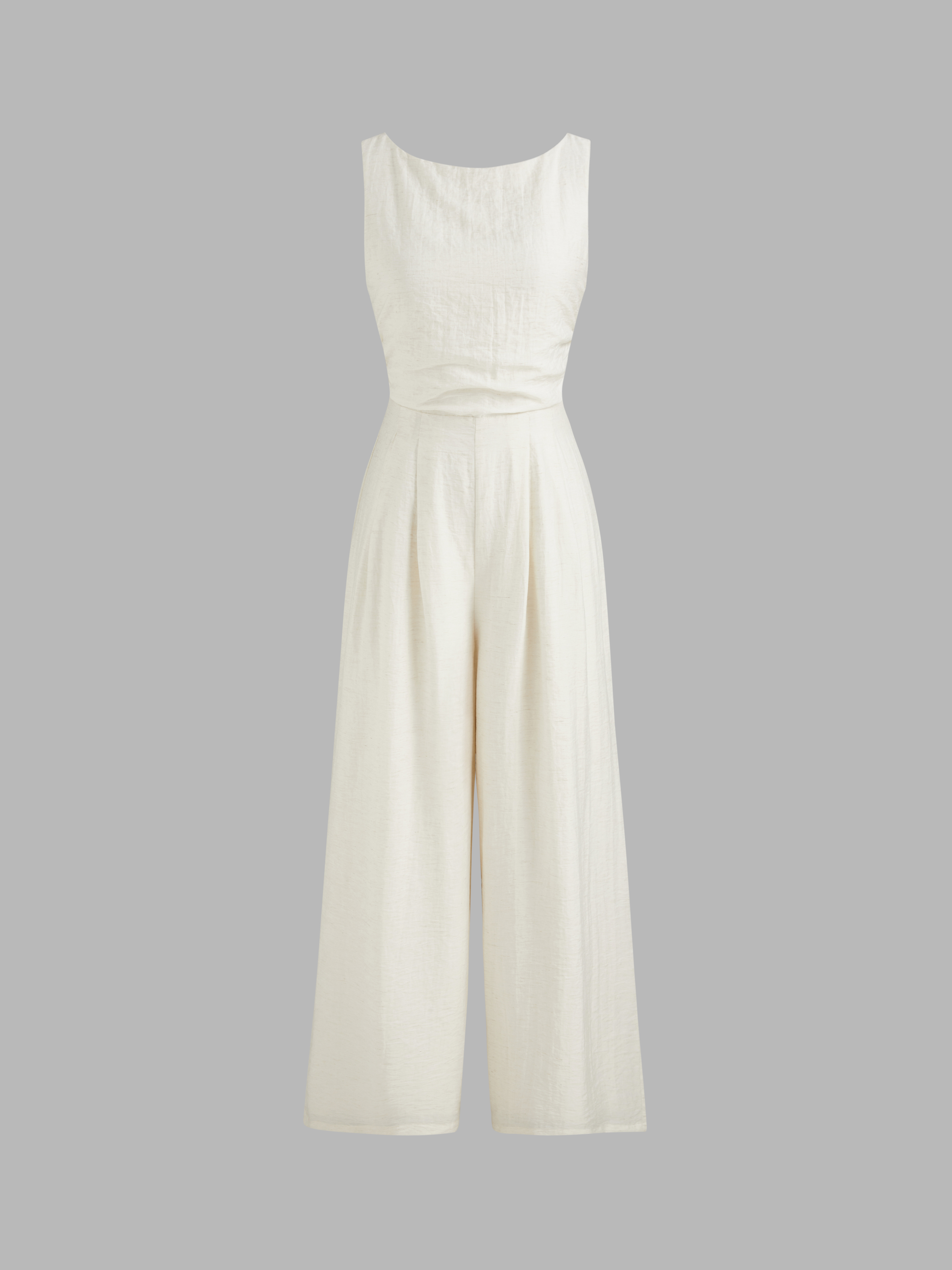 Tuta a gamba larga in misto lino con scollo a barca e fiocco senza schienale