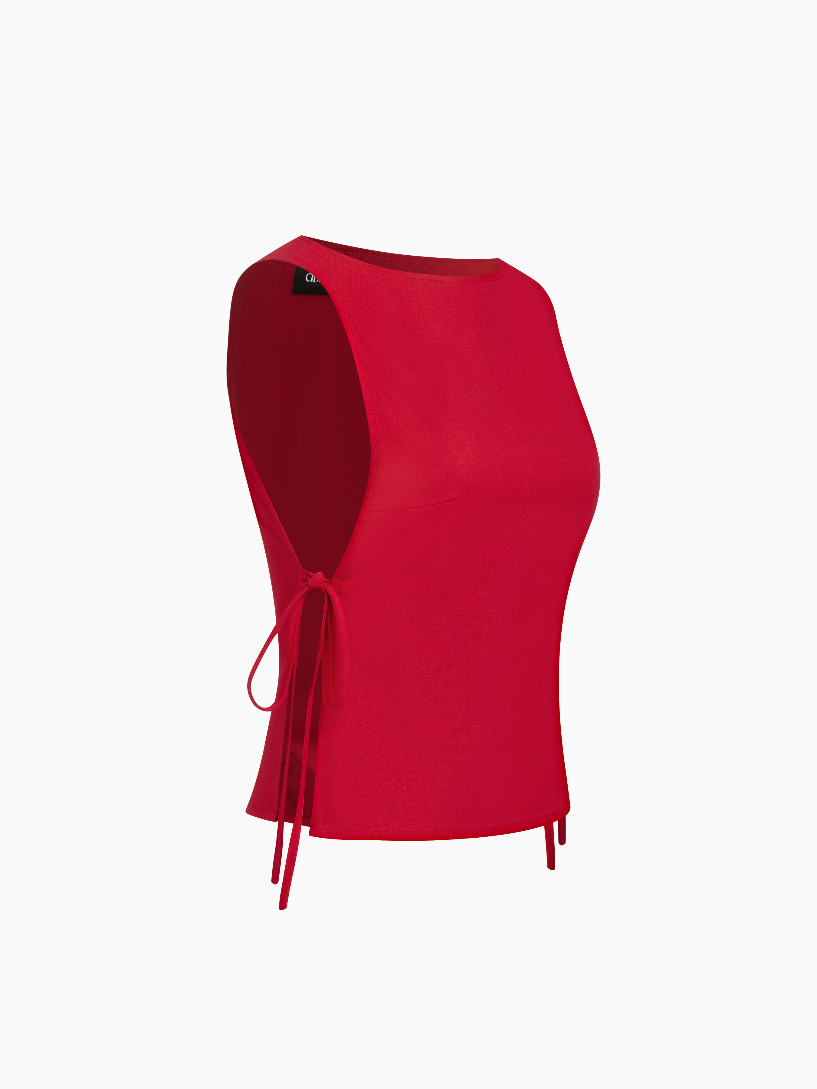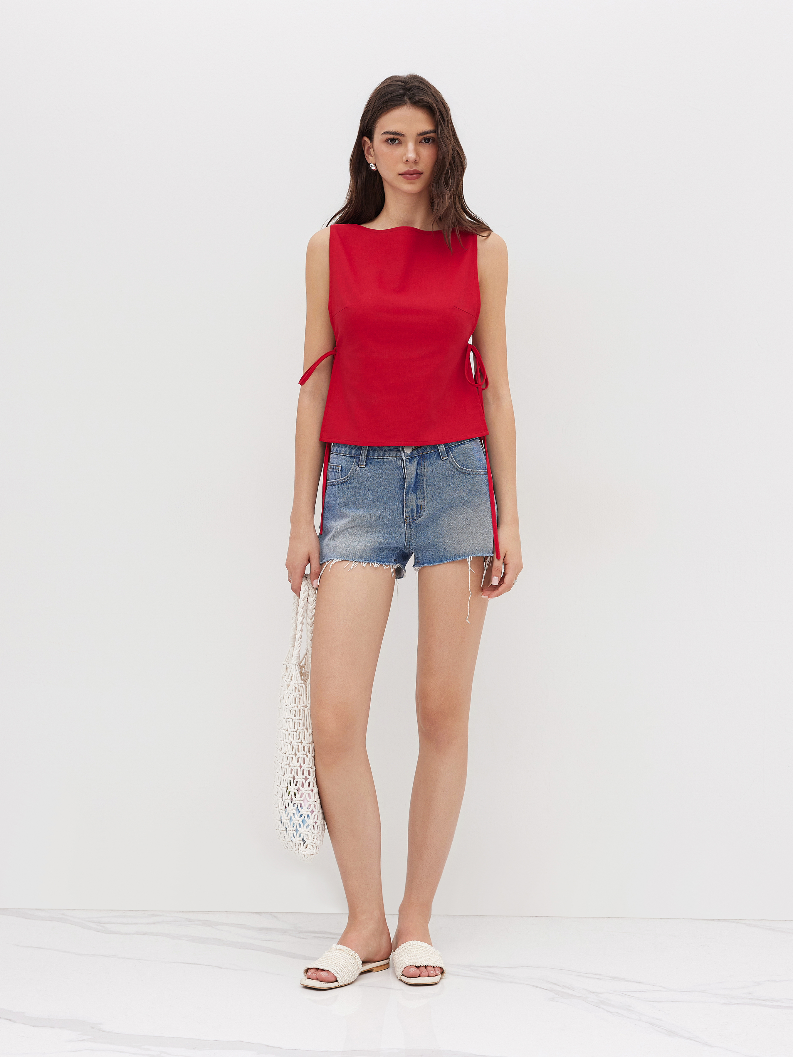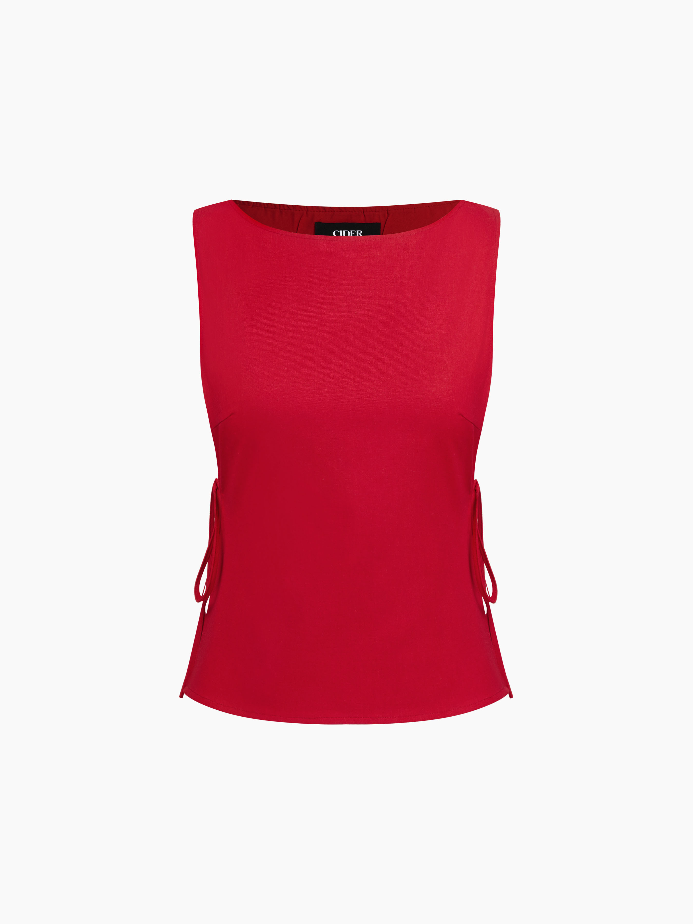 Canotta in misto lino con scollo a barchetta, nodo laterale e spacco