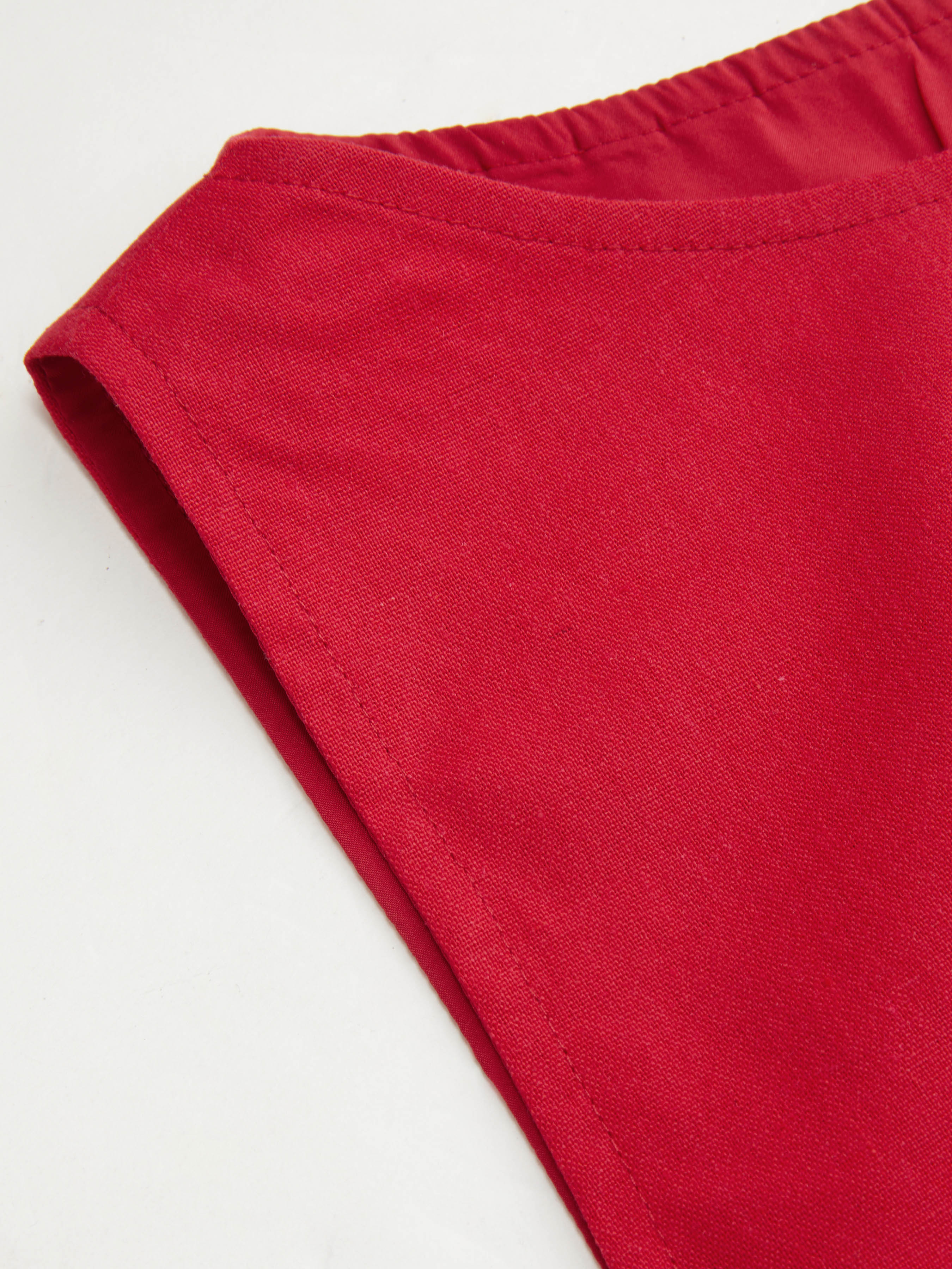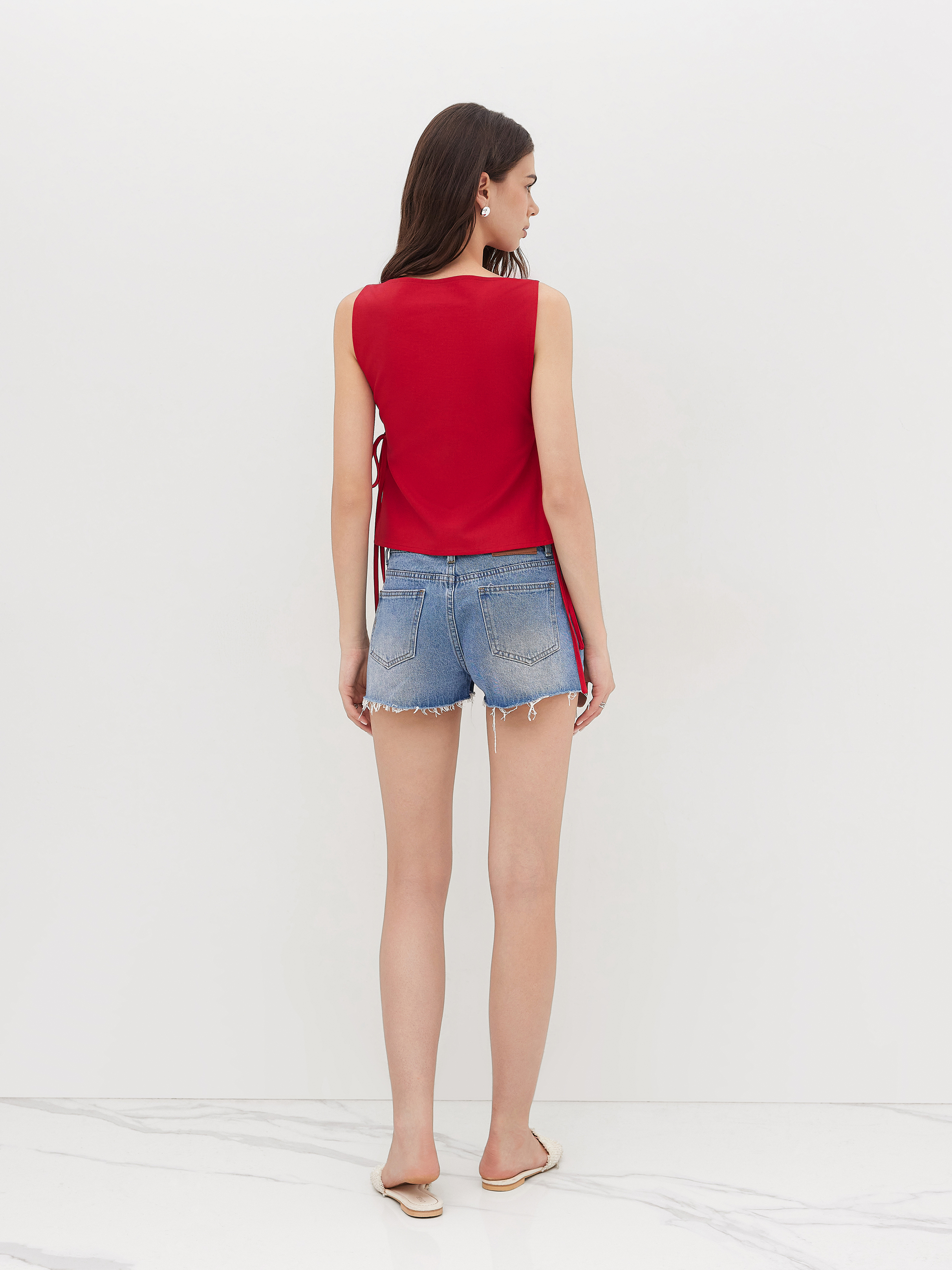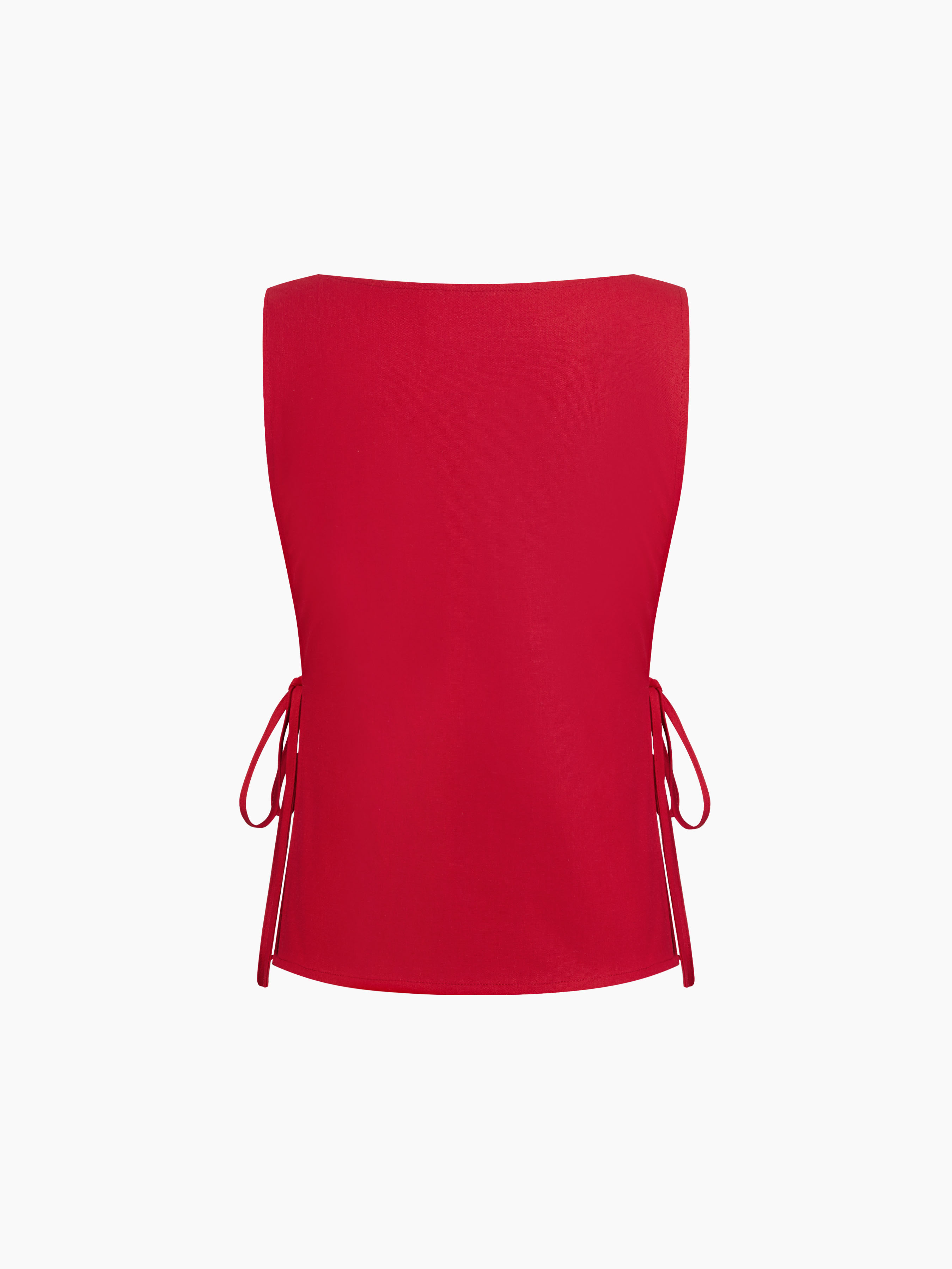 Canotta in misto lino con scollo a barchetta, nodo laterale e spacco