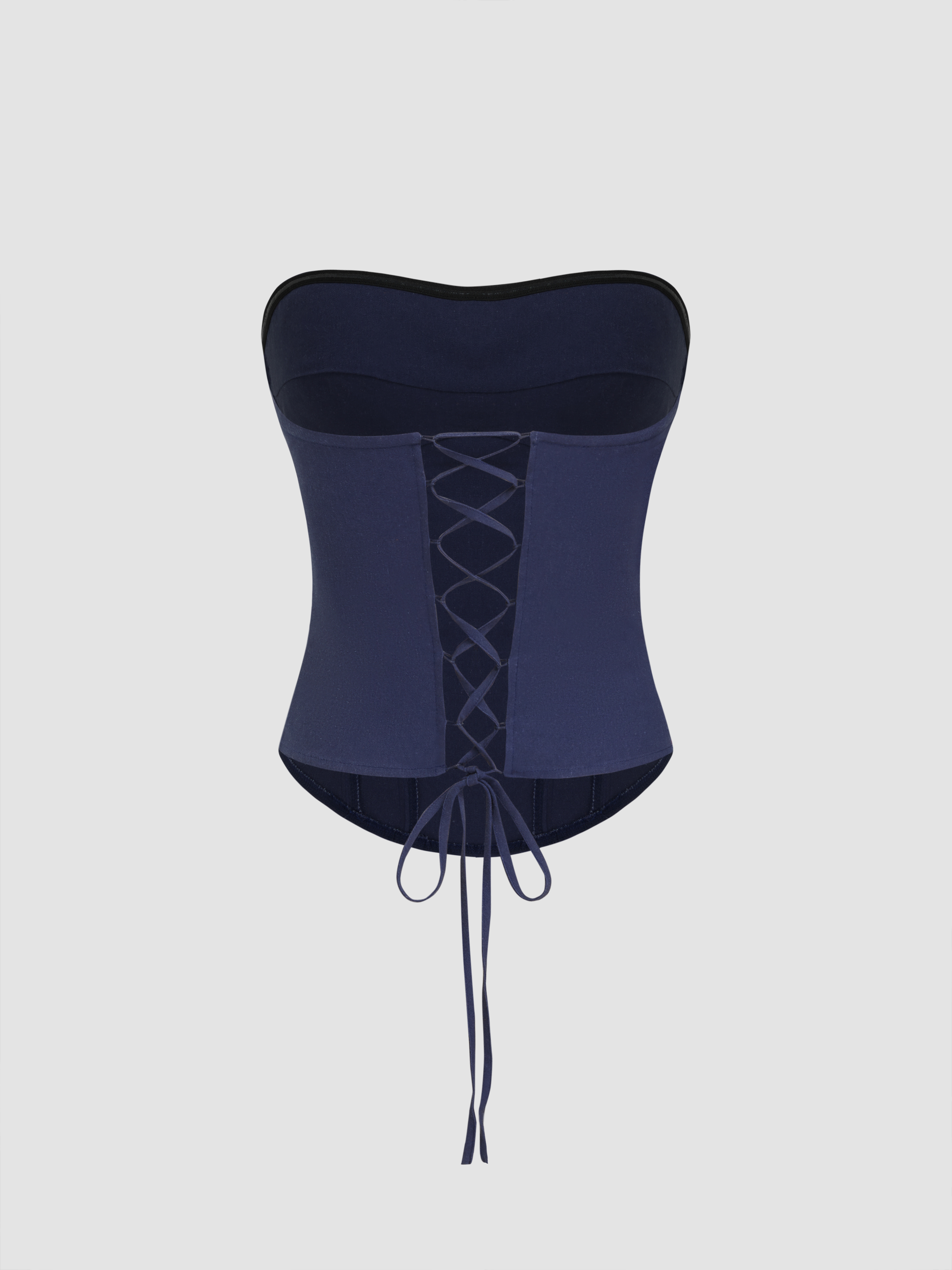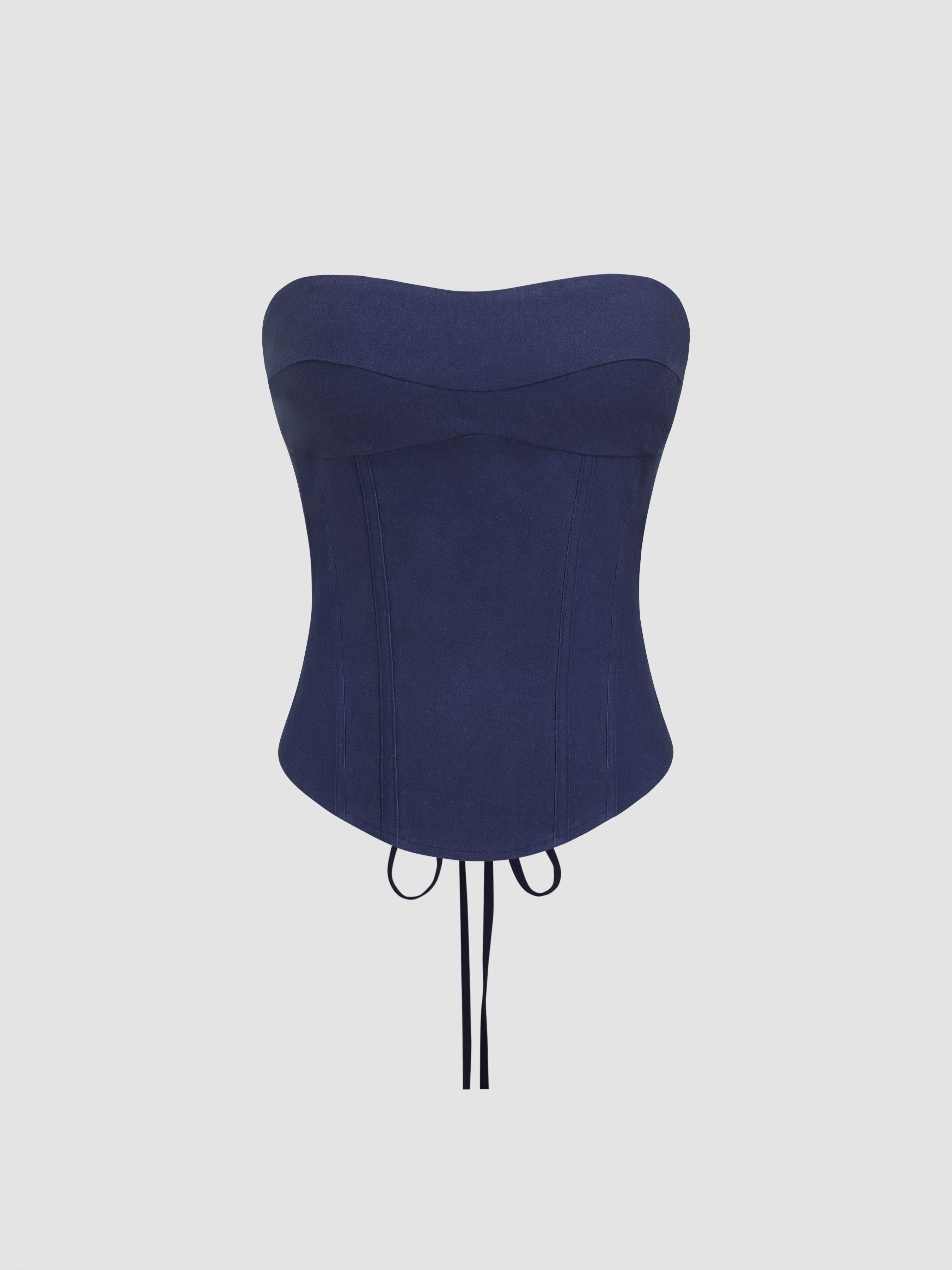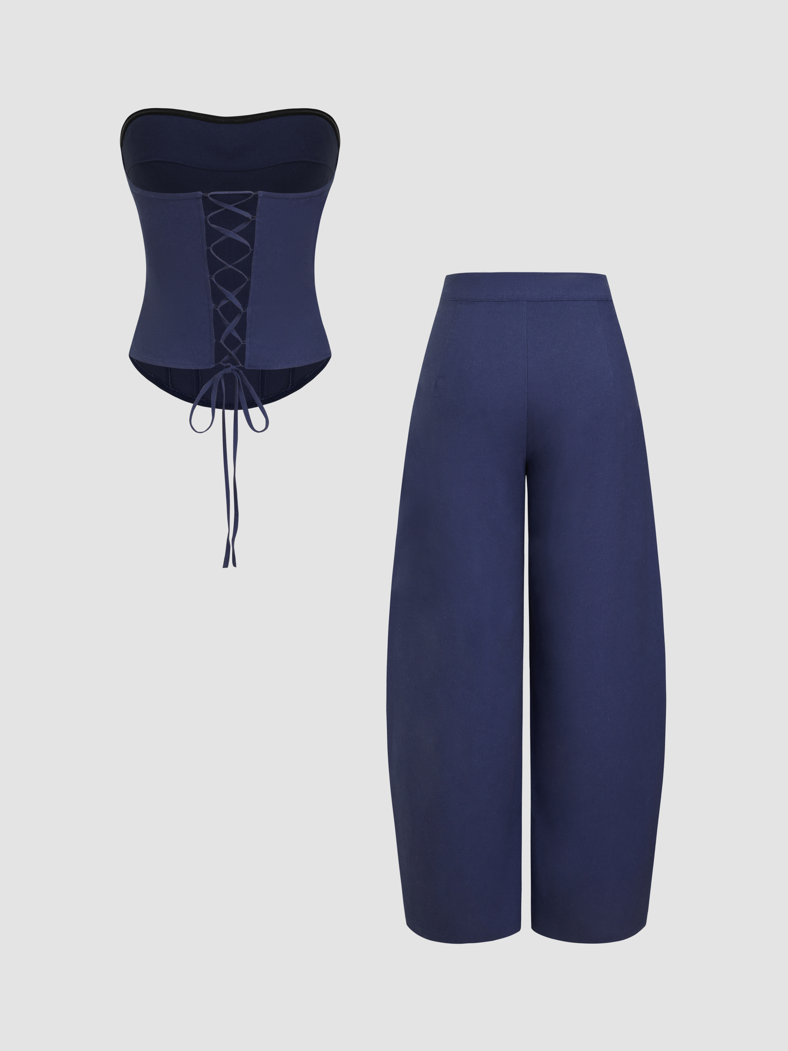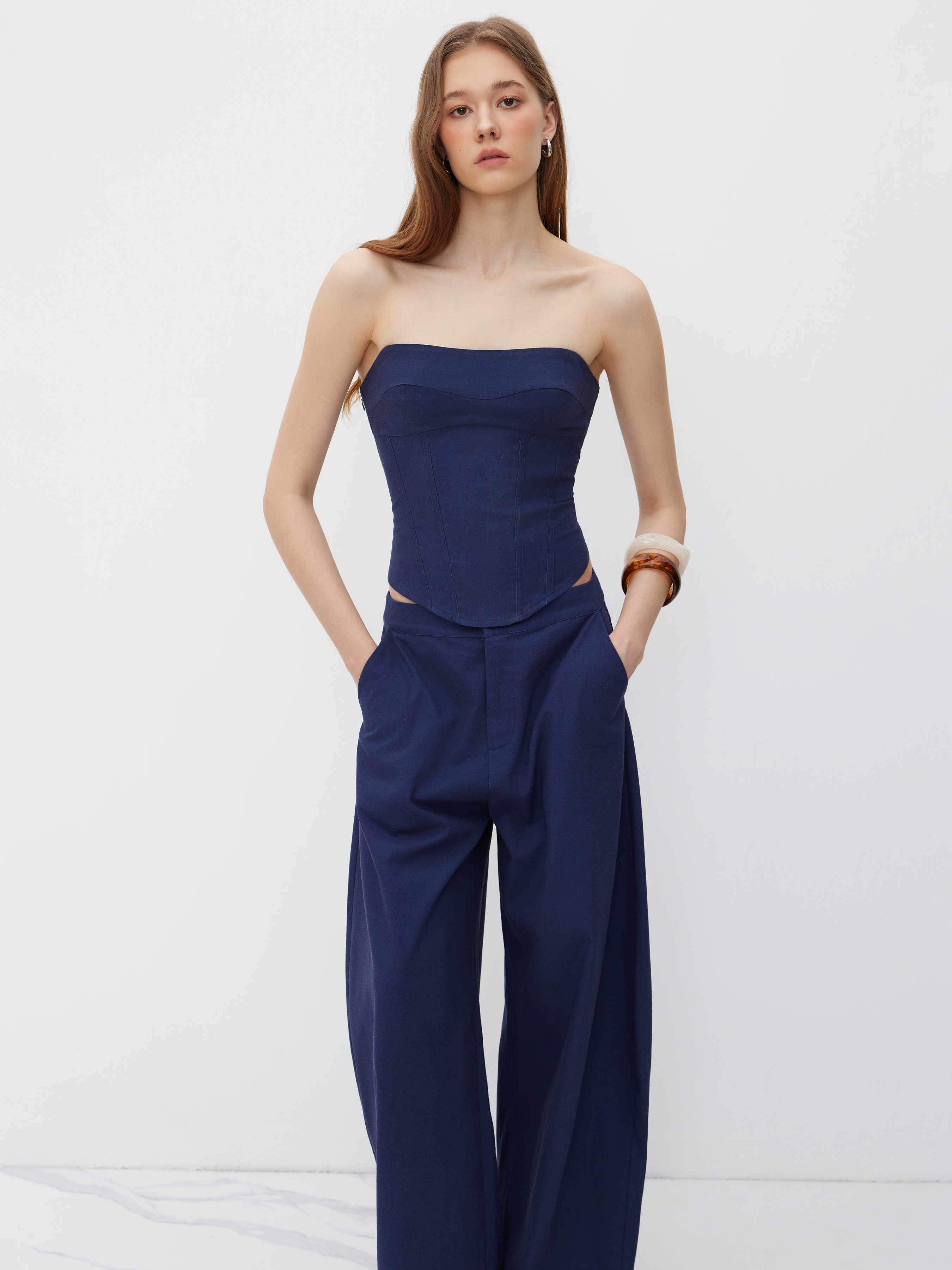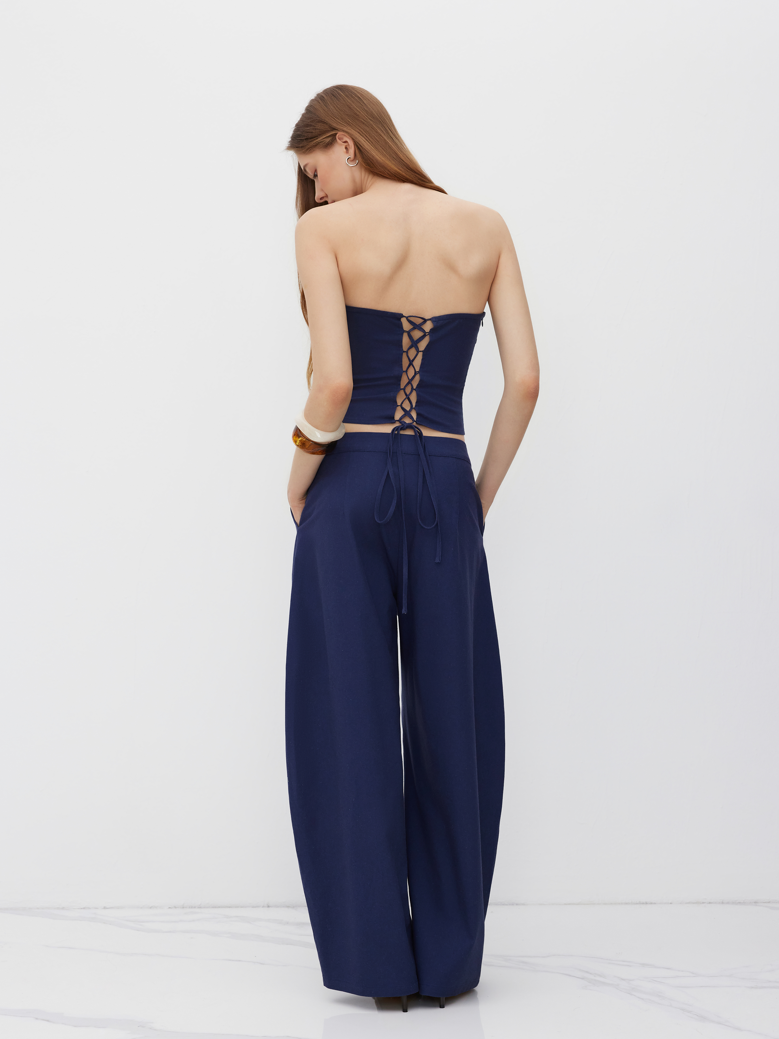 Set top a fascia in lino misto con lacci e pantaloni a gamba cilindrica a vita media