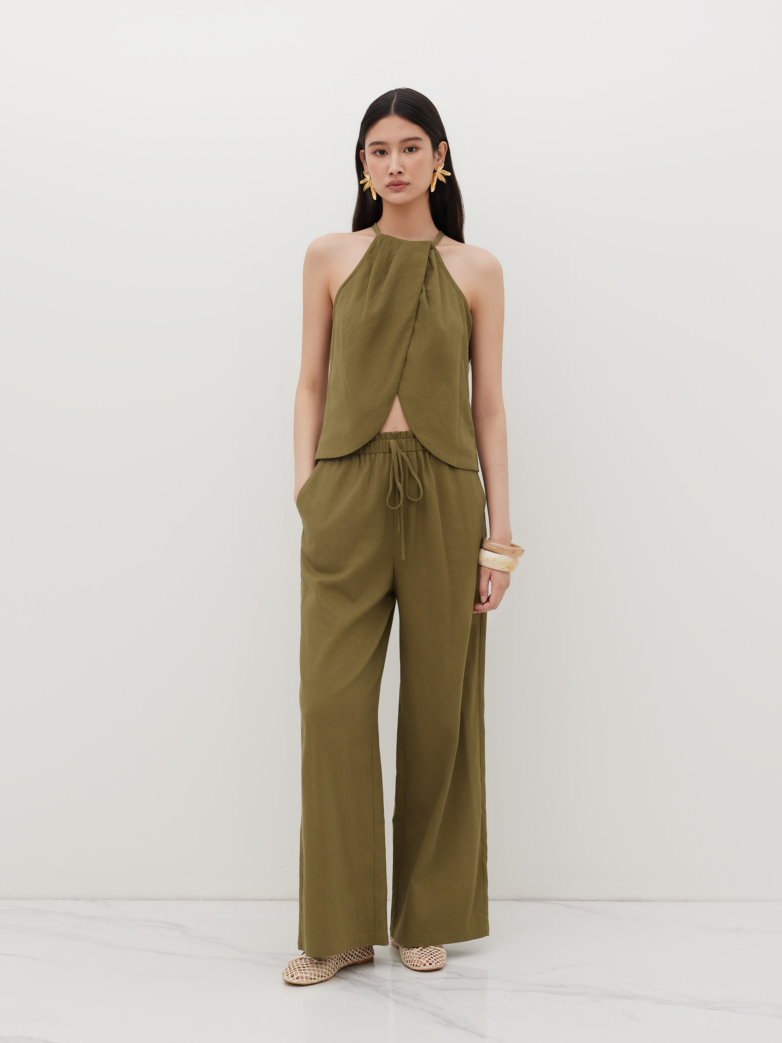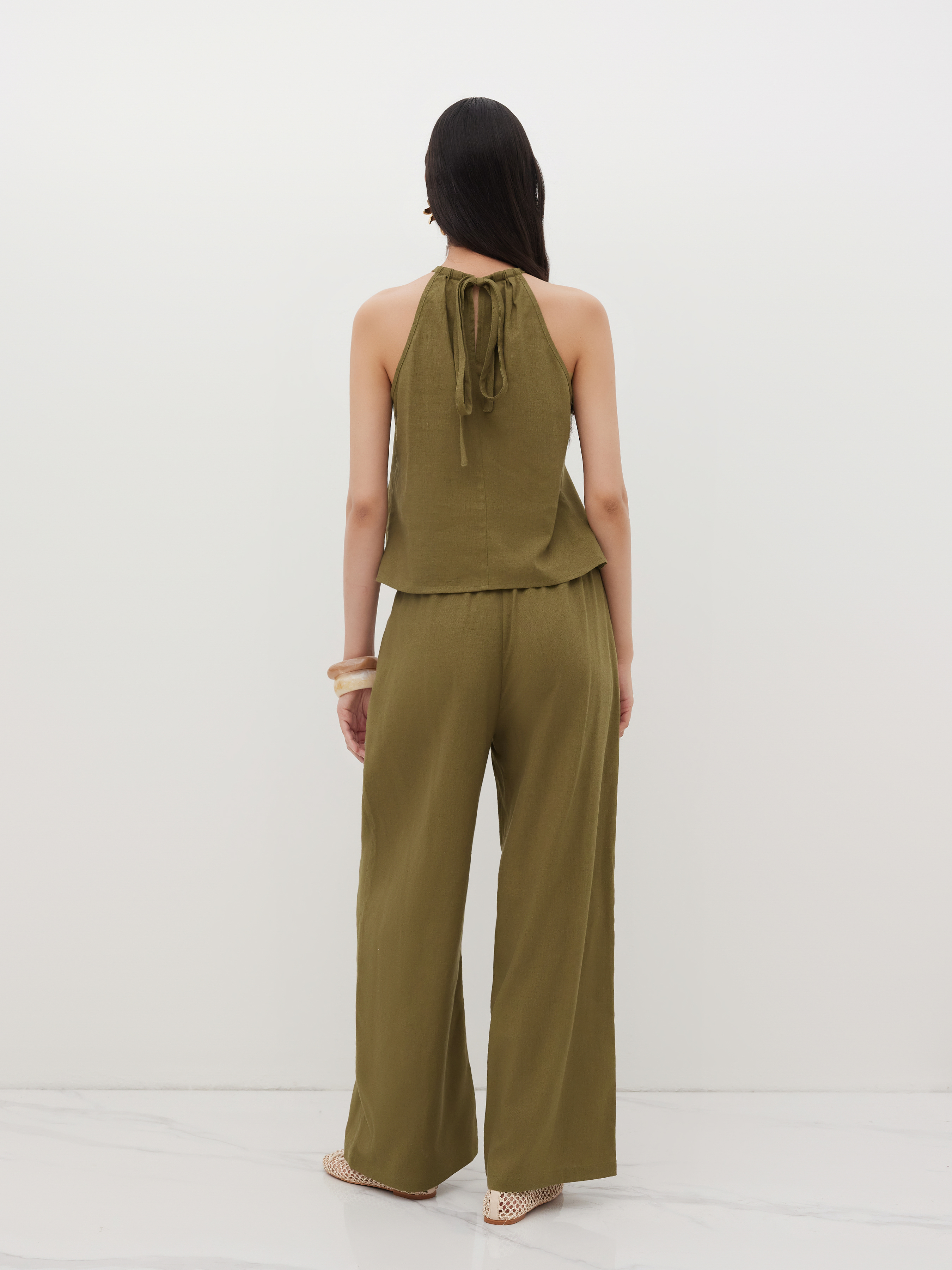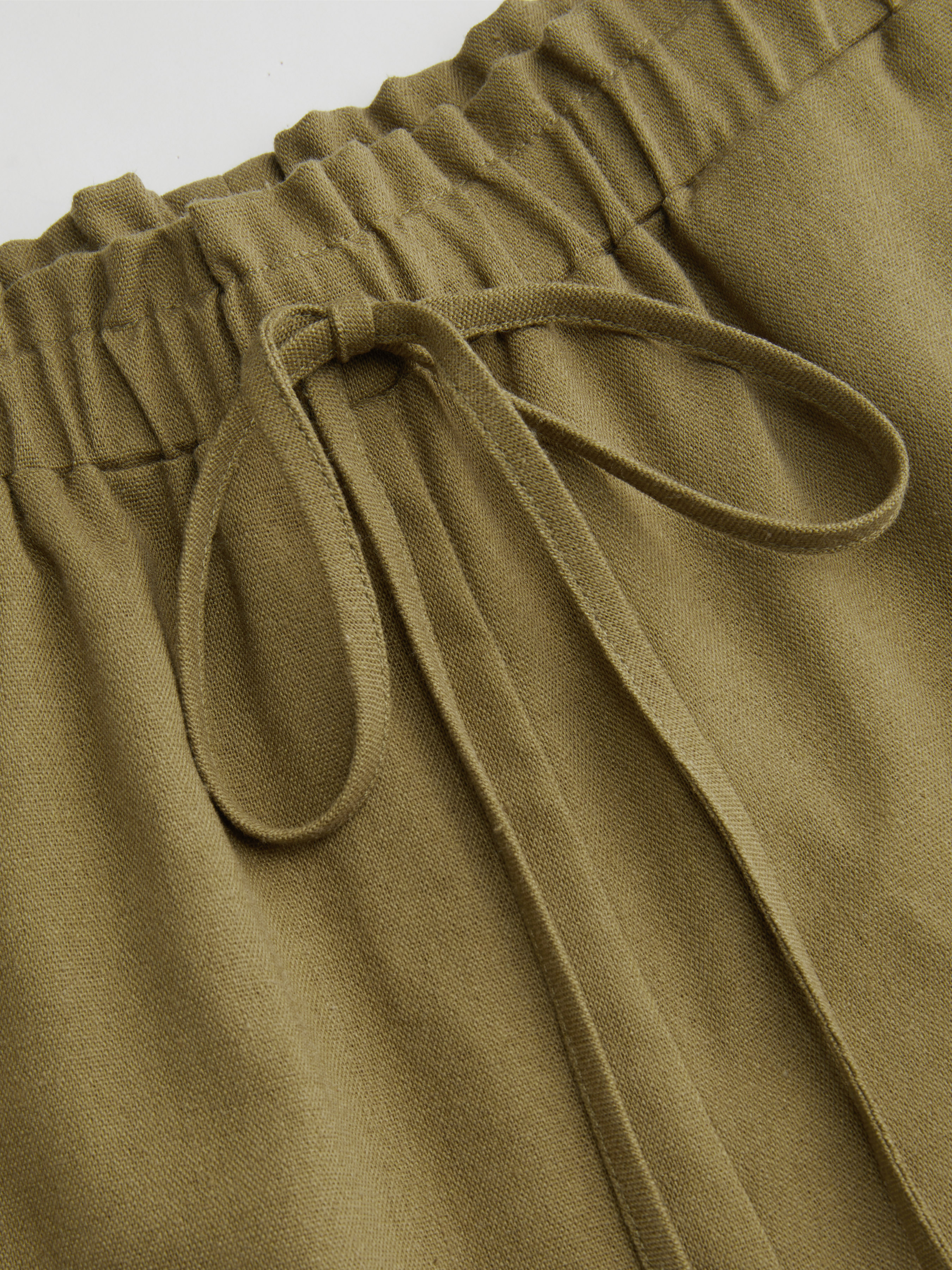 Pantaloni ampi a gamba larga a vita media con elastico in vita in misto lino