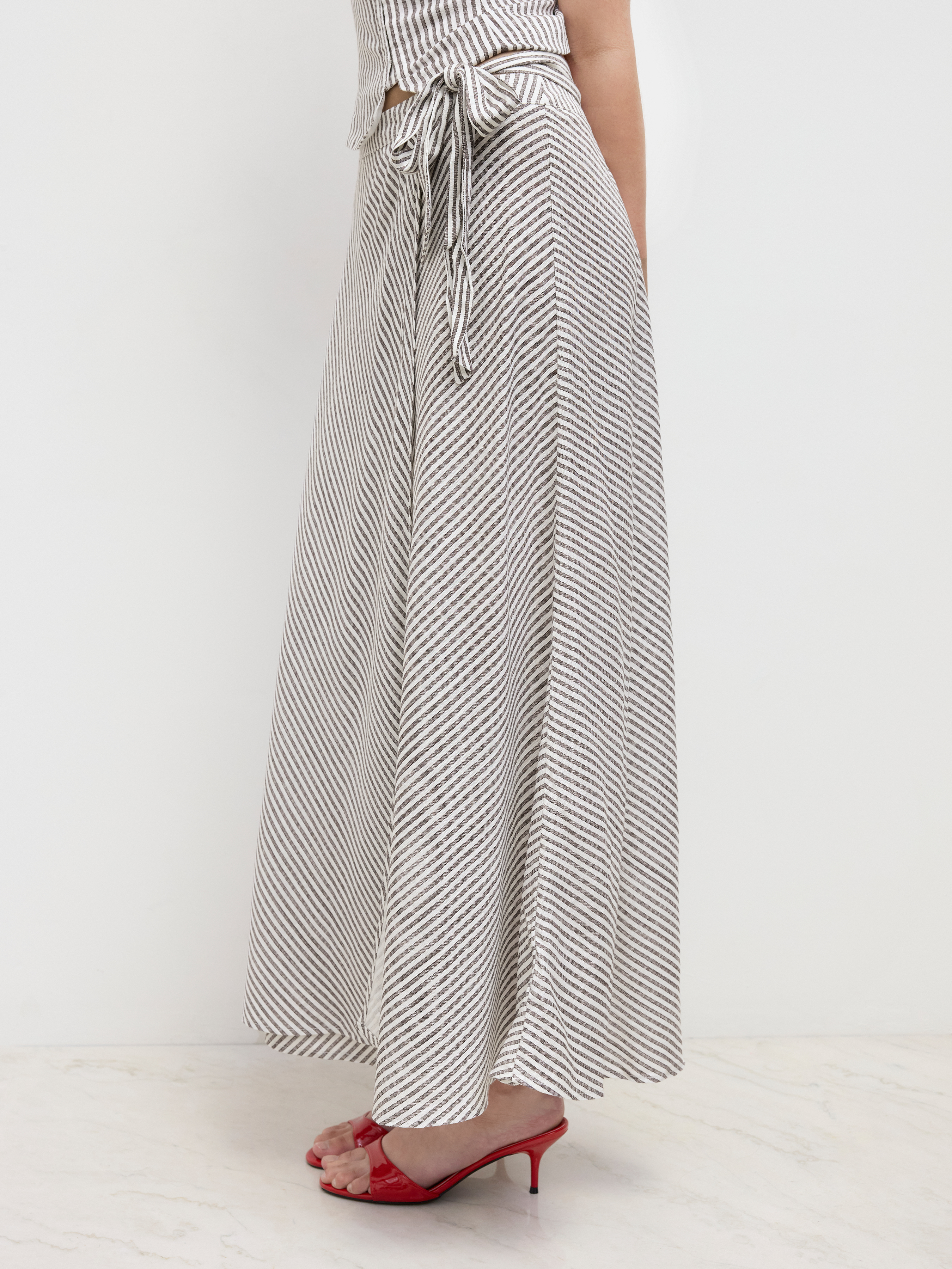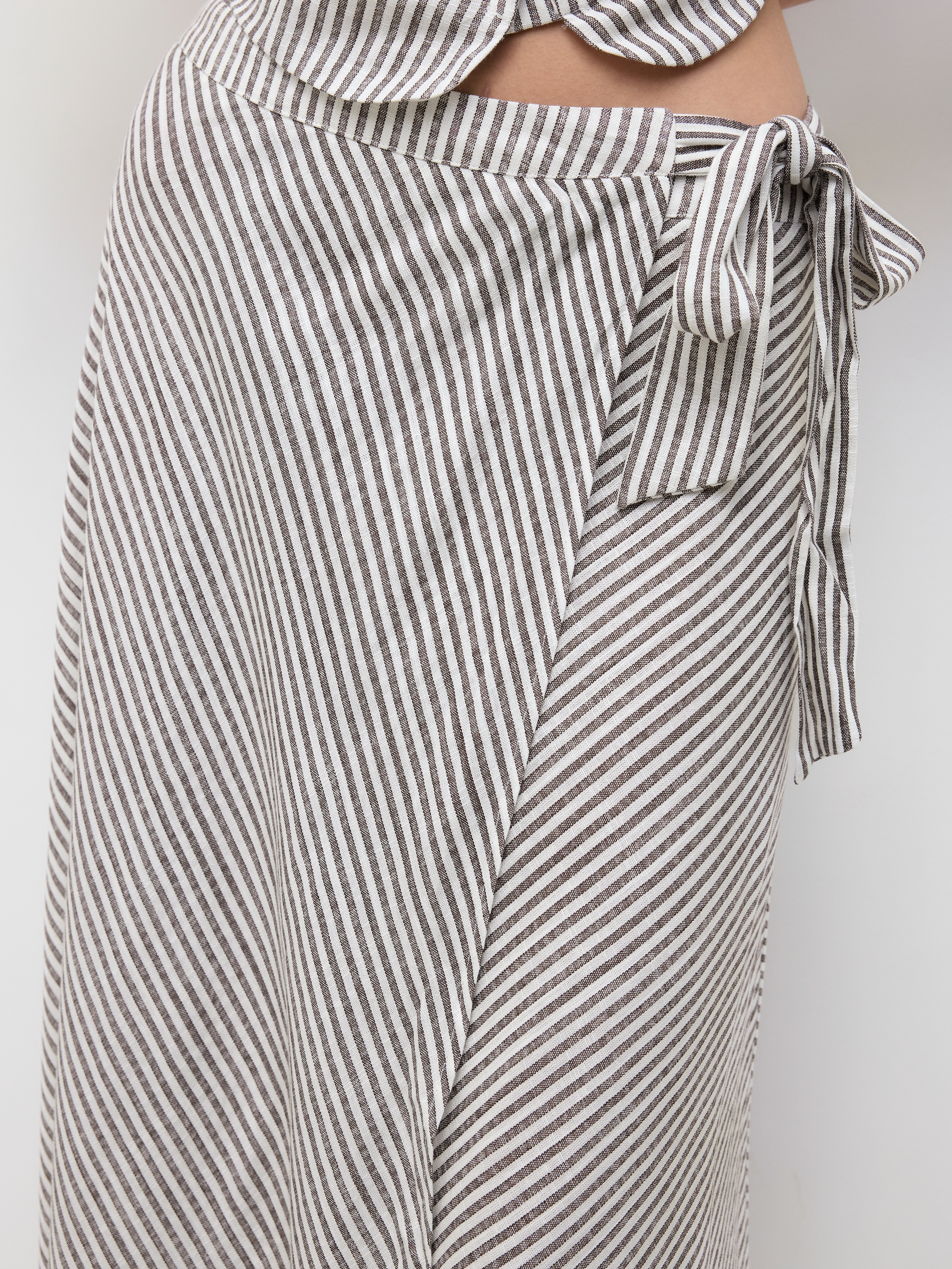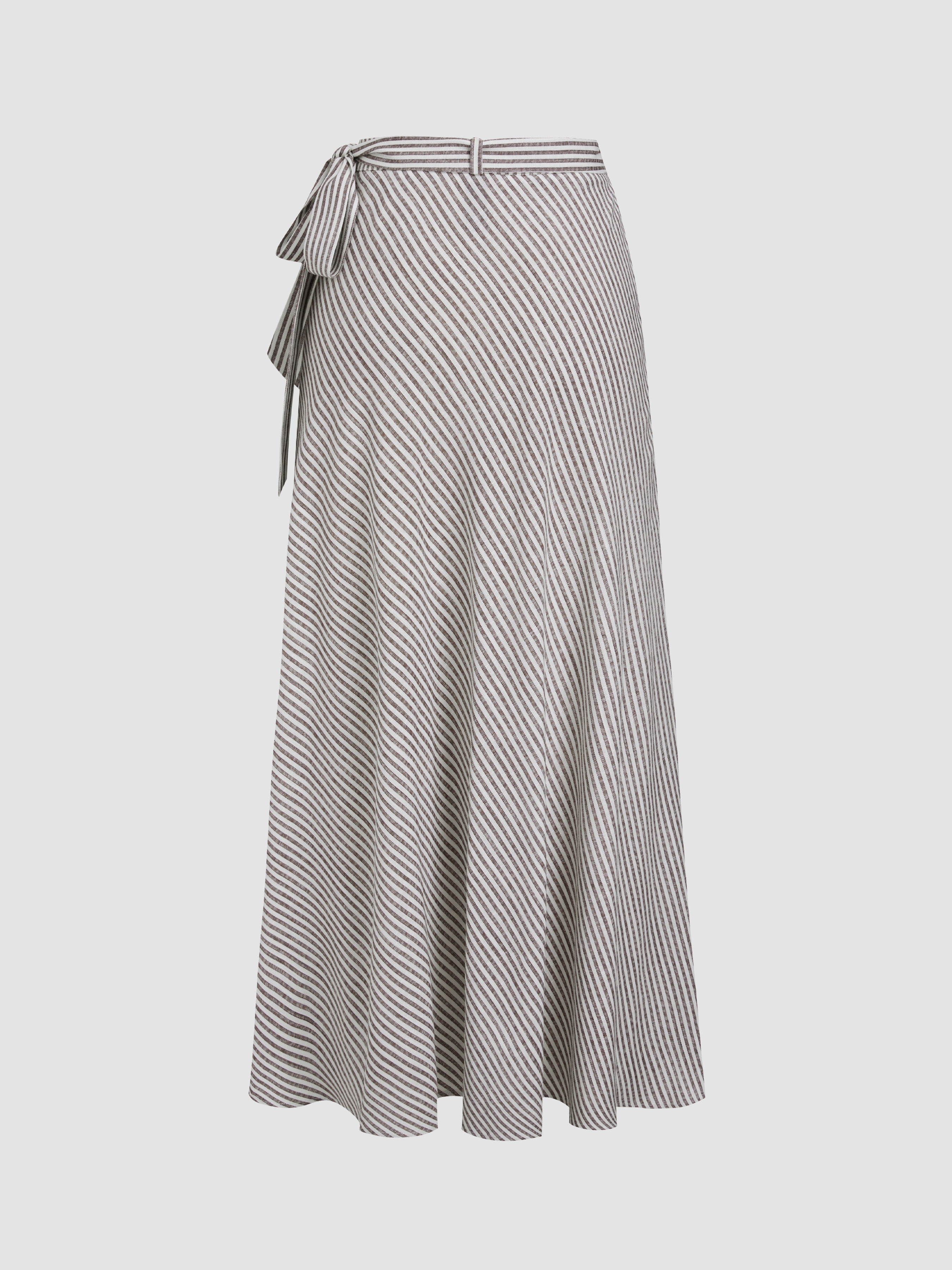Gonna lunga a righe annodata in vita in misto lino a vita media
