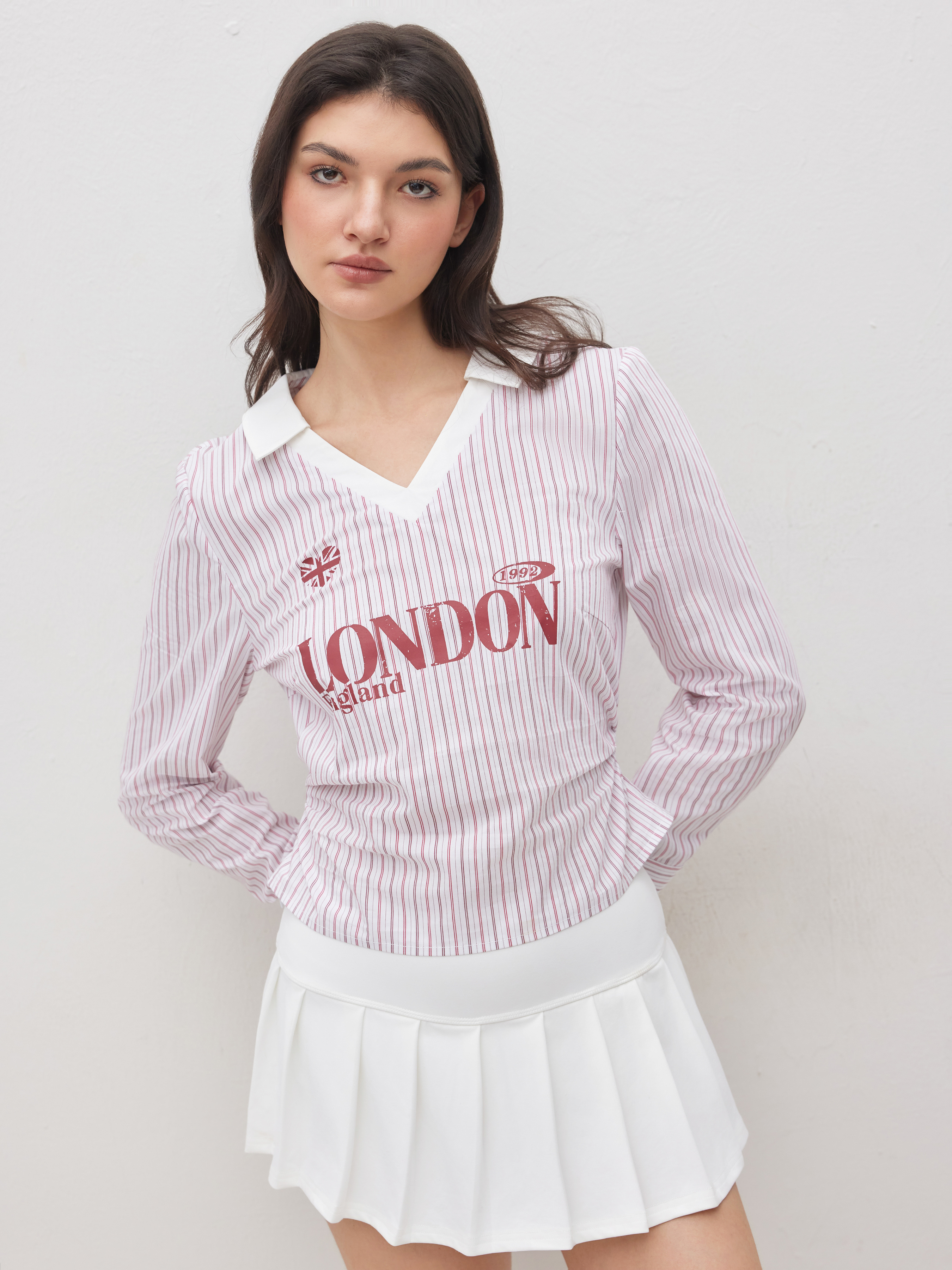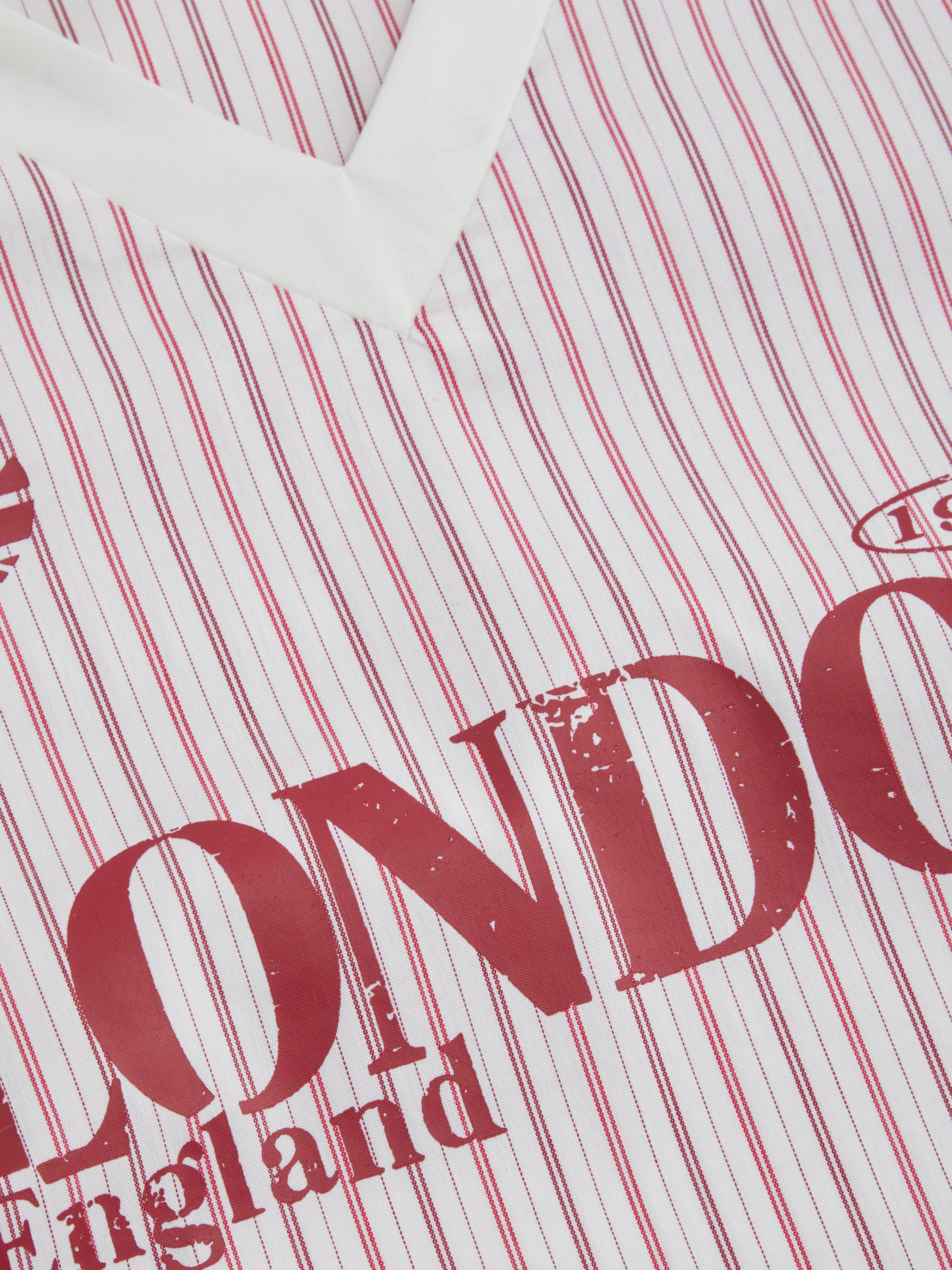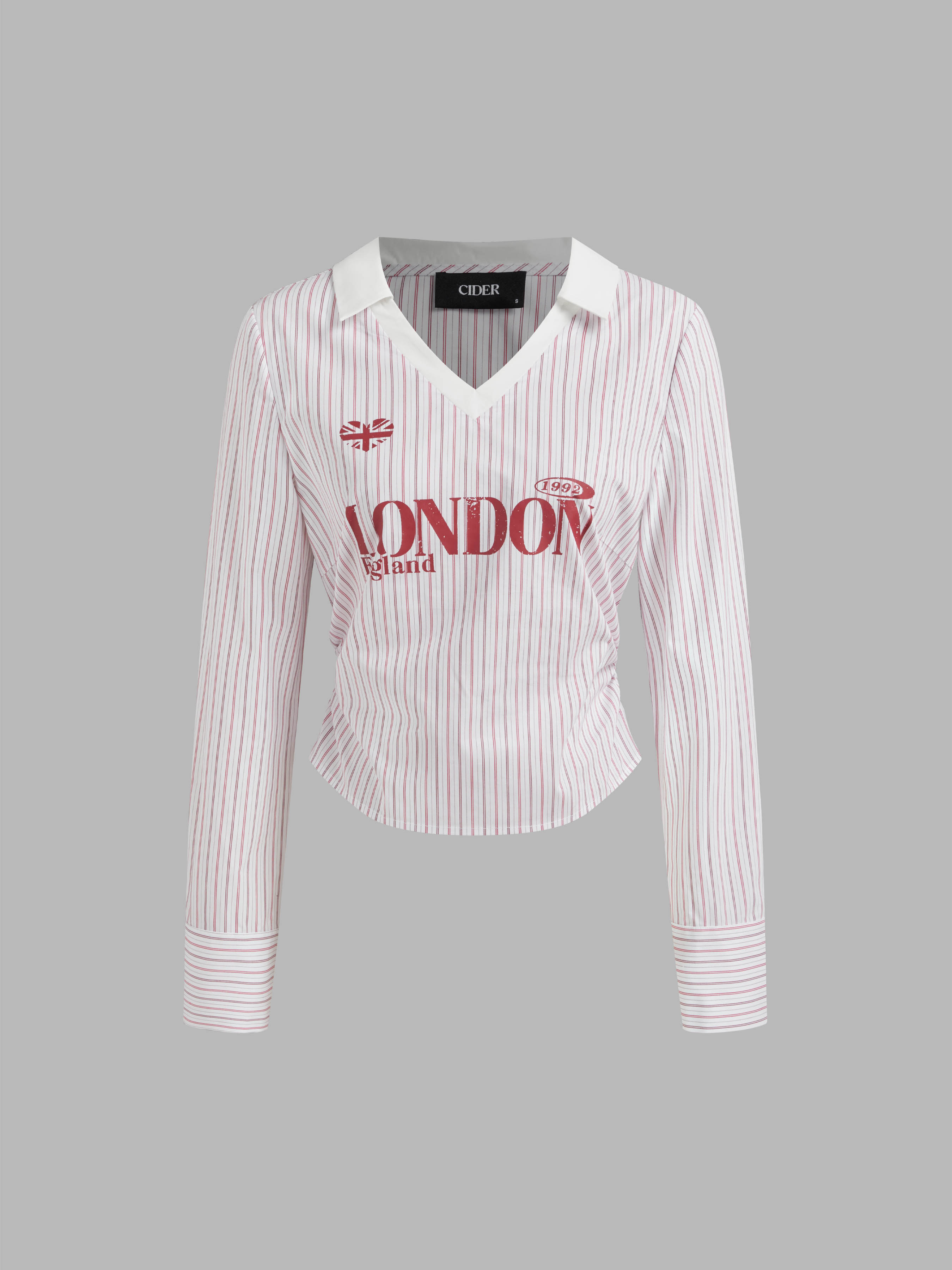 London Graphic Camicetta con colletto in misto cotone a righe increspato