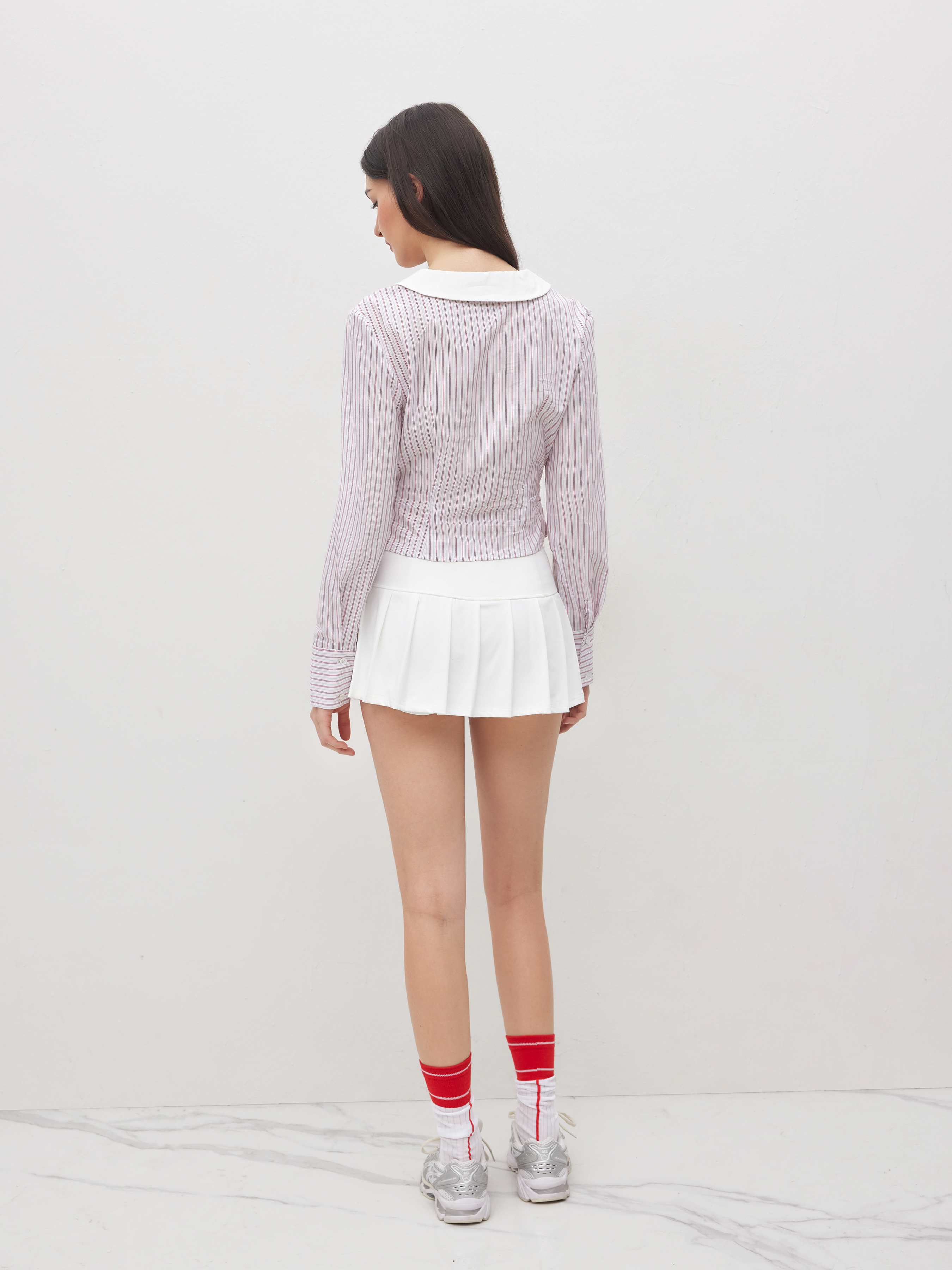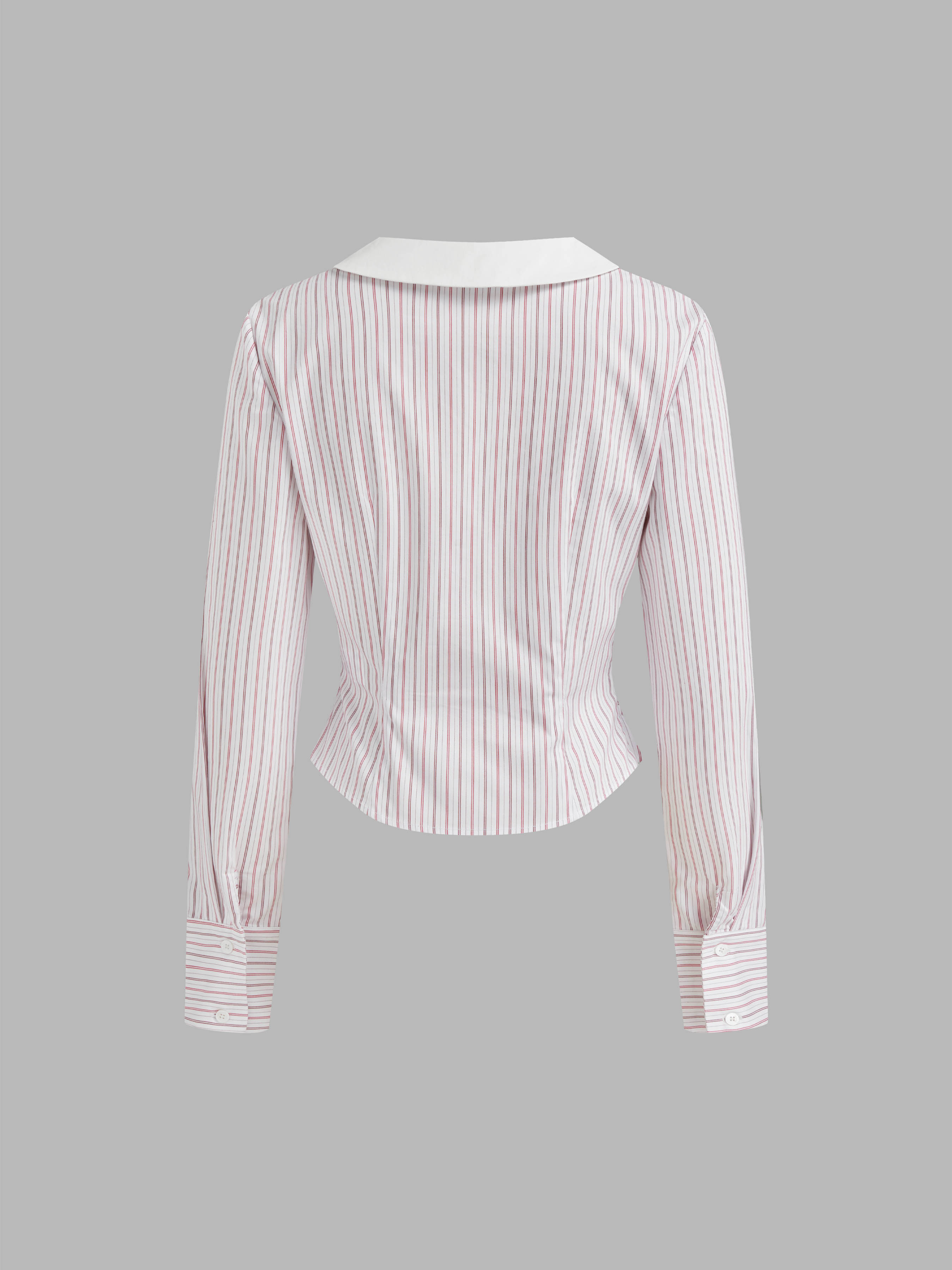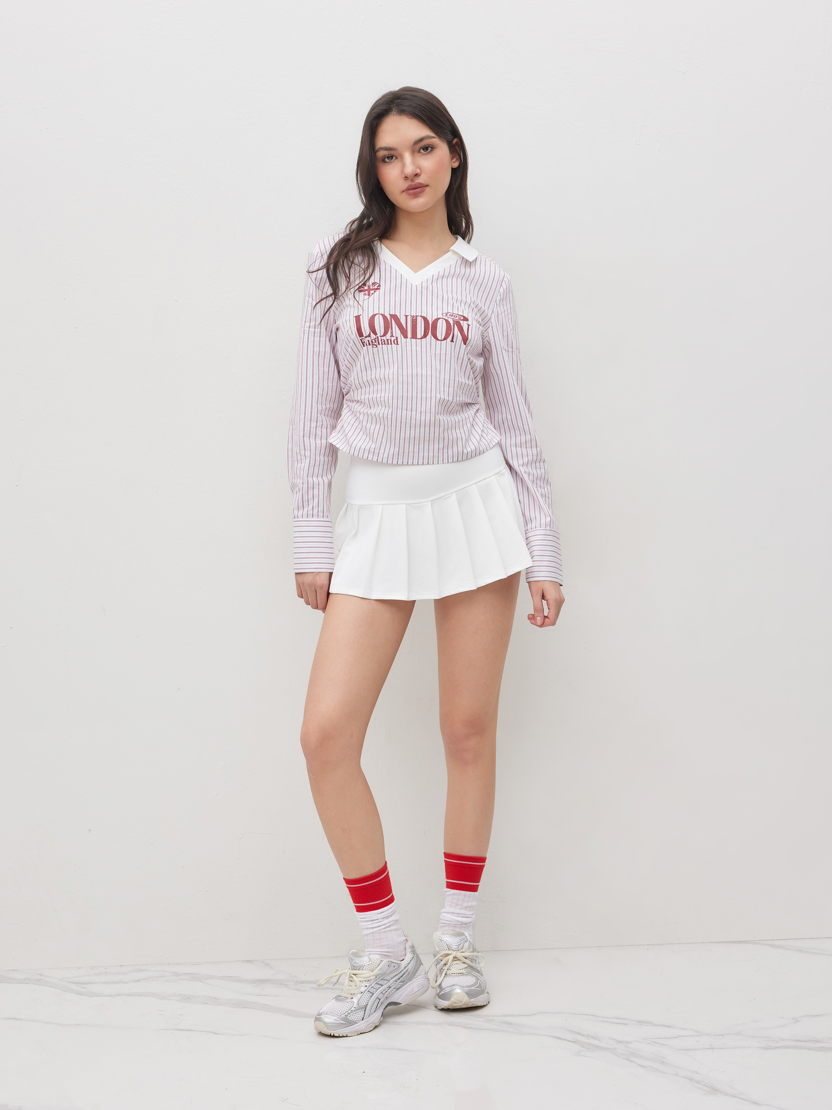 London Graphic Camicetta con colletto in misto cotone a righe increspato