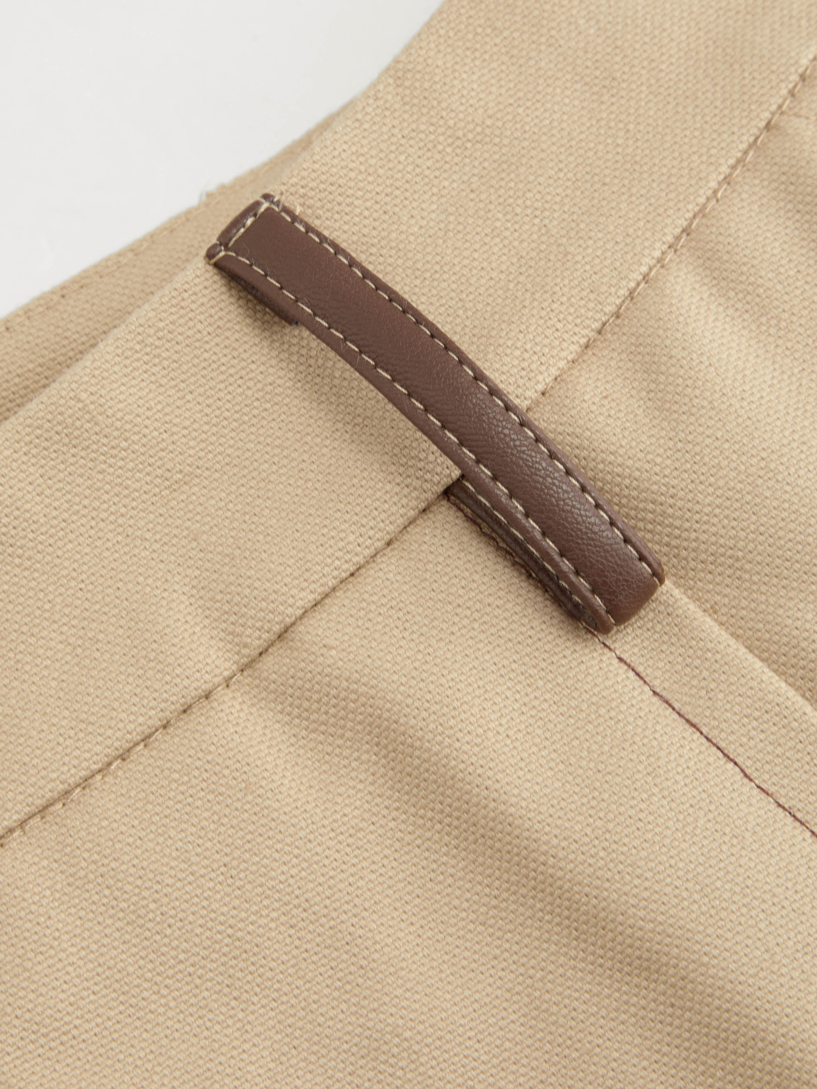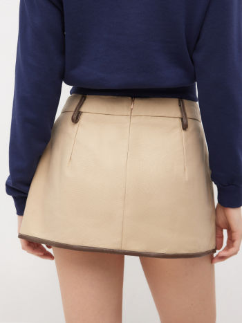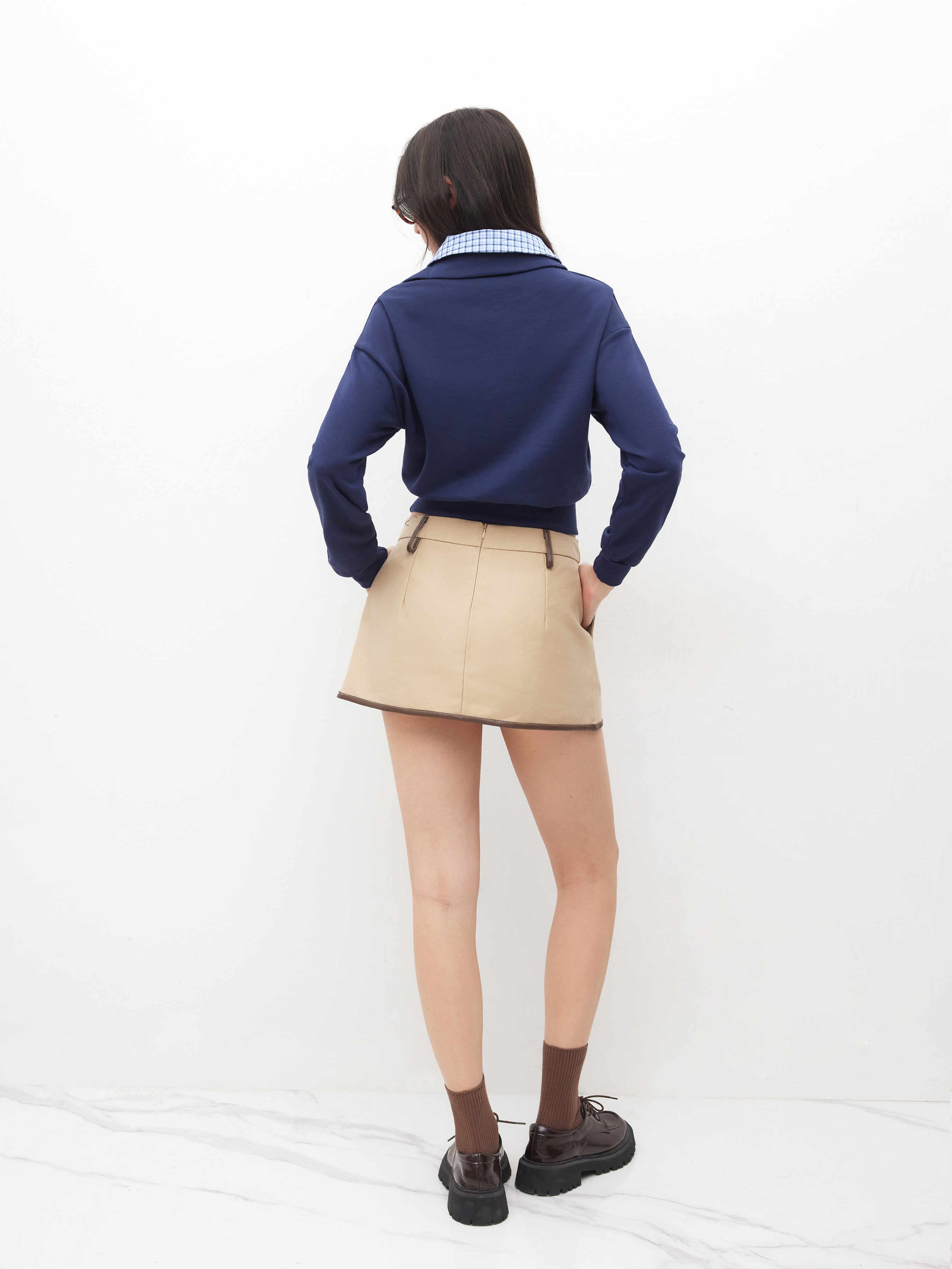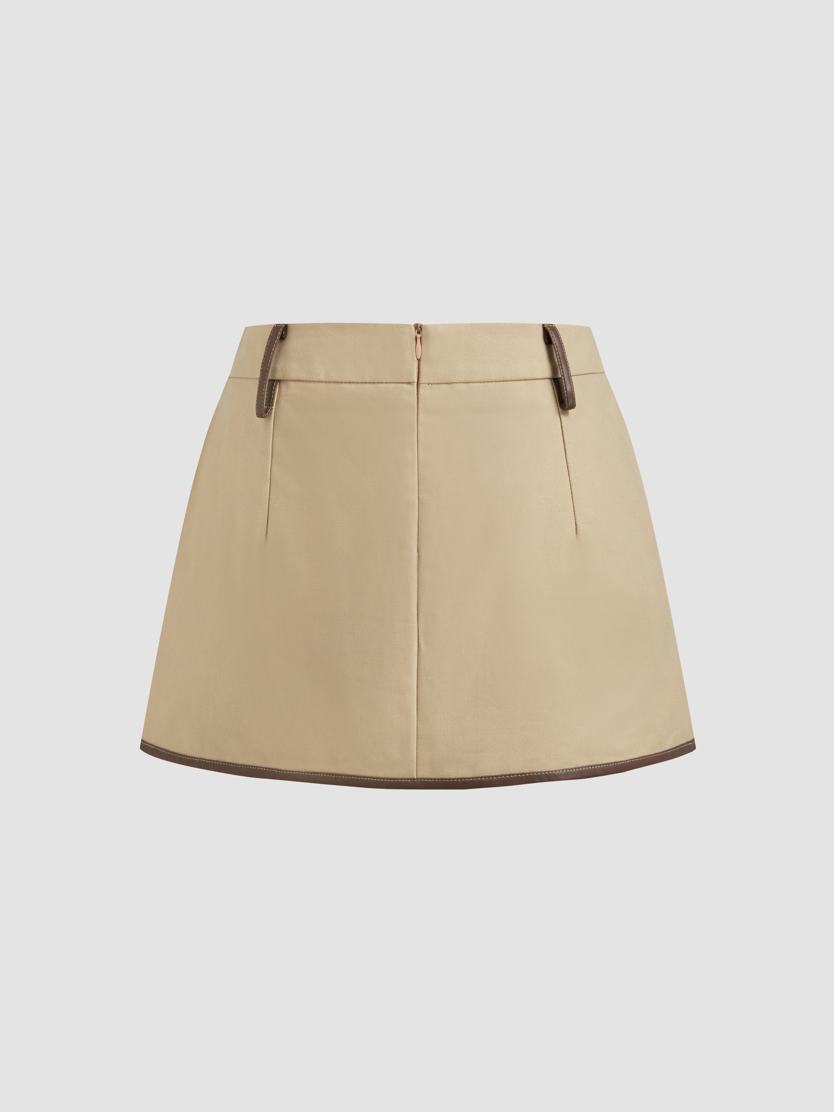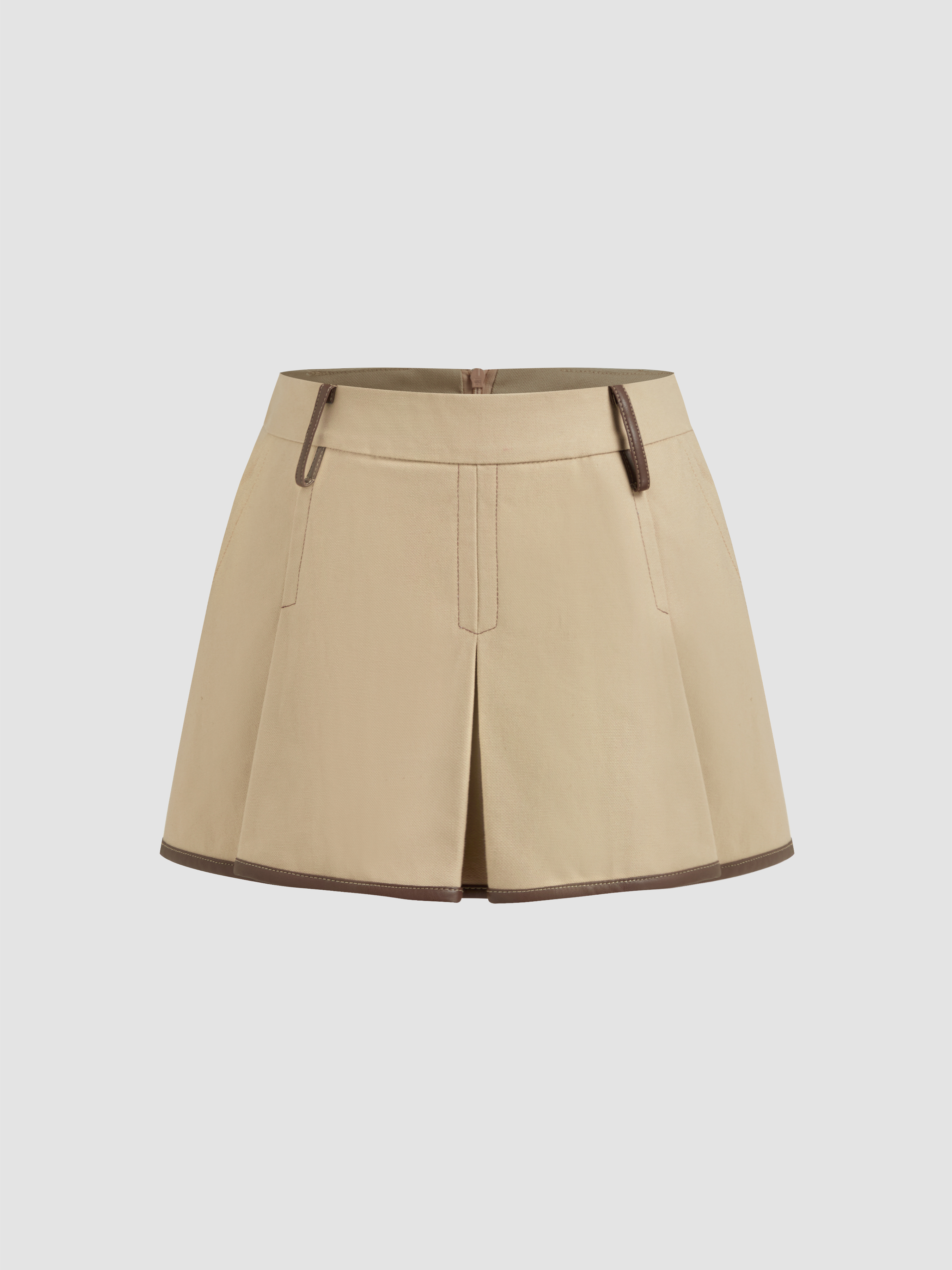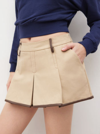 Minigonna a vita bassa con pieghe e bordi a contrasto