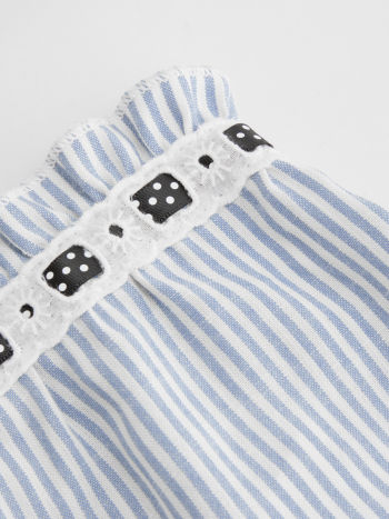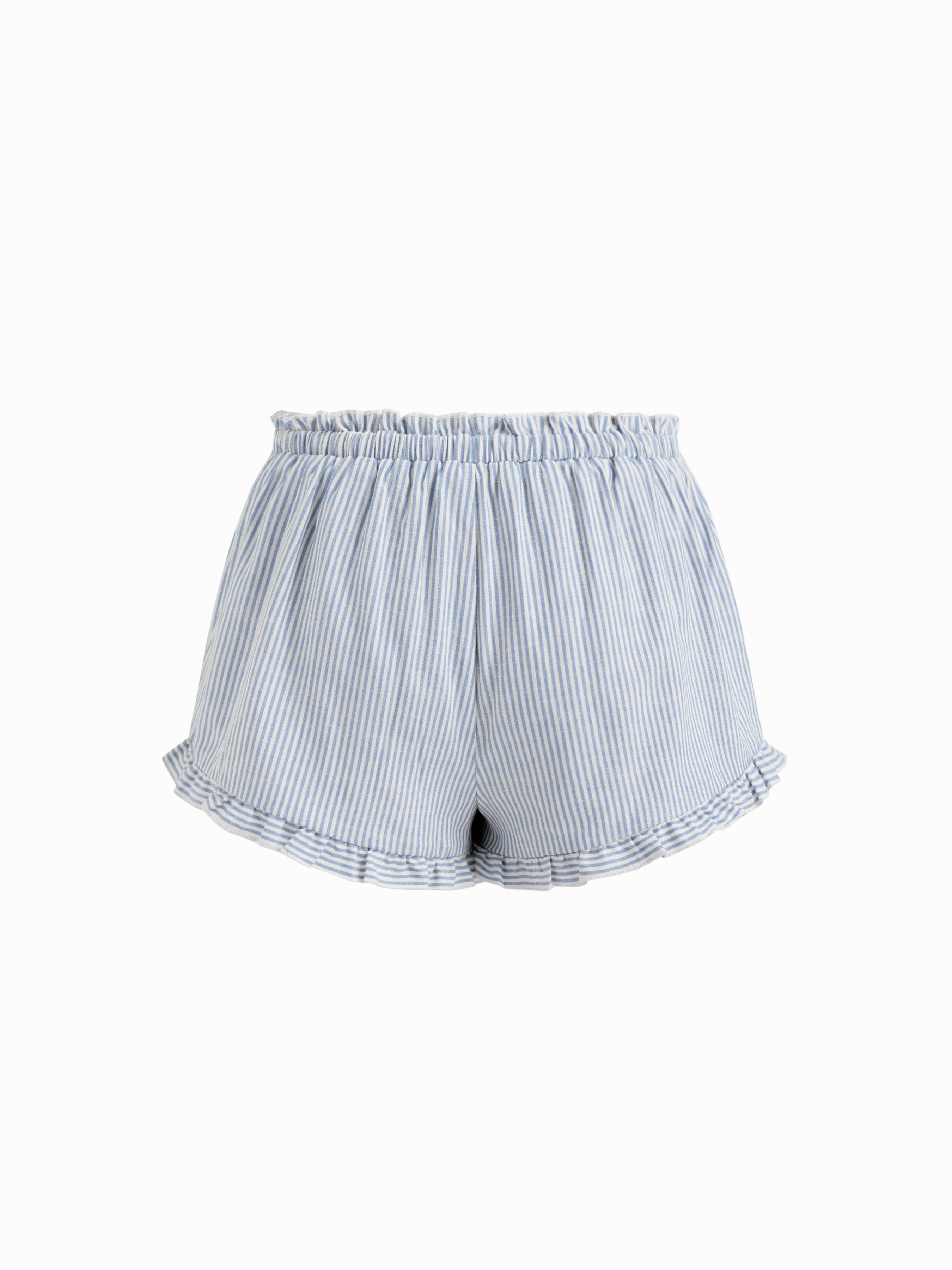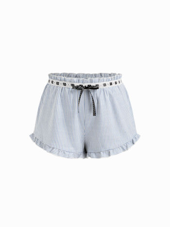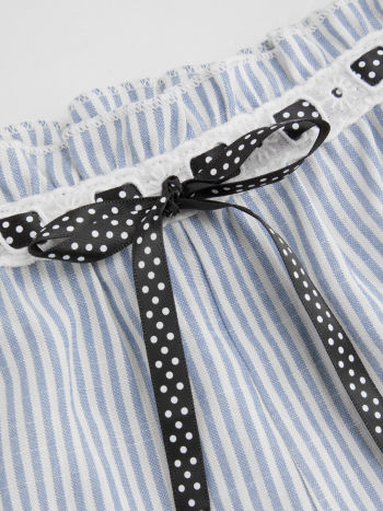 Pantaloncini da casa micro a gamba larga con bordi a lattuga annodati a righe a vita bassa