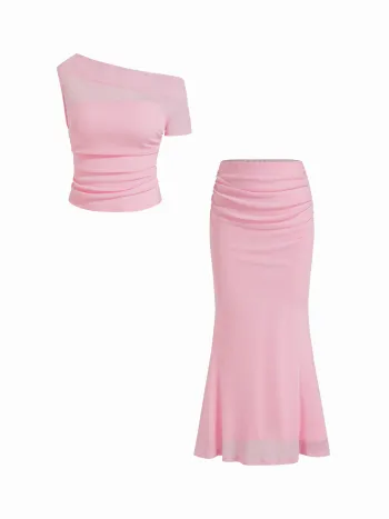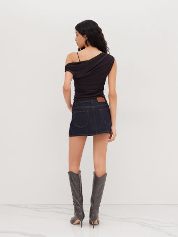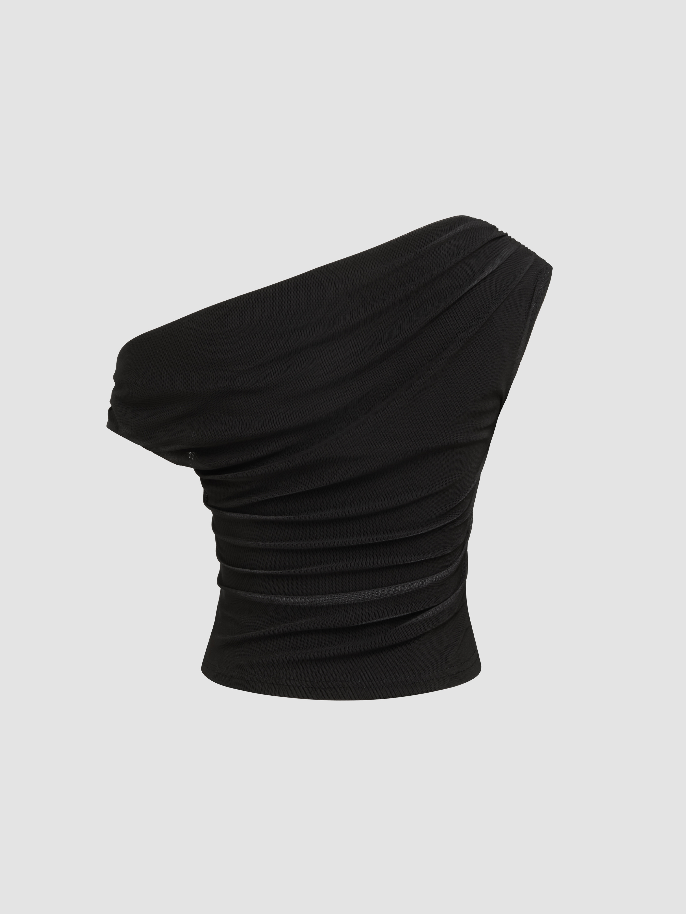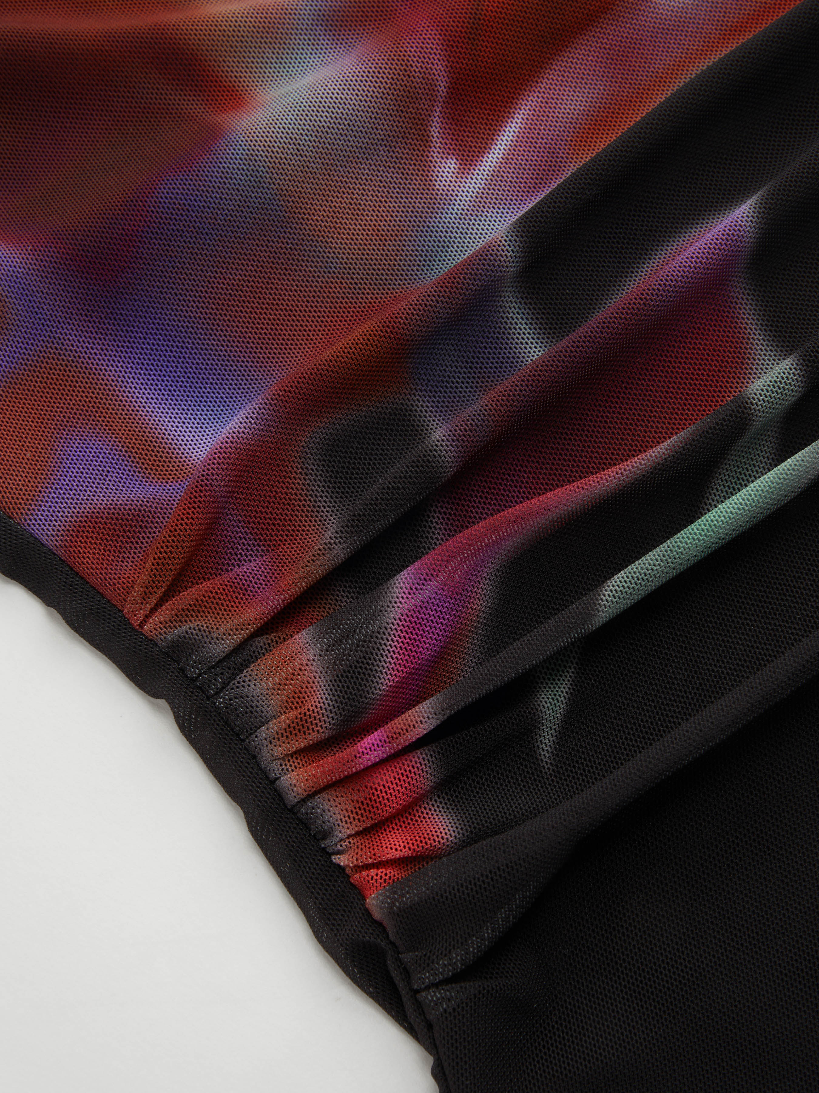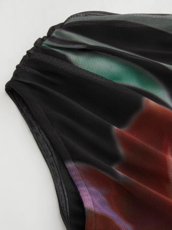 Top asimmetrico in mesh con collo a una spalla e dettaglio floreale