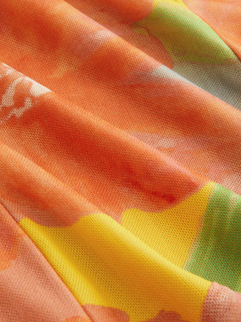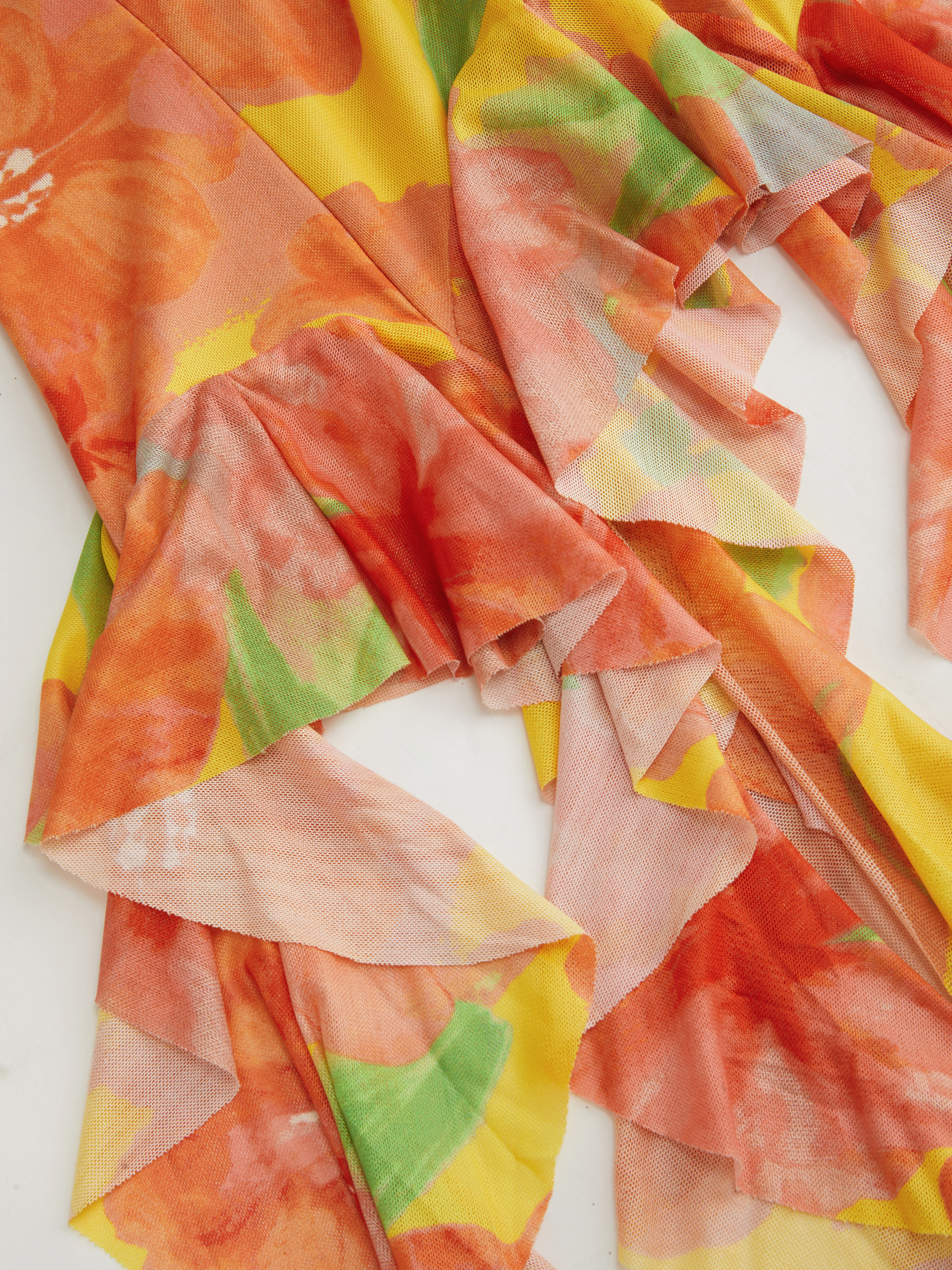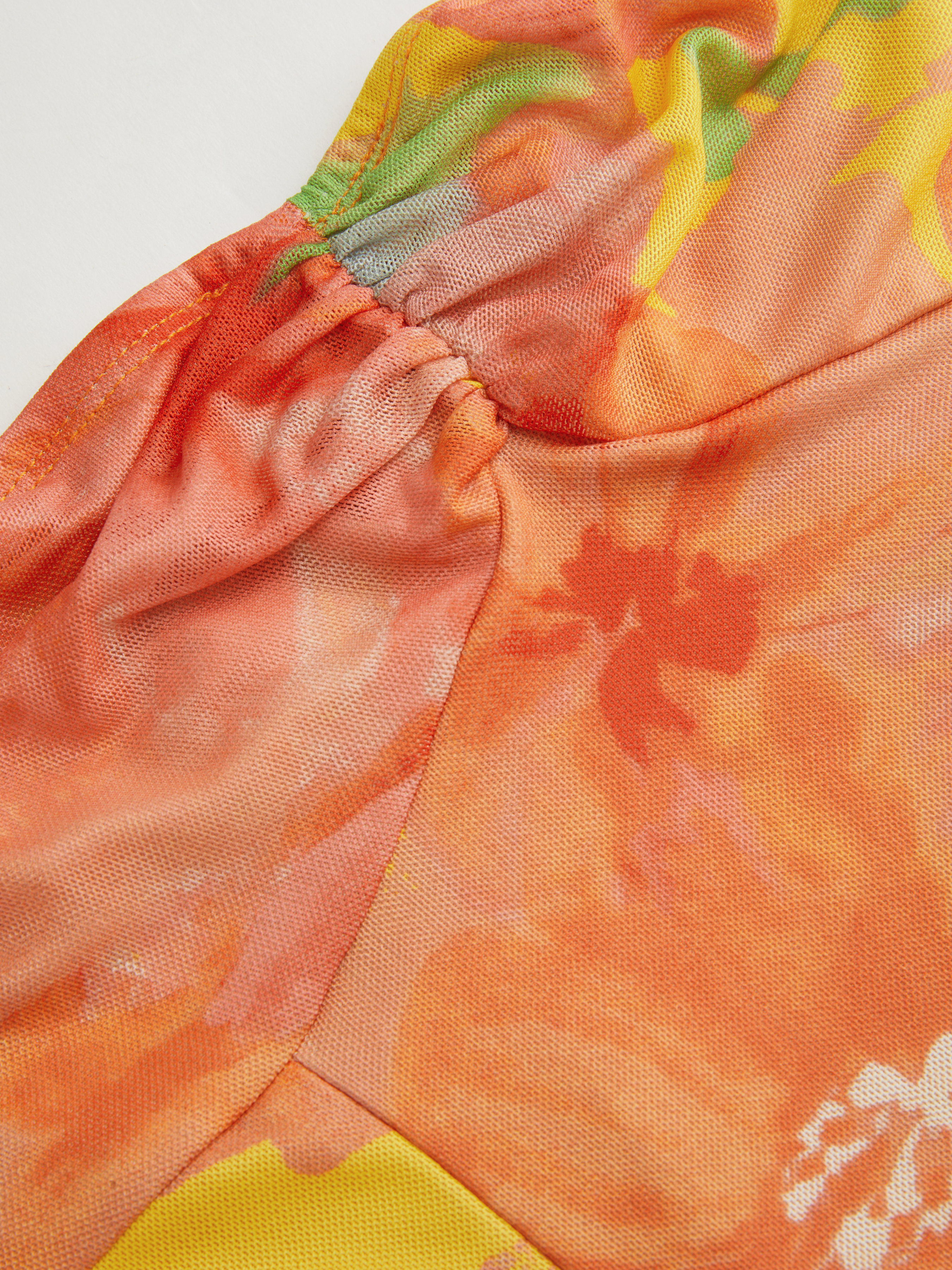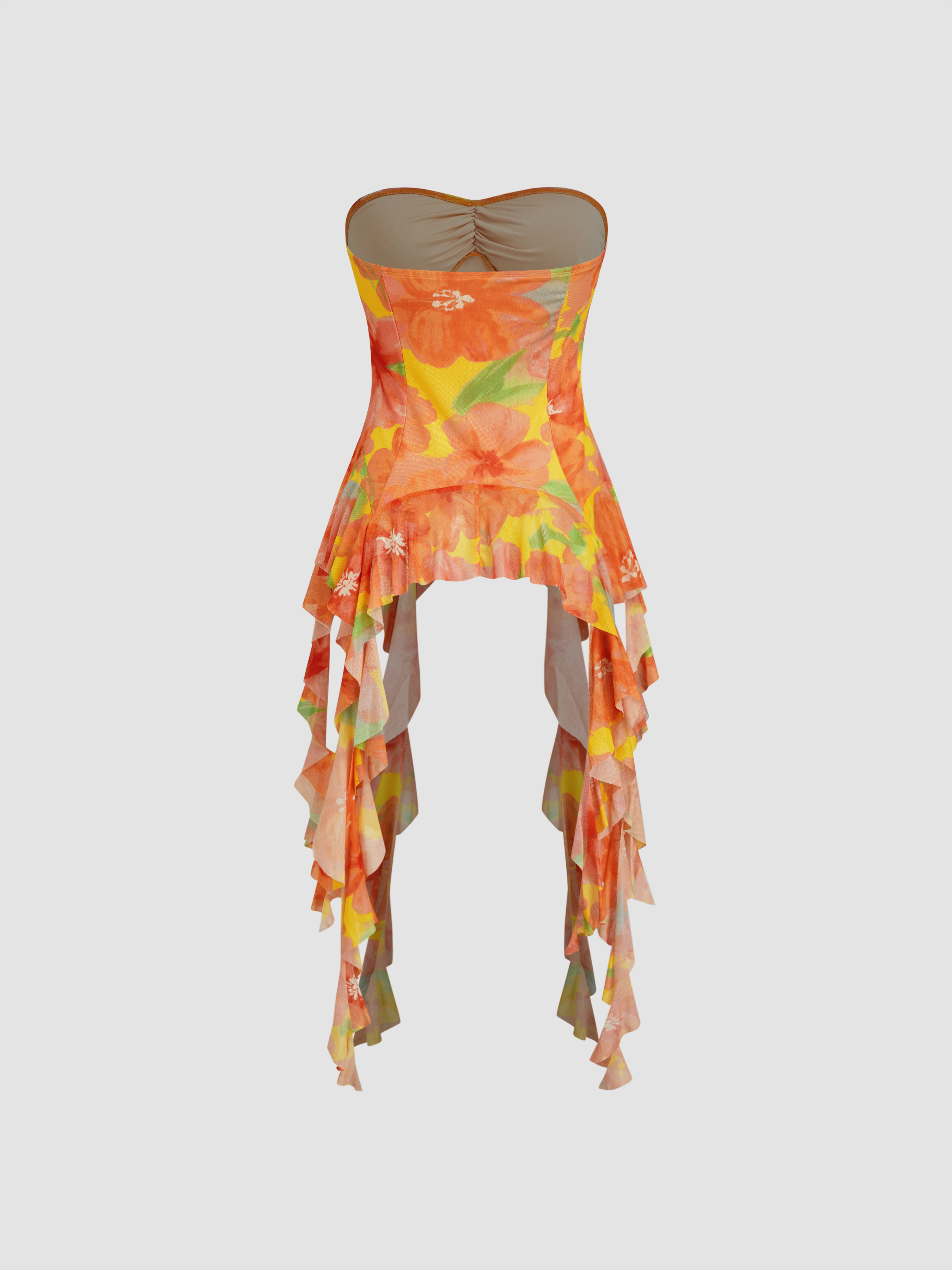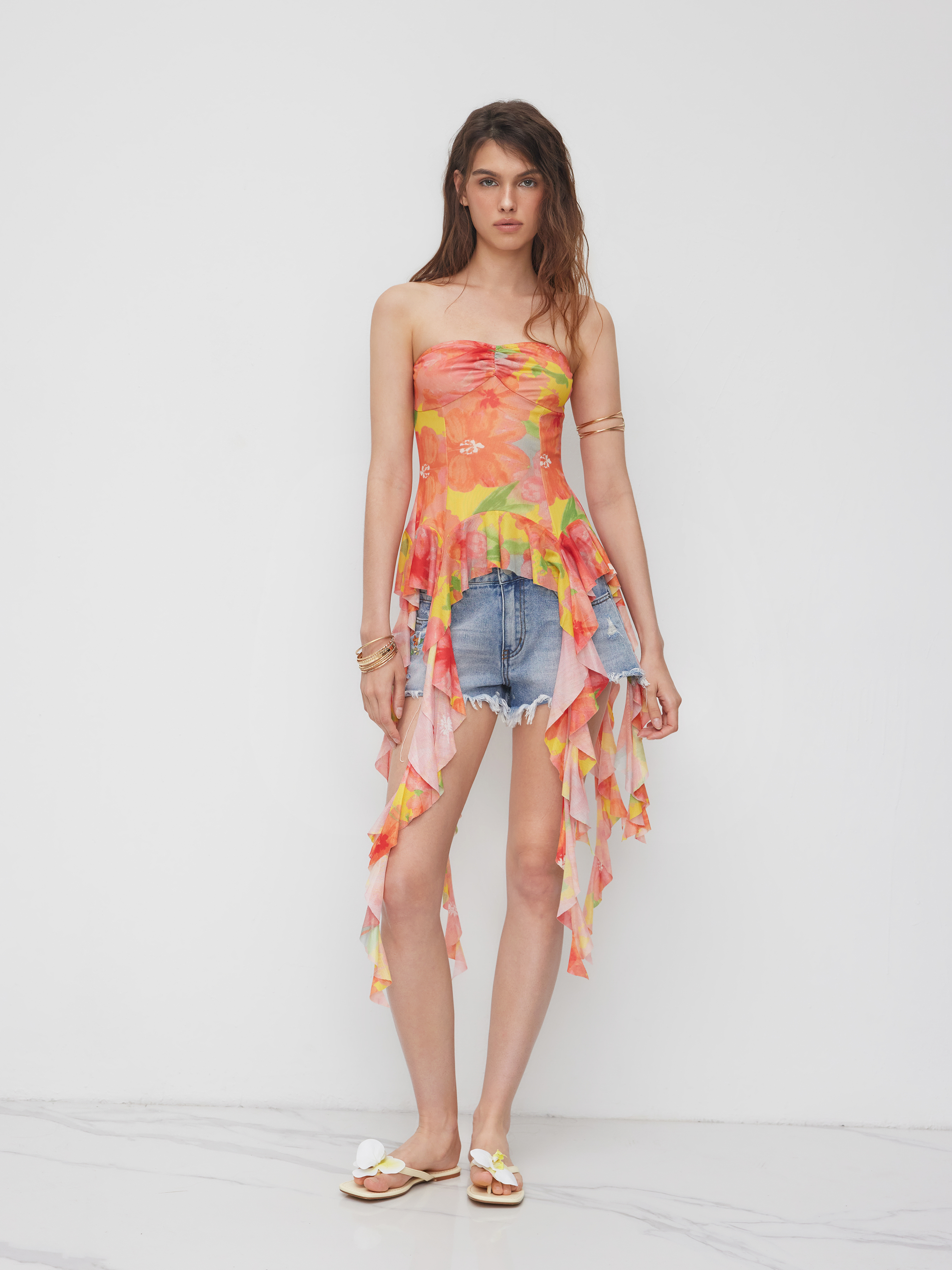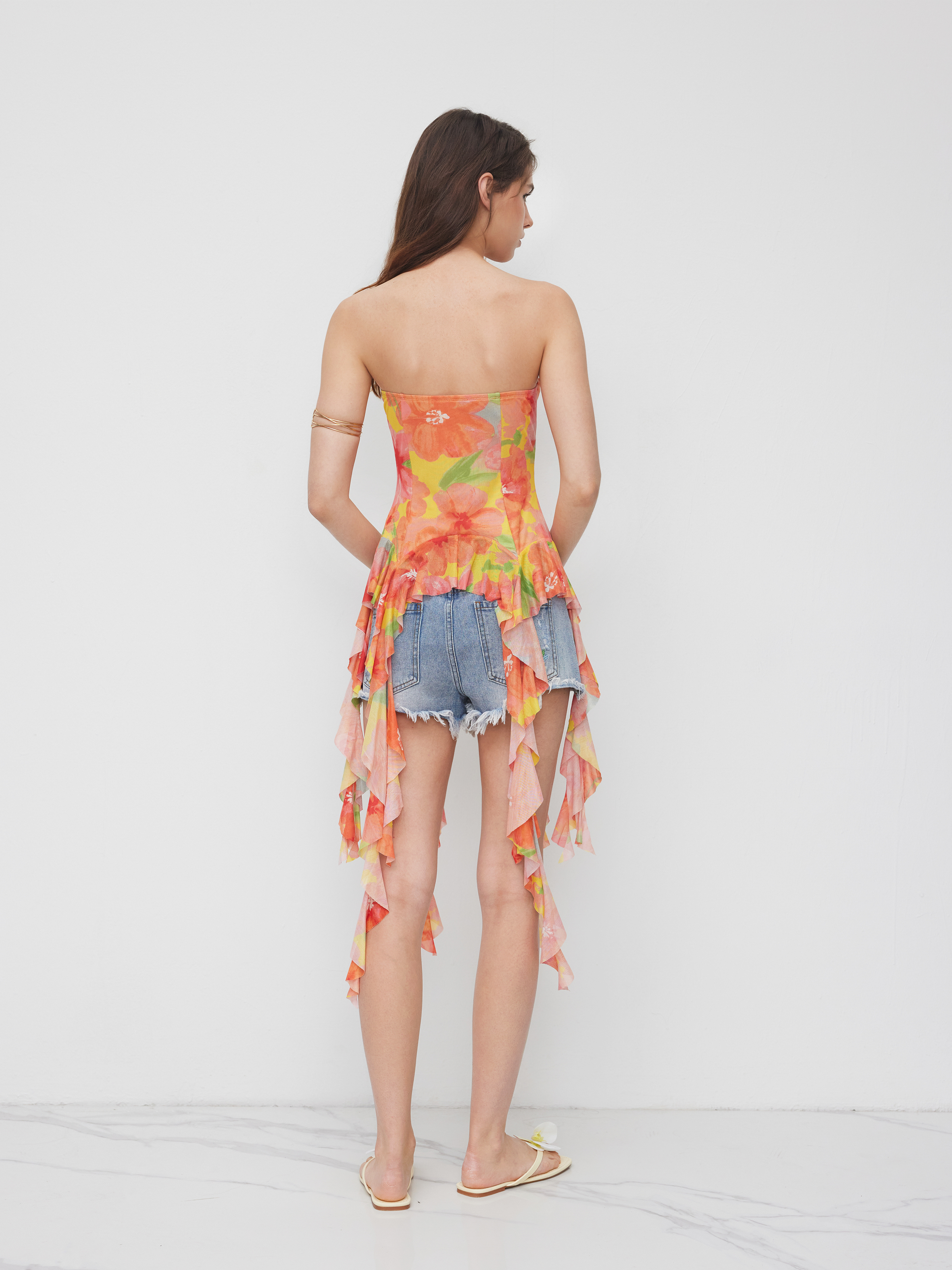Top a fascia a rete con volant e orlo arricciato con fiori