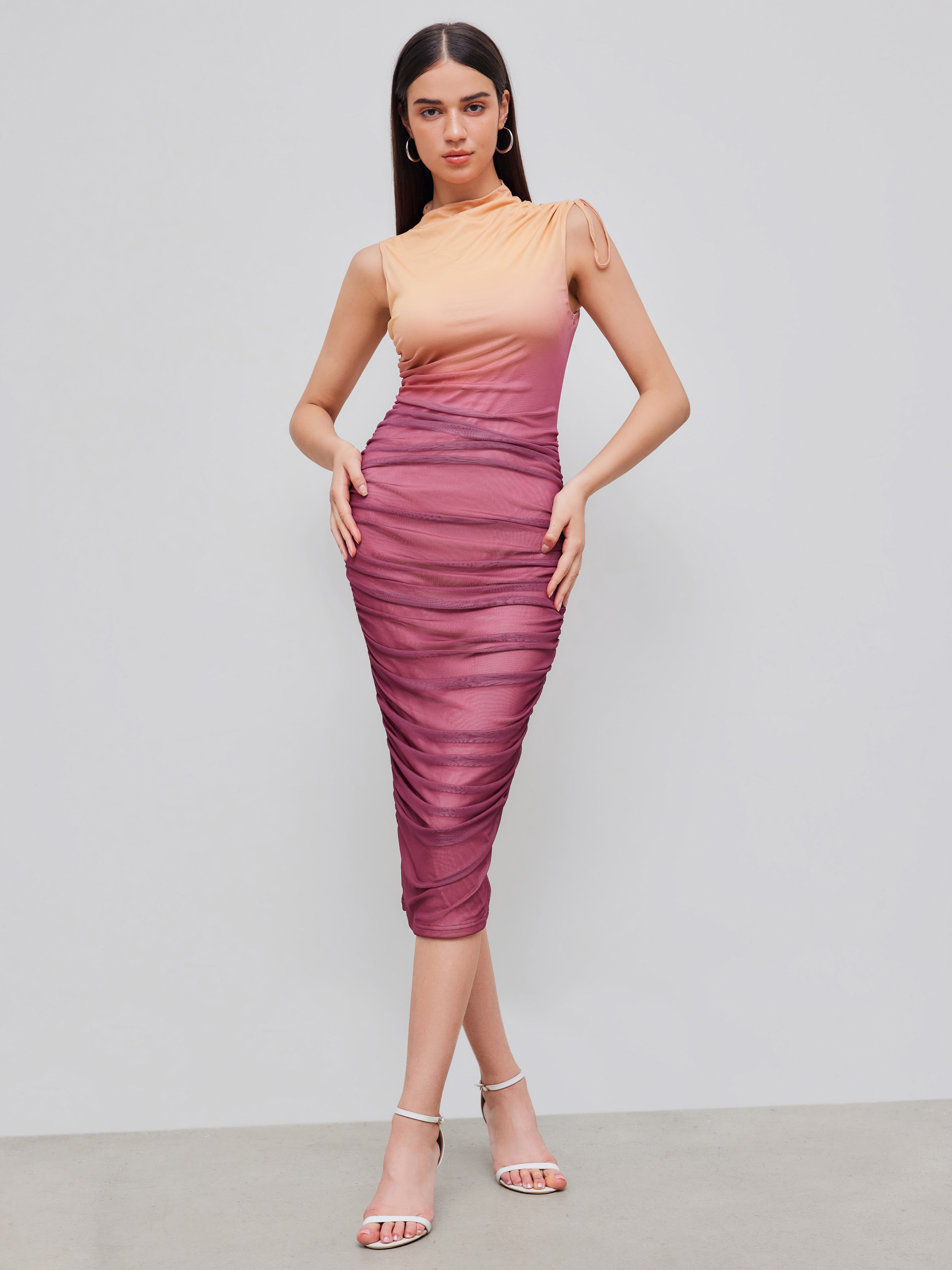 Maxi abito a rete con scollo rotondo e increspatura graduale