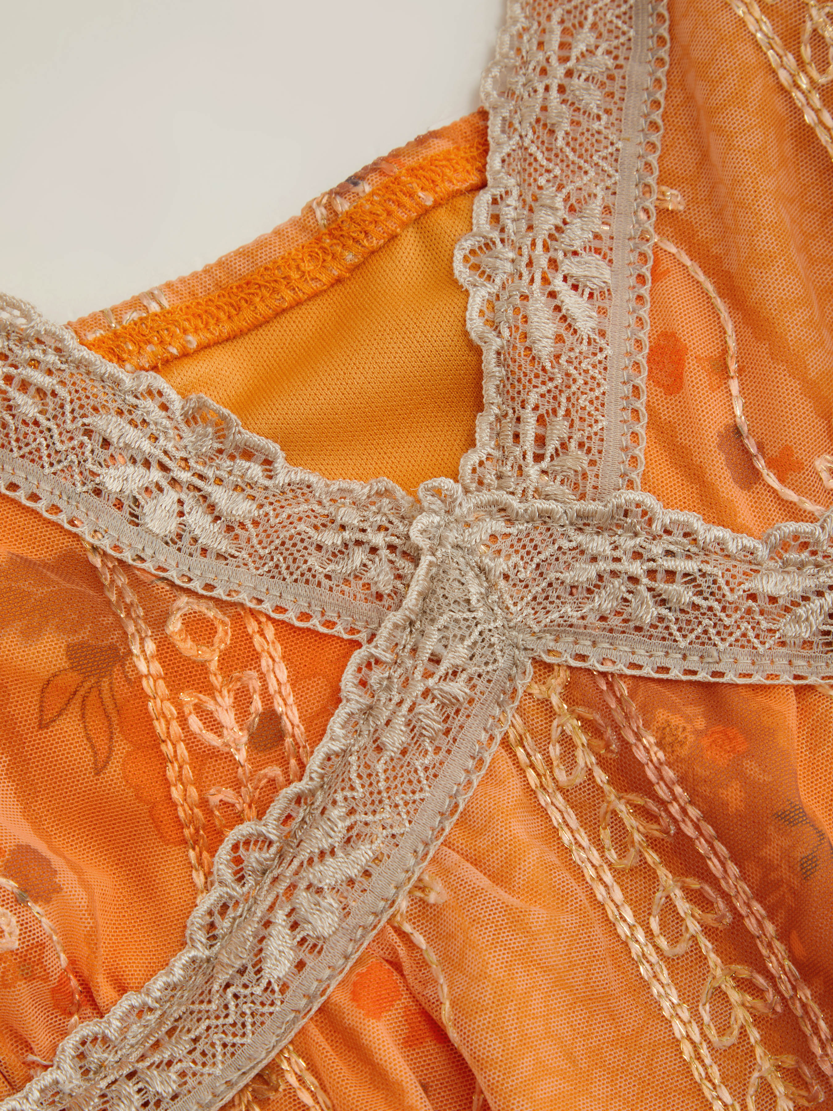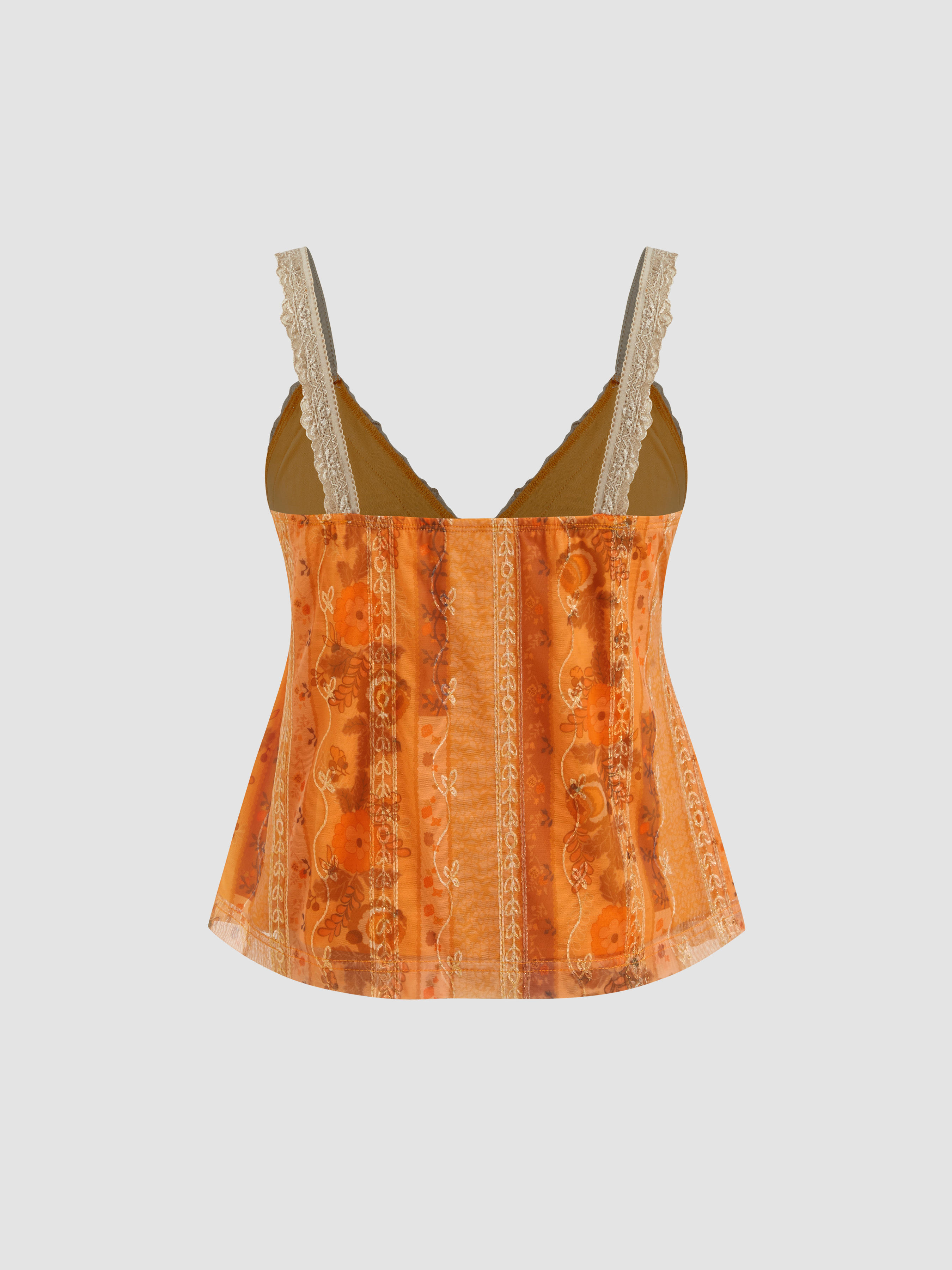 Top Cami in rete con bordo in pizzo floreale a cuore