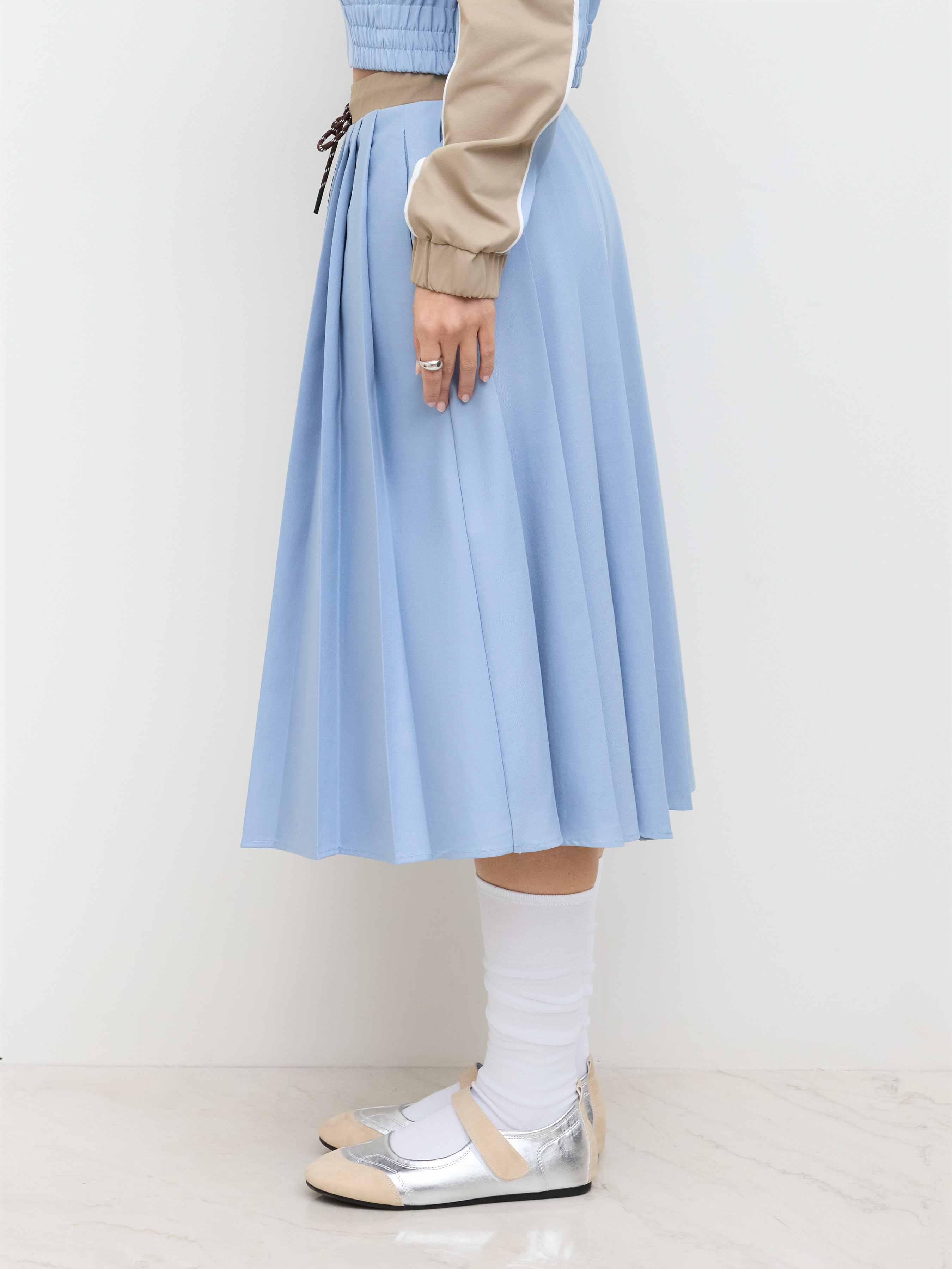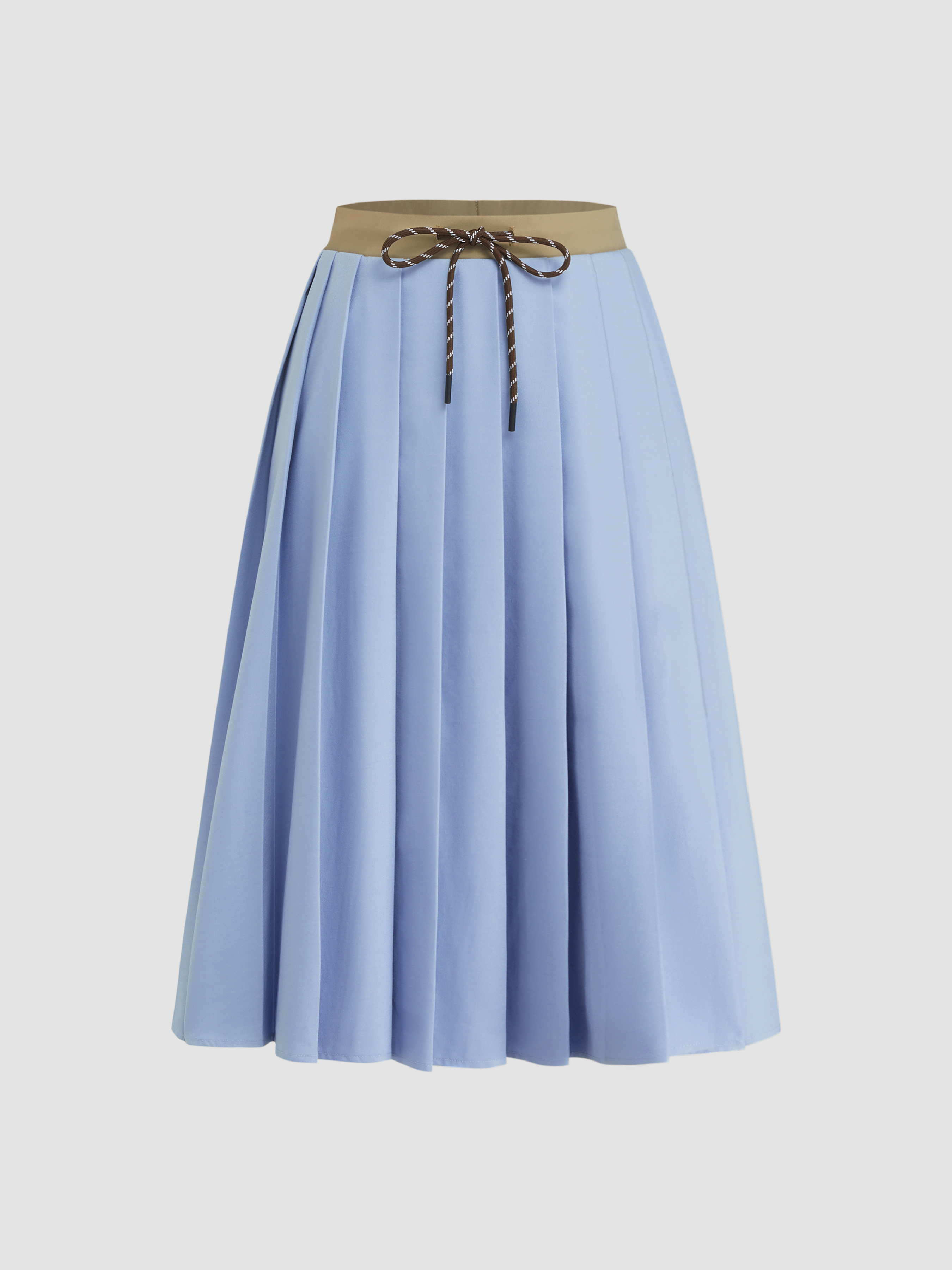 Gonna midi a pieghe con nodi a contrasto a vita media